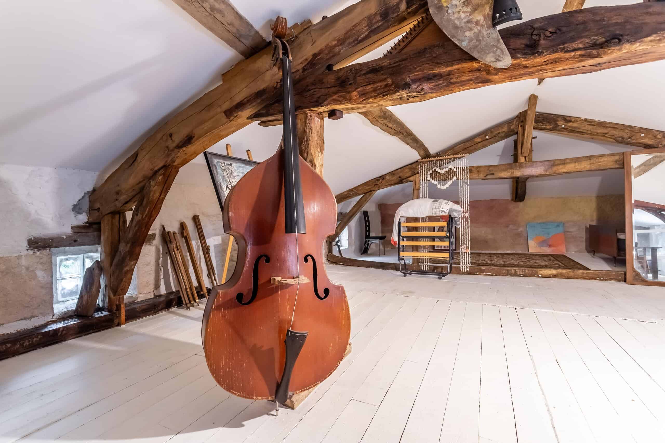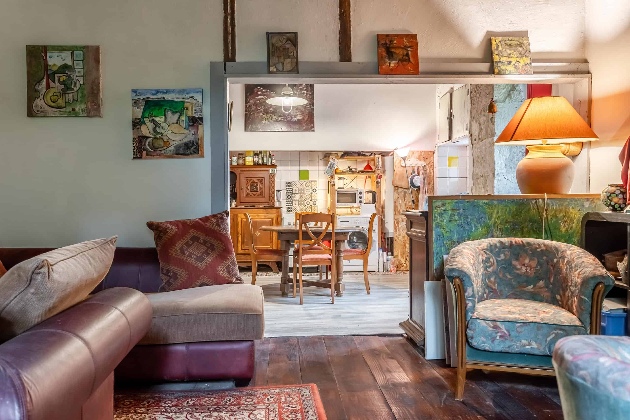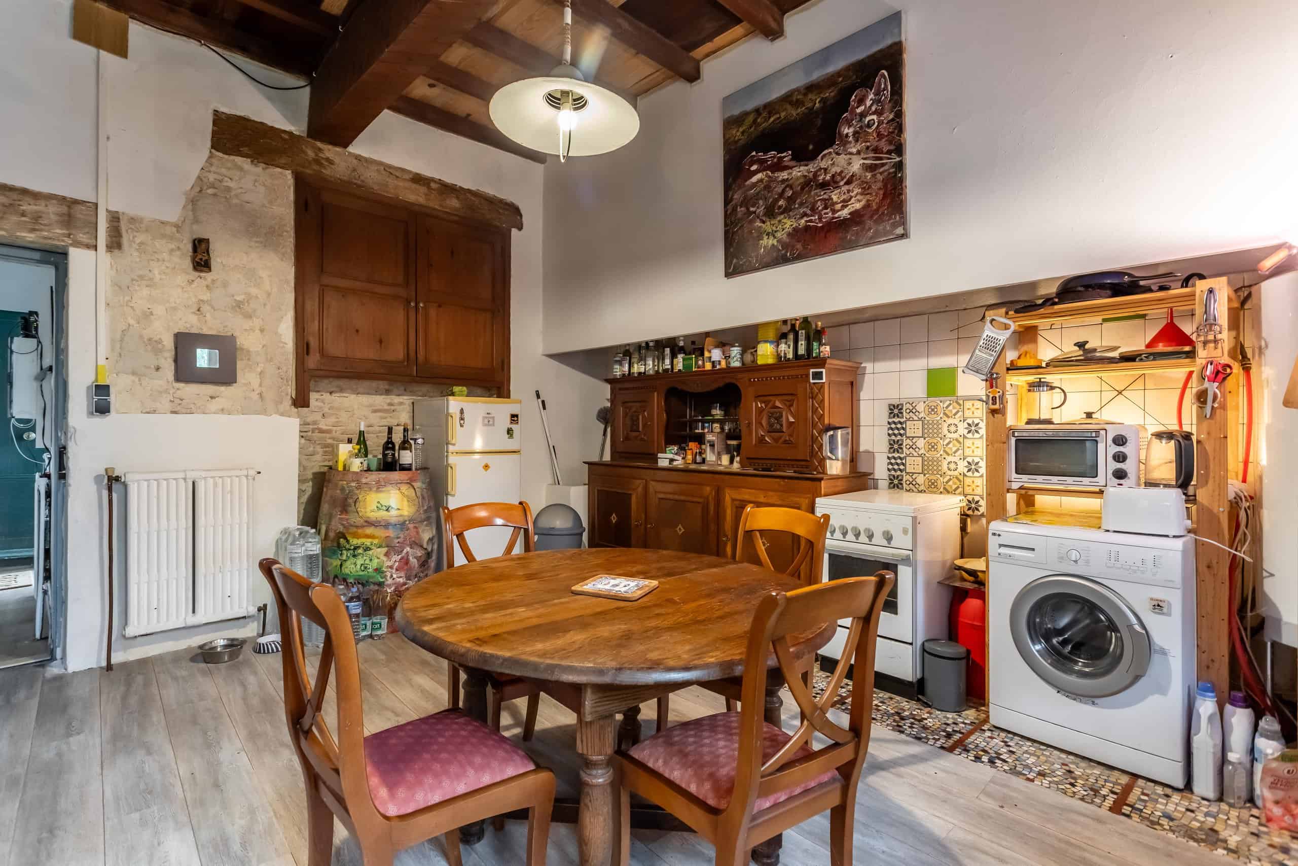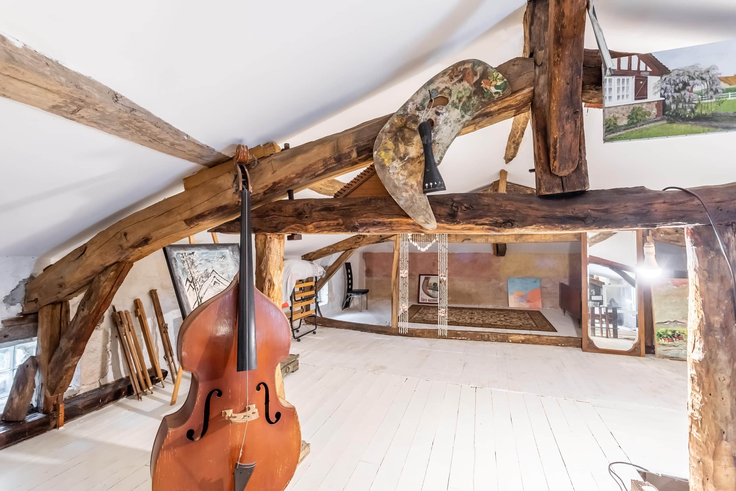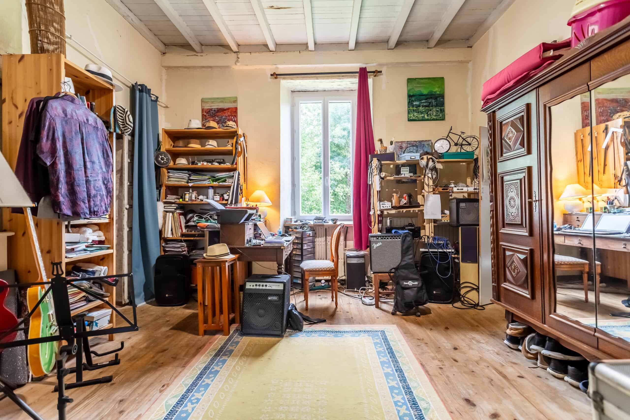 Les éléments d'époque ne manquent pas : plafonds à poutres apparentes, murs épais en pierre, et un agencement qui marie authenticité et confort. Le sous-sol offre de grands espaces modulables : atelier, rangement, cave à vin... ou les trois, selon vos priorités.