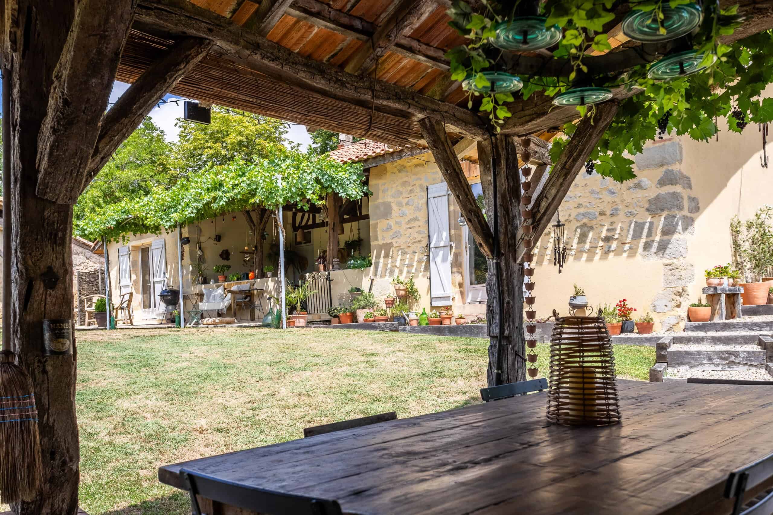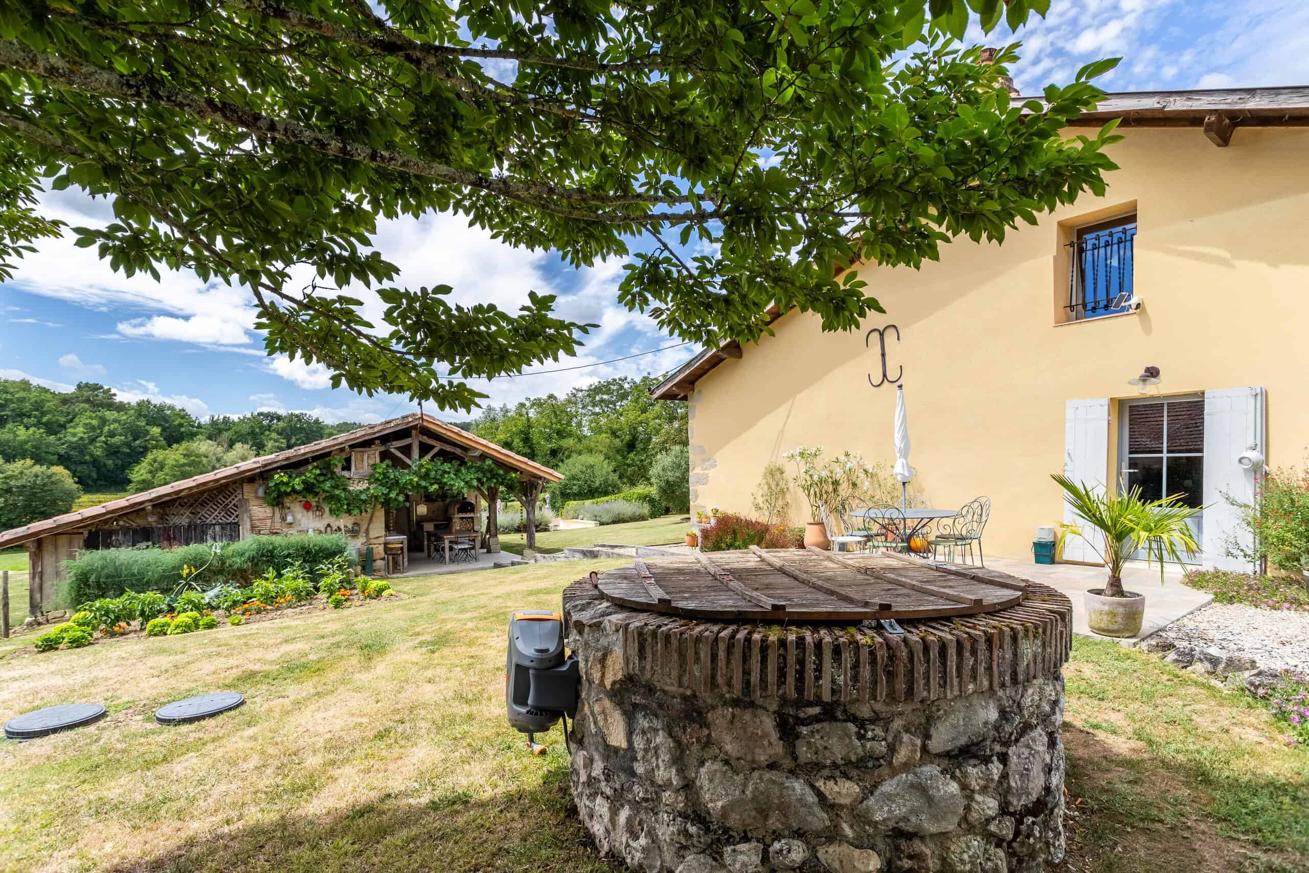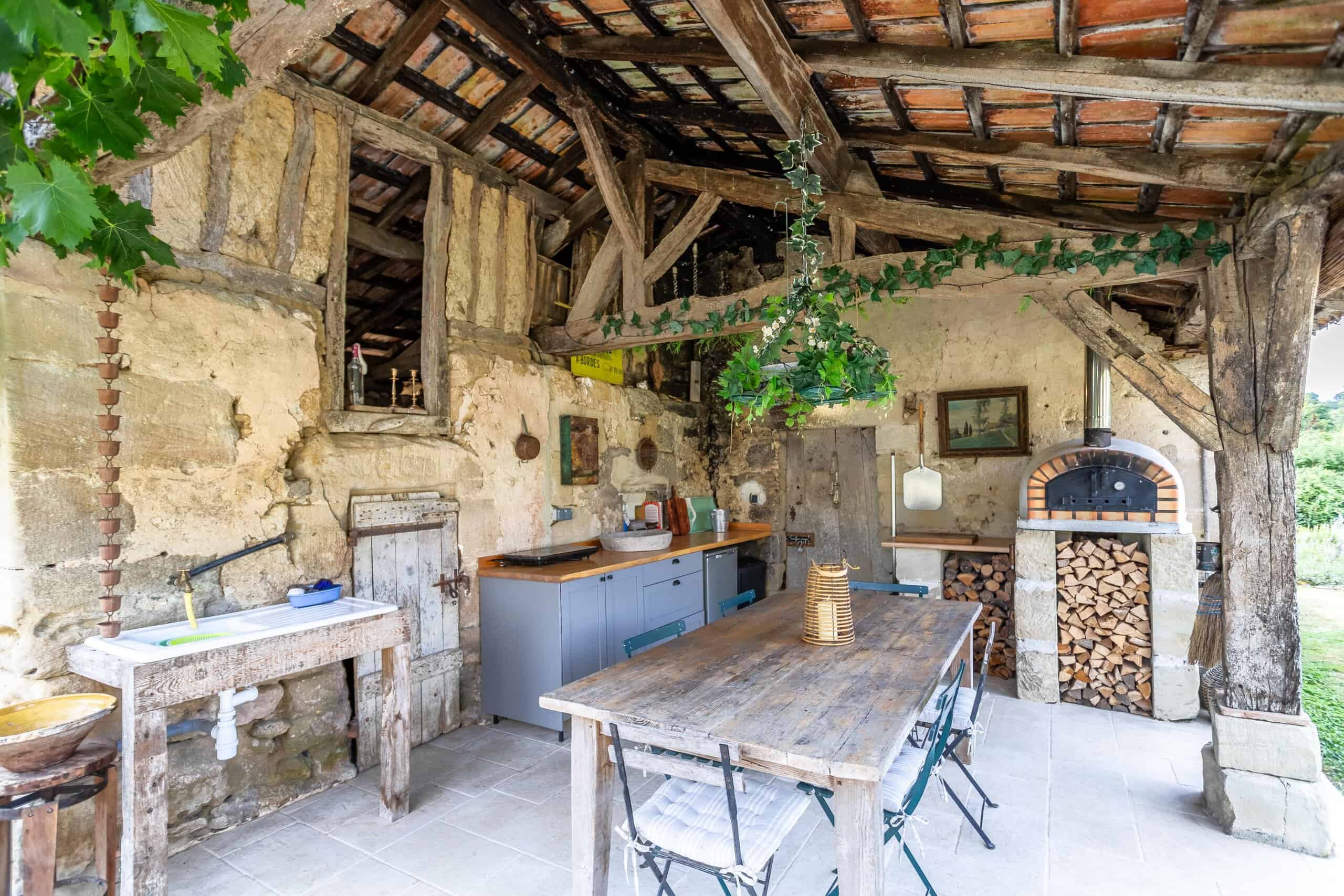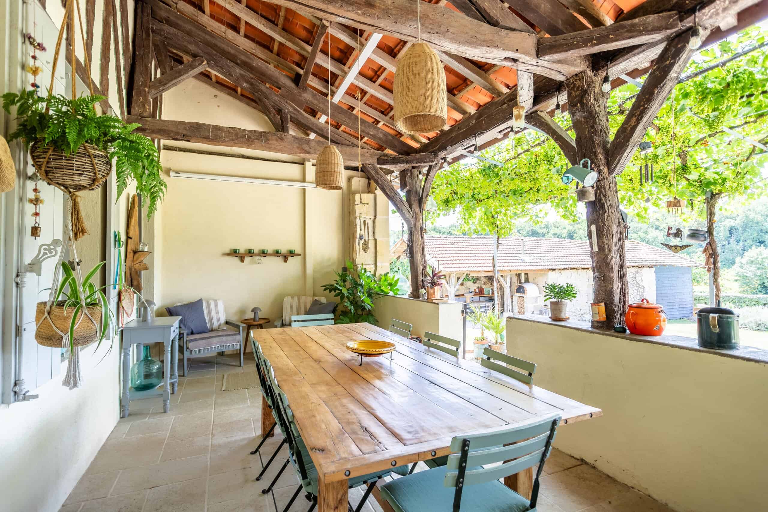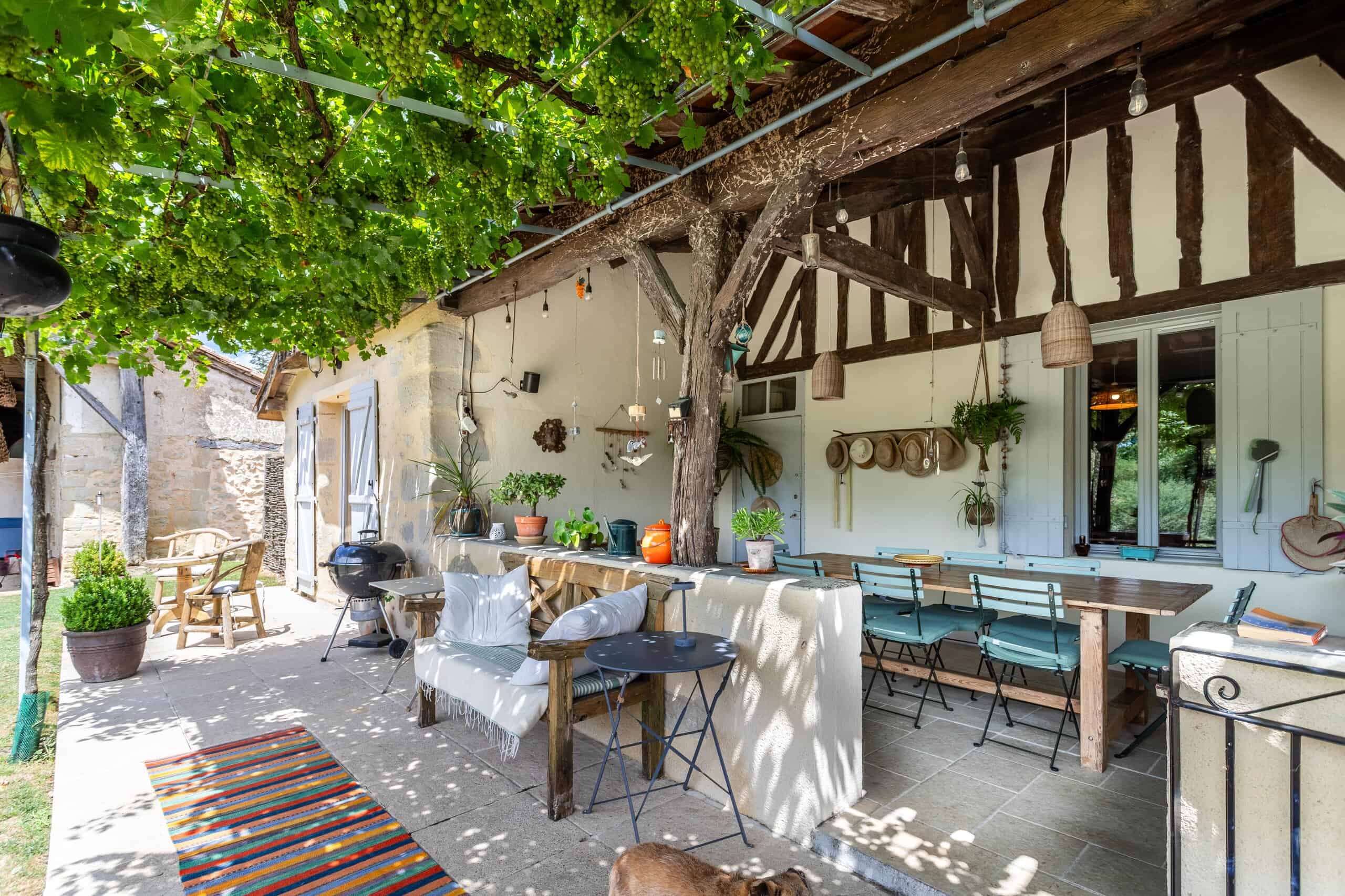 Le plaisir commence vraiment à l'extérieur, en commençant par une fabuleuse terrasse couverte, avec des poutres apparentes et un mur en colombage. Il est difficile d'imaginer un meilleur endroit pour les repas en plein air ou pour se détendre, avec une pergola couverte de vignes pour vous protéger du soleil et des vues fabuleuses sur la campagne environnante. Une piscine d'eau salée de 10 x 5 m, avec des murs de soutènement en pierre, une terrasse ensoleillée, le tout entouré d'un magnifique jardin paysager, complètent l'ensemble.