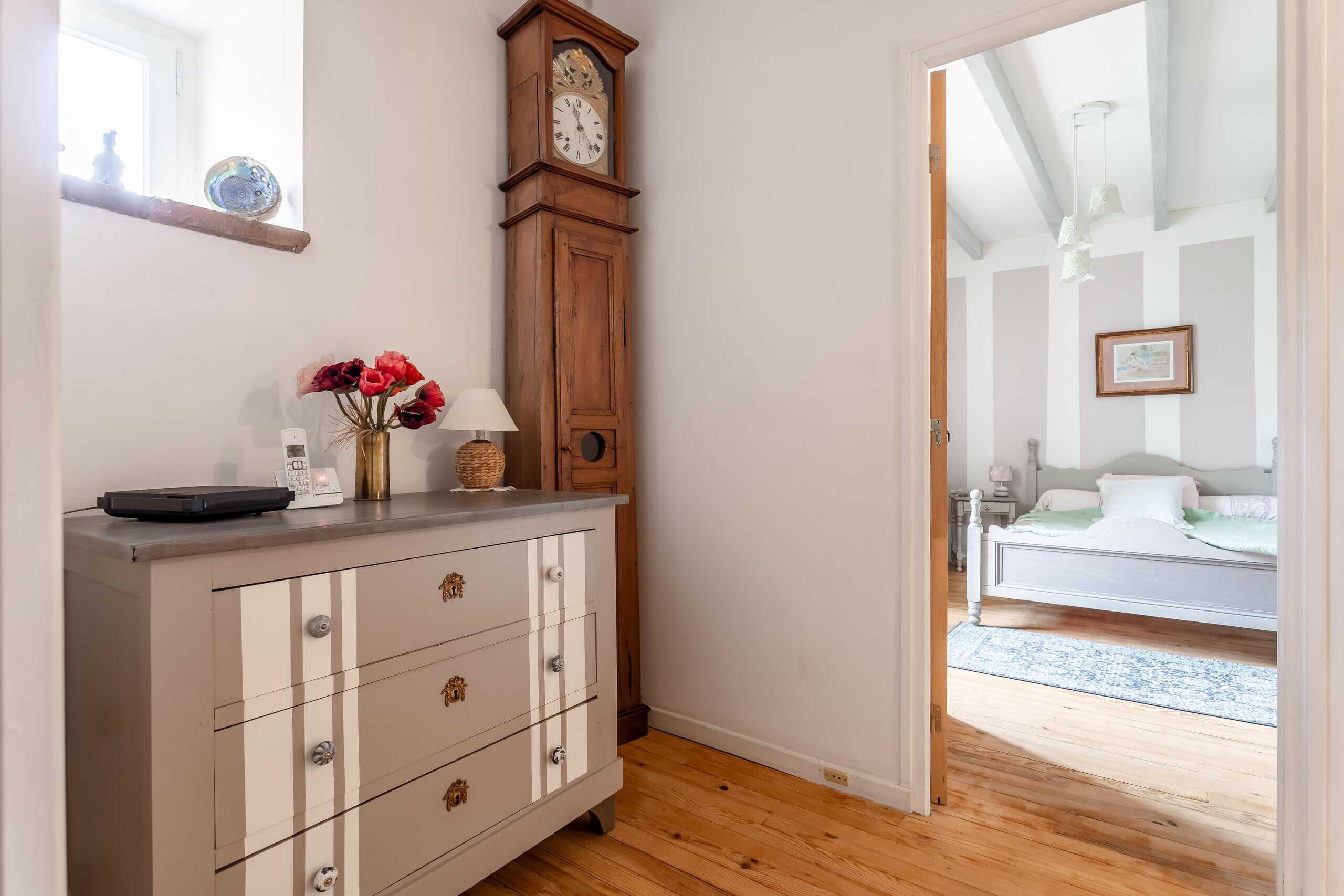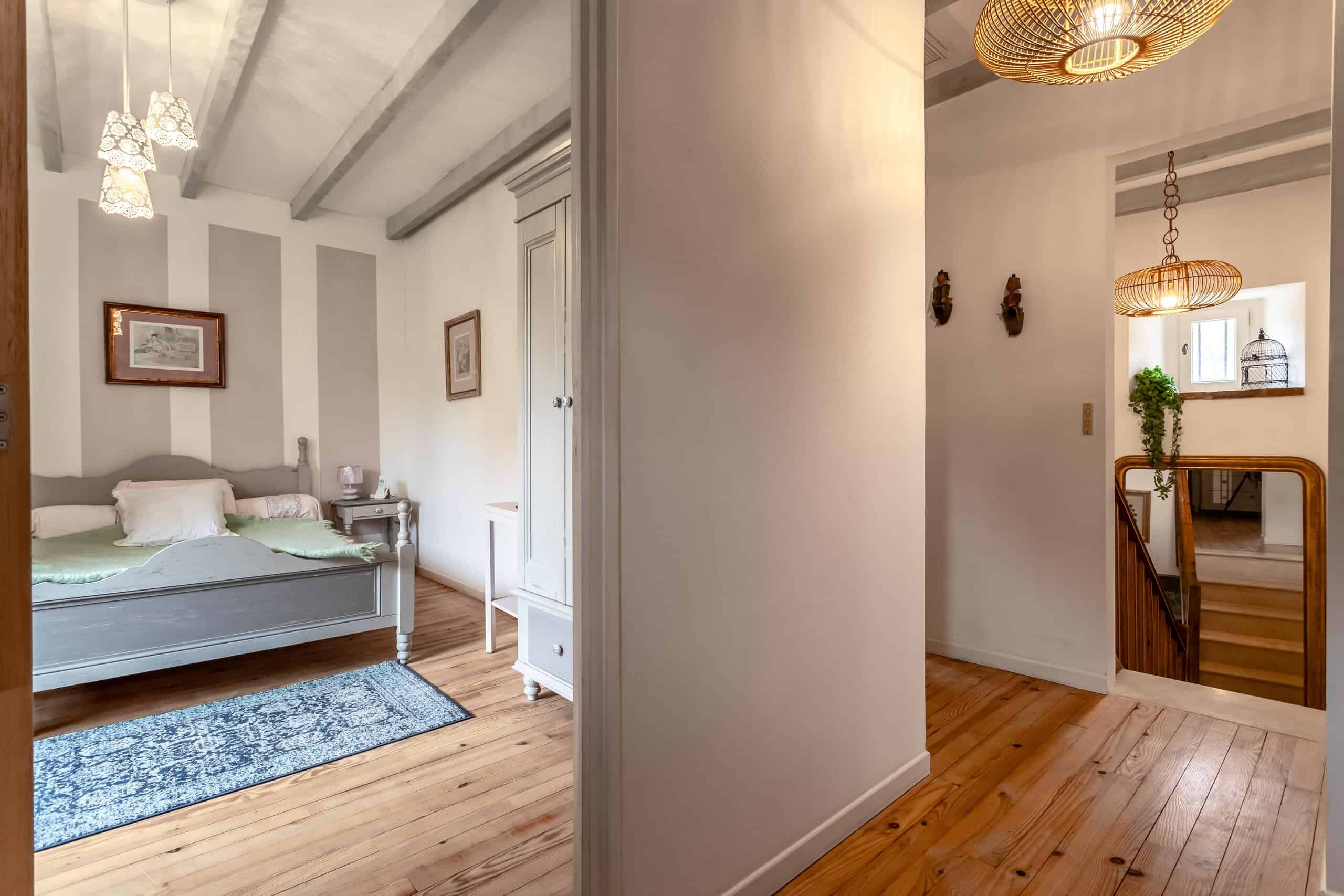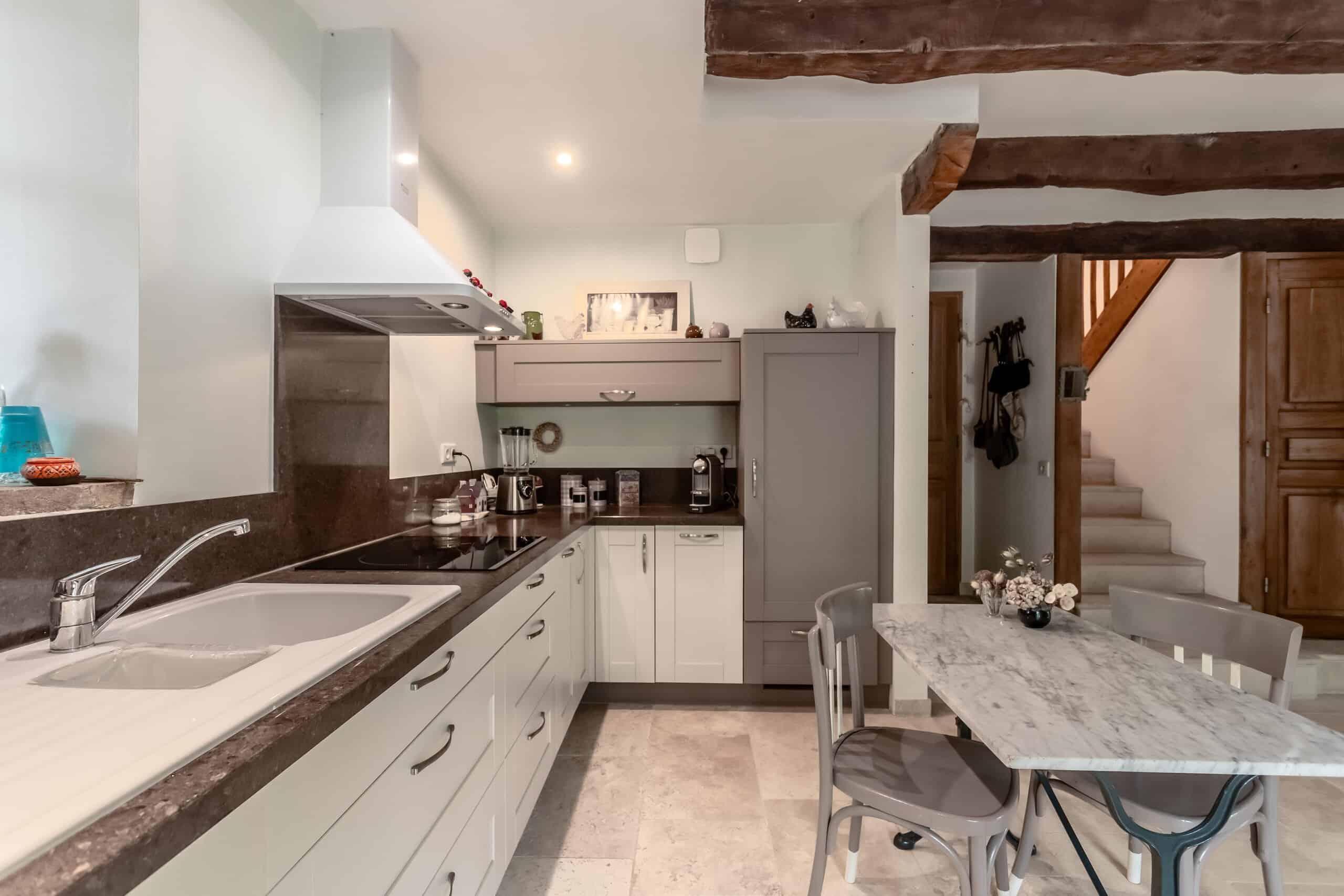 Datant du milieu du 19ème siècle et conservant une abondance de caractéristiques d'époque, avec un grand espace de vie ouvert avec une cuisine équipée moderne, un sol en travertin partout avec la plus spectaculaire cheminée en pierre, des plafonds à poutres apparentes et le confort moderne de la pompe à chaleur chauffage et froid dans toute la maison et le double vitrage. Le tout est décoré dans des couleurs sourdes et élégantes. Alors que le rez-de-chaussée est un espace social par nature, le premier étage est plus privé avec trois chambres magnifiquement présentées, la principale avec de fabuleuses briques apparentes et une porte donnant sur le jardin, avec une spacieuse salle de bains moderne et élégante.