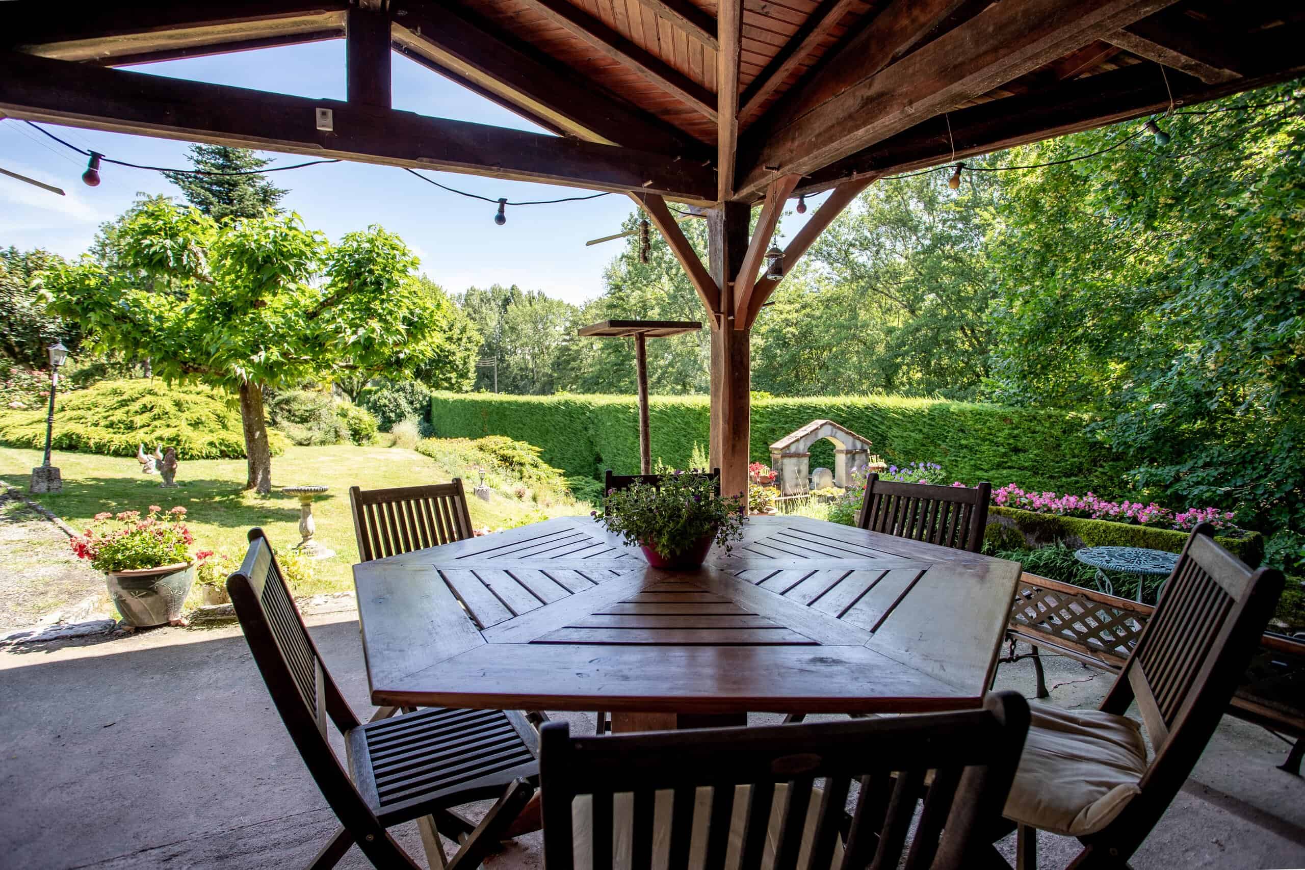 La ferme elle-même dégage du caractère dès votre arrivée, avec une large terrasse couverte, ombragée par les rayons du soleil et encadrée par le jardin verdoyant. À proximité, le plus bel étang de la ville reflète le ciel changeant et invite à des moments de contemplation paisible.