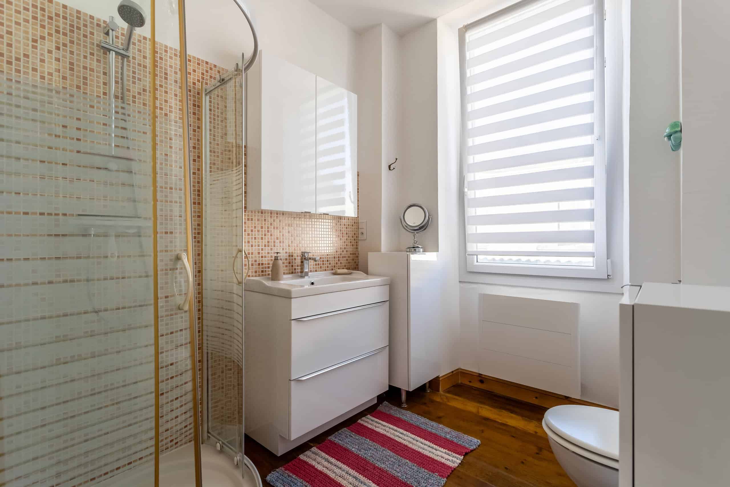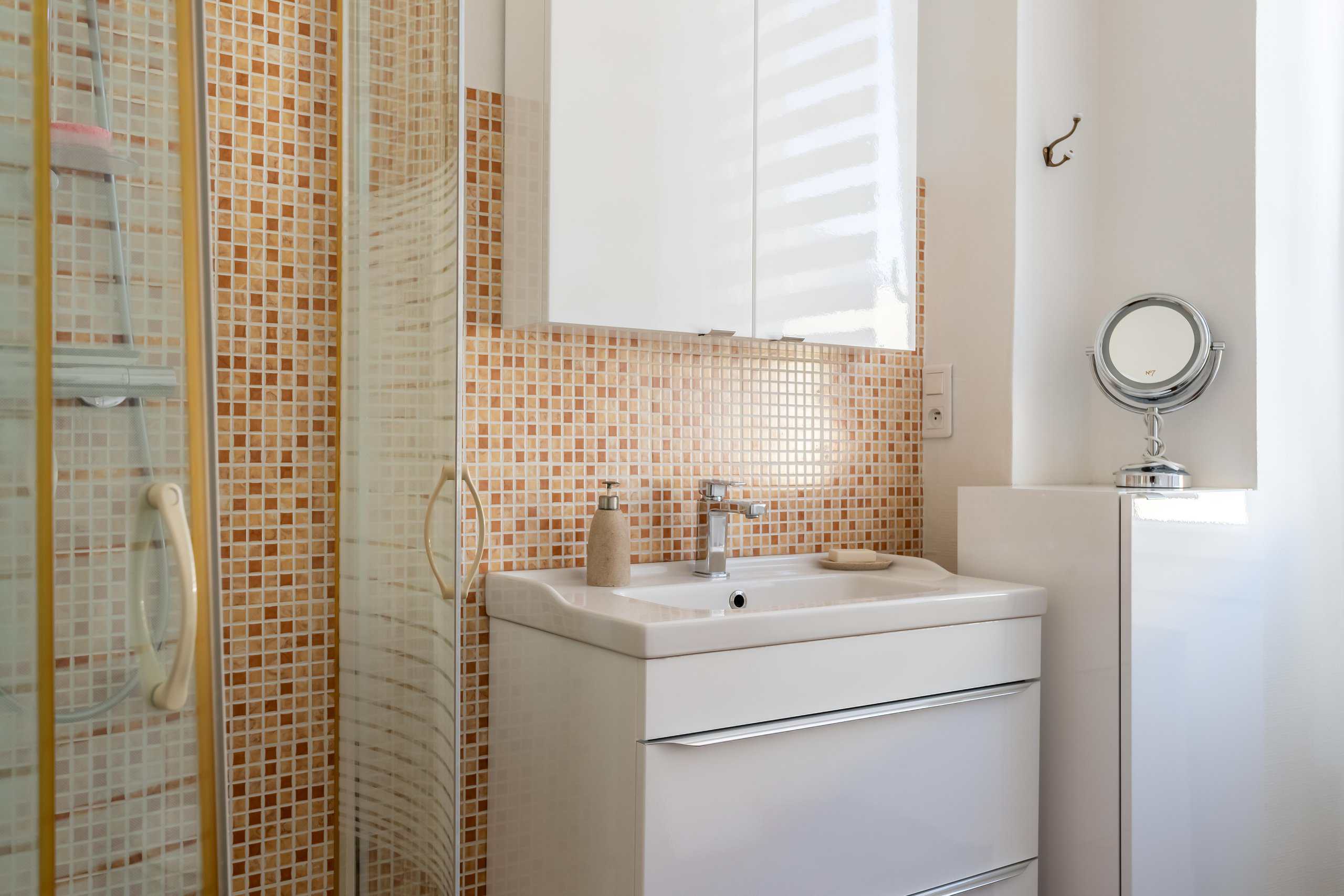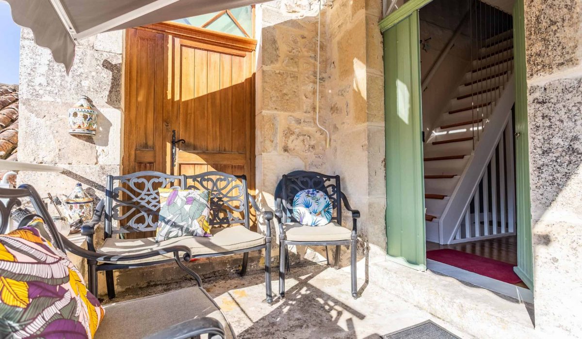 Au premier étage, un salon confortable est doté d'une élégante cheminée en marbre et d'un parquet, avec une porte menant à une petite terrasse en pierre, idéale pour le café du matin ou un verre le soir, et offrant une vue magnifique sur les toits du village et les collines au-delà. Un auvent extensible apporte une ombre bienvenue en cas de besoin. Une salle de bains moderne et élégante complète ce niveau.