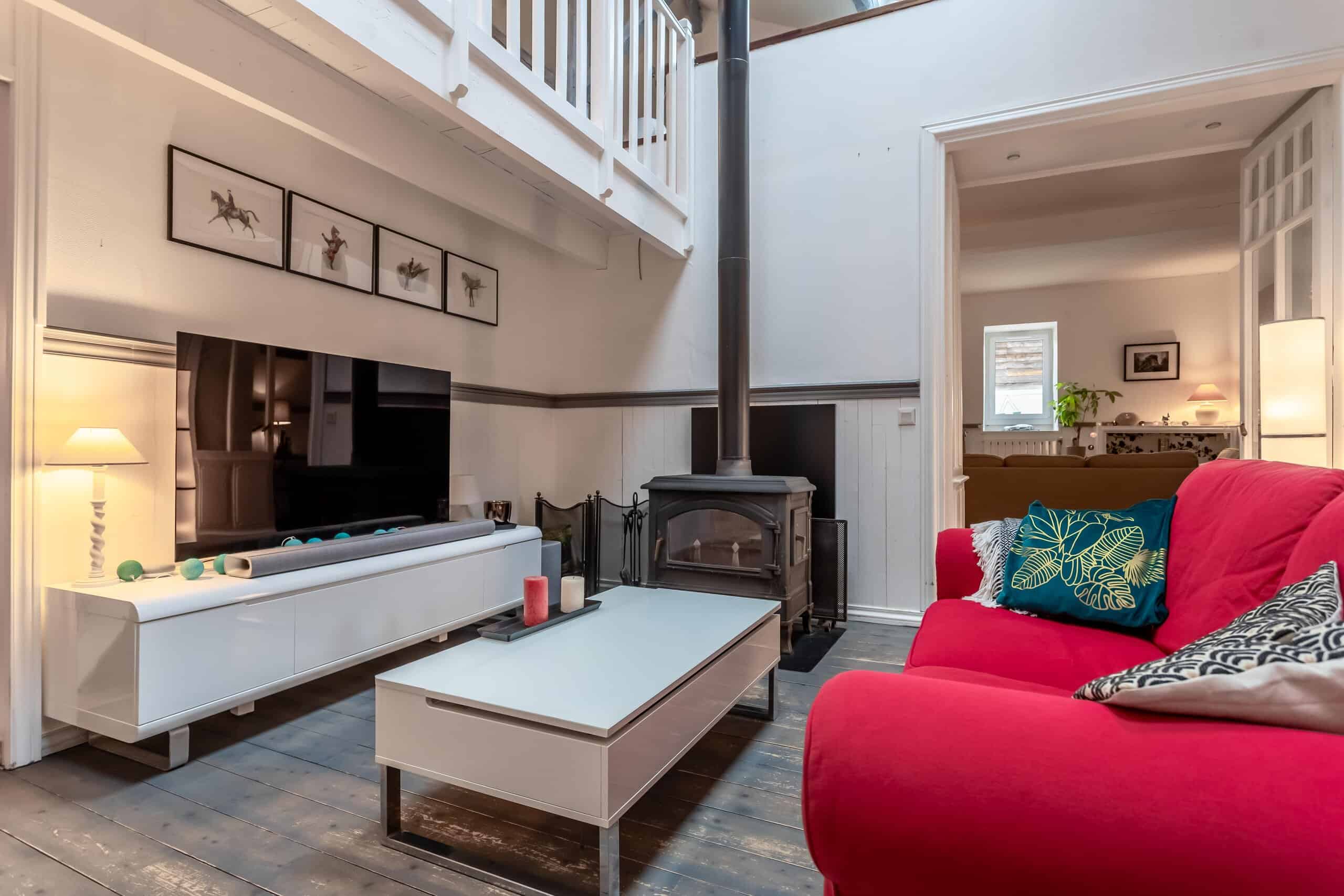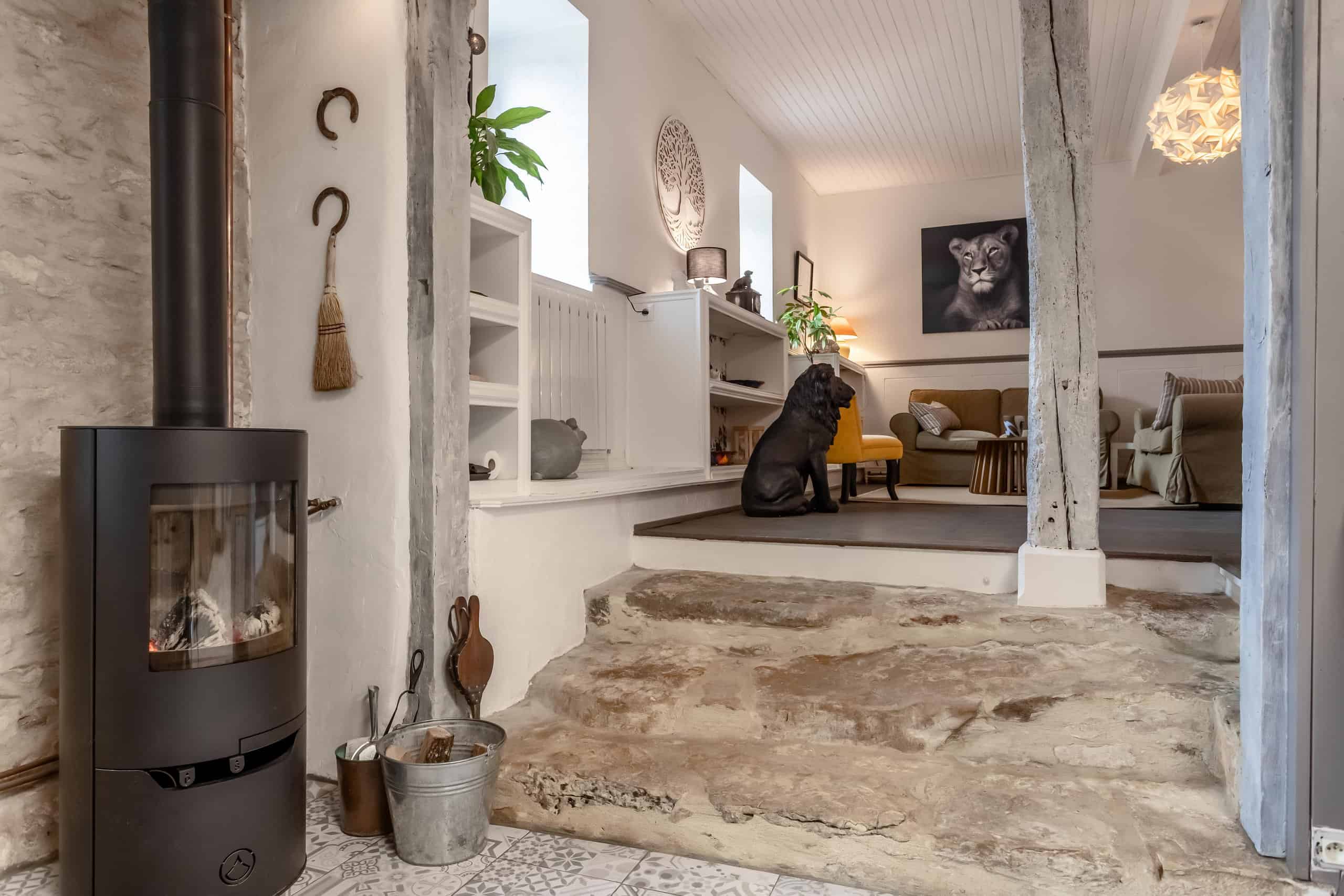 La ferme principale offre trois chambres douillettes plus une mezzanine, toutes présentées dans un état impeccable, prêt à emménager et à déballer. Les éléments d'époque abondent - pierres apparentes, plafonds à pleine hauteur, belles poutres - et sont judicieusement associés au confort moderne : chauffage par pompe à chaleur, triple vitrage, poêle à bois, poêle à granulés, panneaux solaires et salles de bains contemporaines élégantes. Le salon est une véritable attraction avec son plafond en hauteur et sa mezzanine surplombant l'espace, tandis que la cuisine élégante allie magnifiquement l'ancien et le nouveau, avec des plafonds aux poutres apparentes, des sols carrelés, des pierres apparentes, un poêle à bois et une cuisinière à gaz qui n'attend qu'un cuisinier sûr de lui (ou une très bonne excuse).