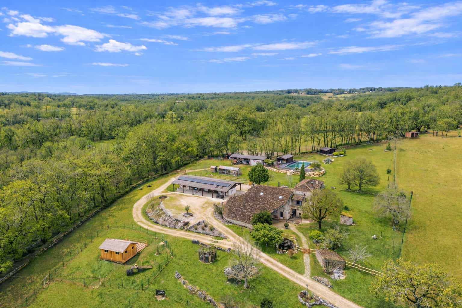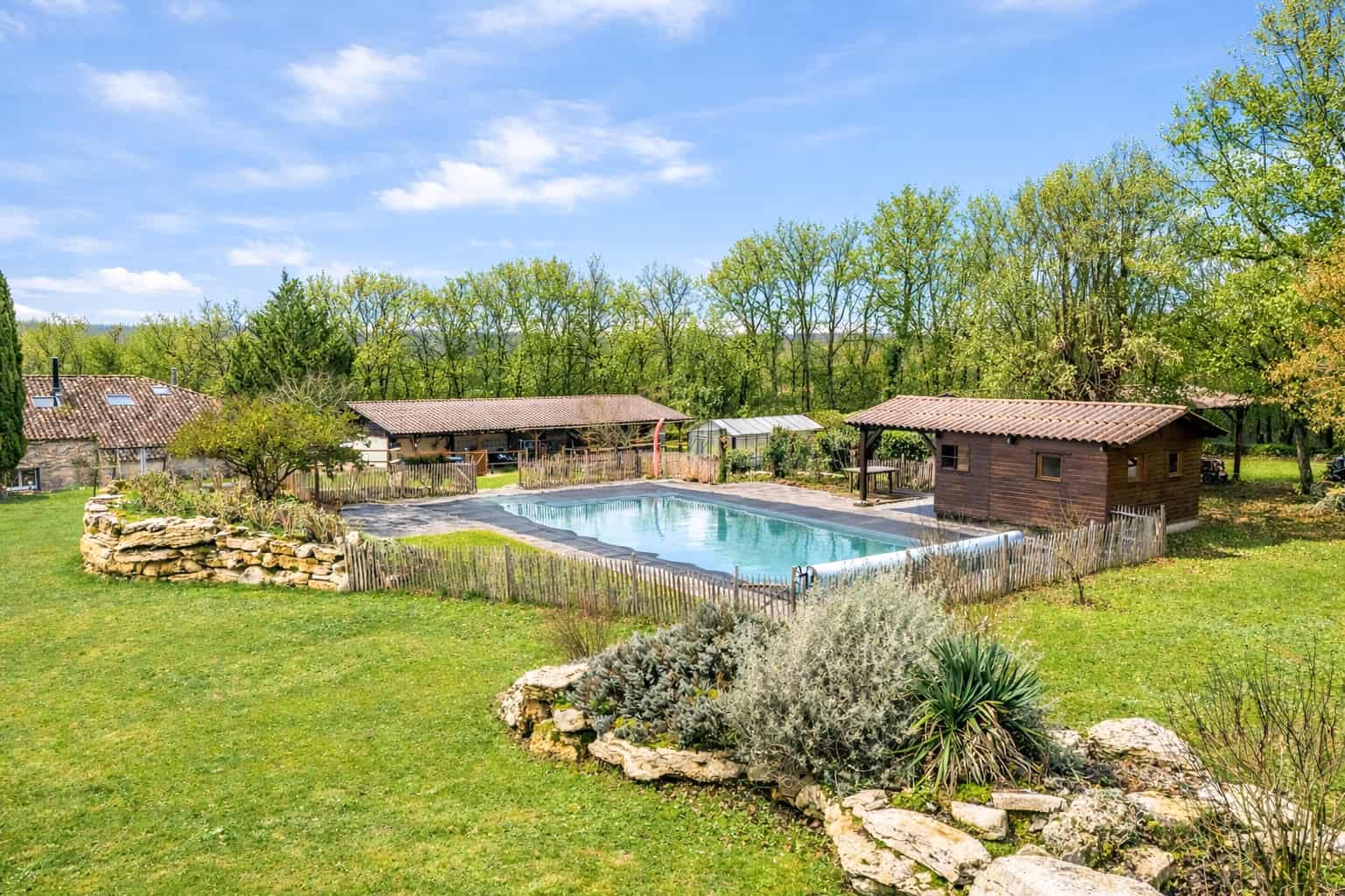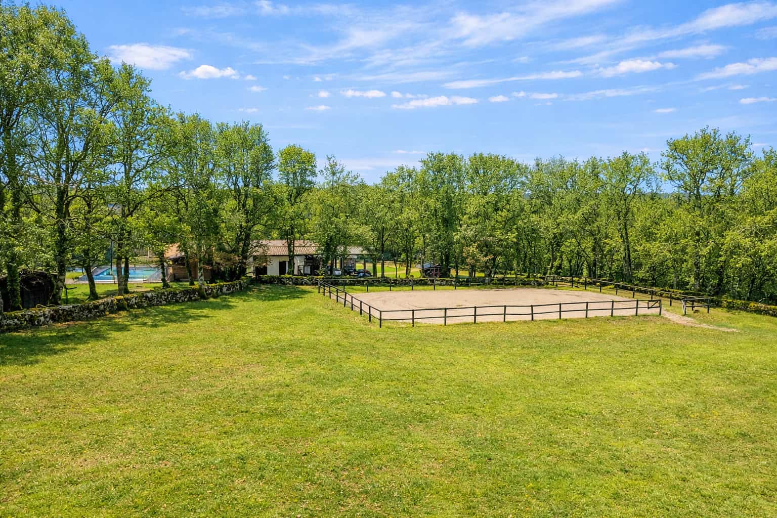 Pour les amateurs d'équitation, les installations sont excellentes : environ 7,2 hectares avec des clôtures sécurisées pour les chevaux, des écuries avec quatre généreux boxes, de nombreuses dépendances, une serre, un parking couvert, un chalet climatisé et doublement vitré qui pourrait être utilisé comme logement supplémentaire, studio d'art, bureau à domicile, etc.
