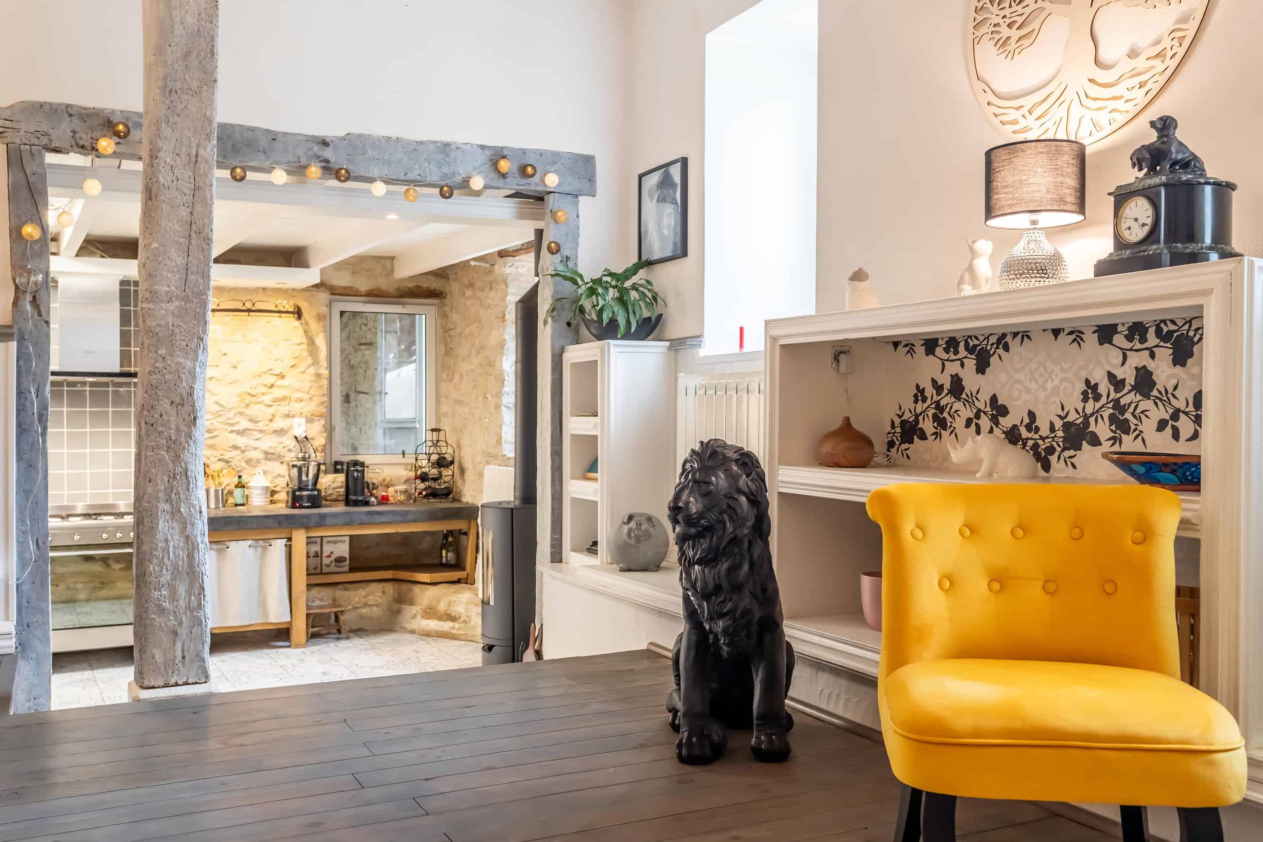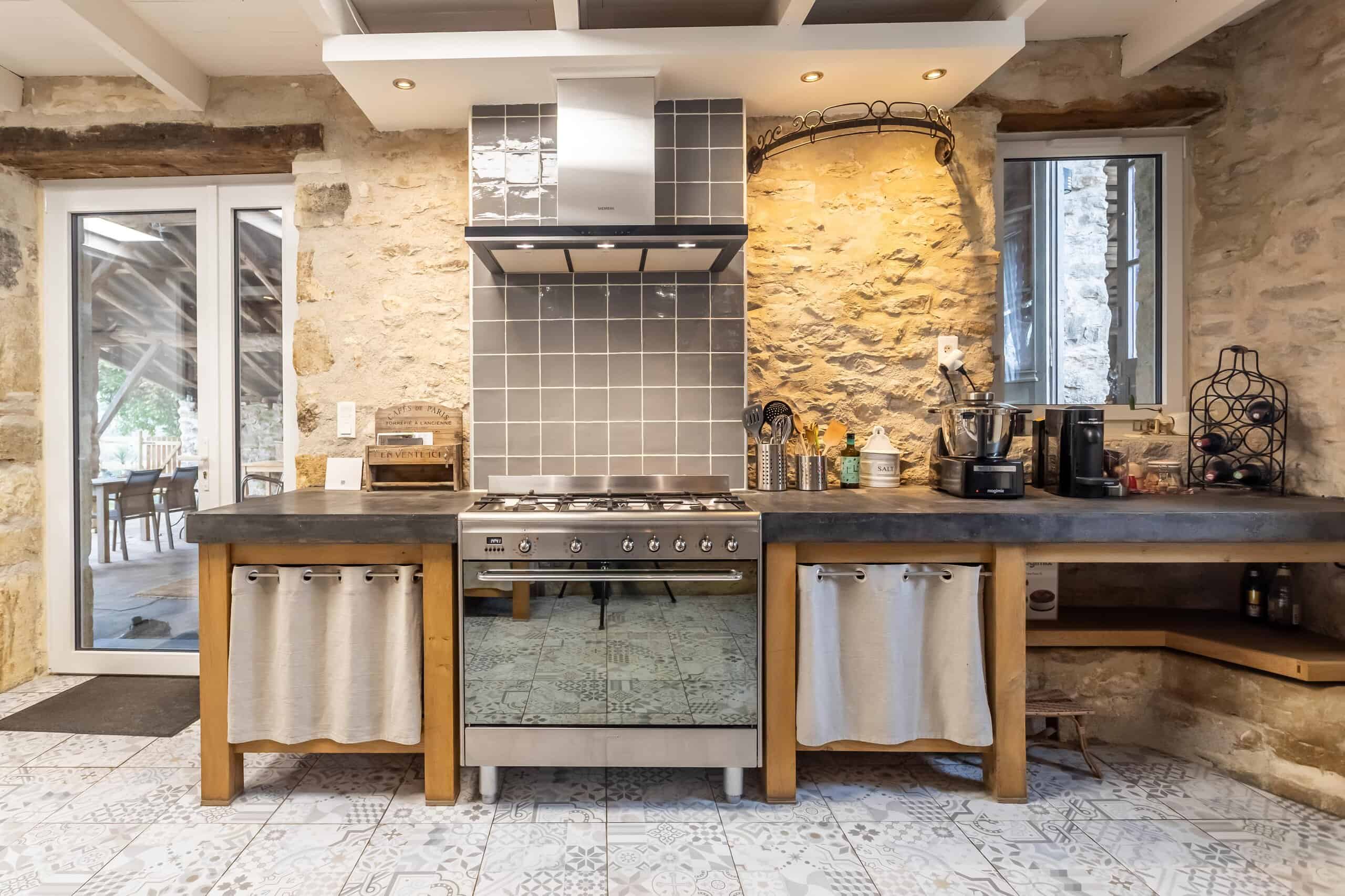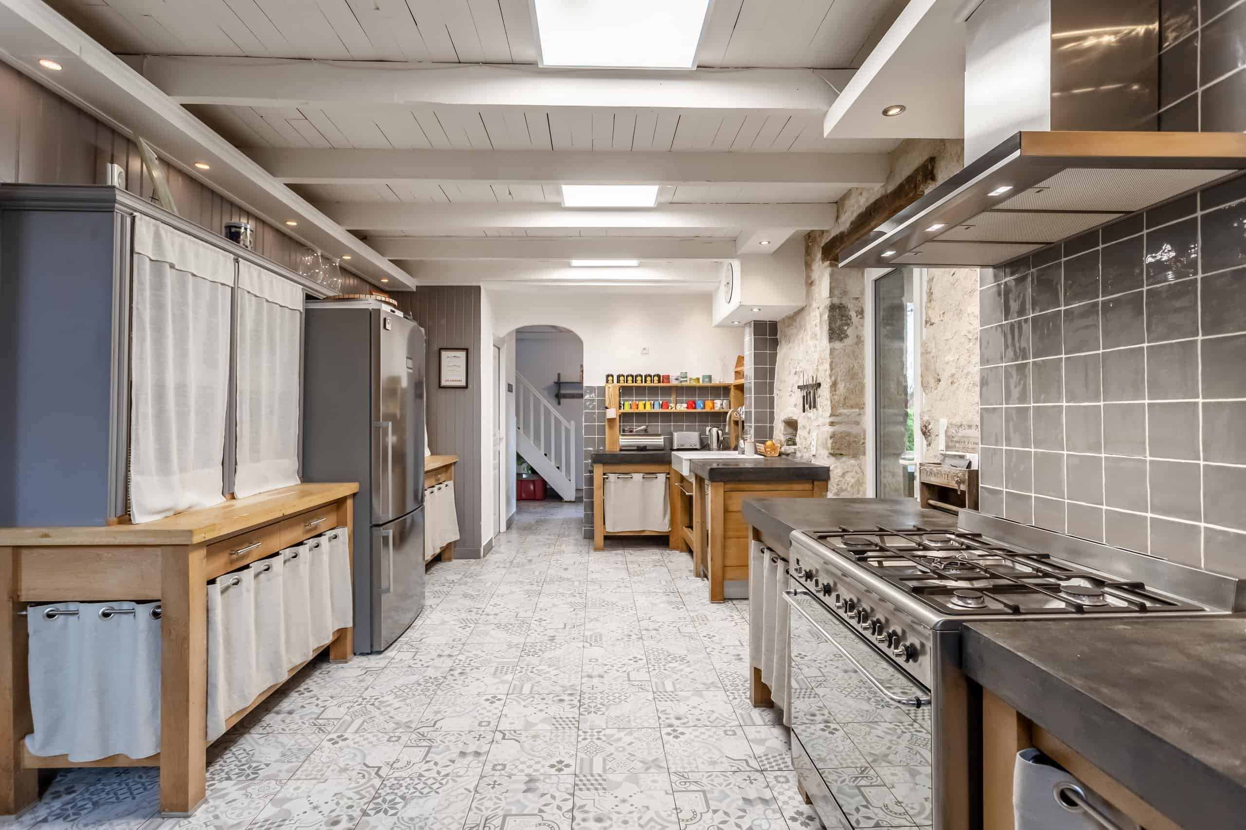 À l'extérieur, la vie devient délicieusement française. Une grande terrasse couverte sert de cadre à de longs déjeuners en plein air, tandis que la piscine d'eau salée de 12 x 6 m permet de prendre les étés très au sérieux.