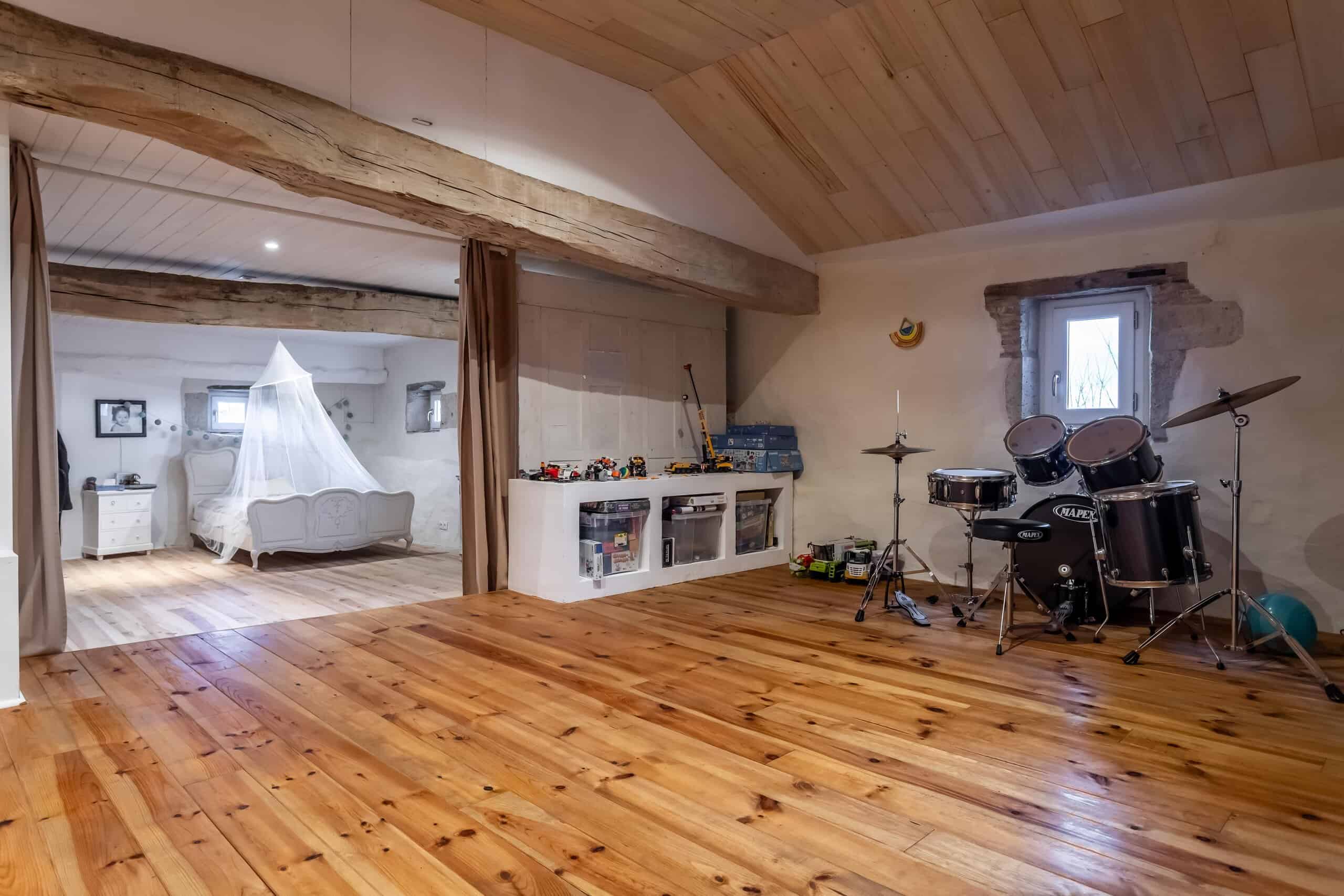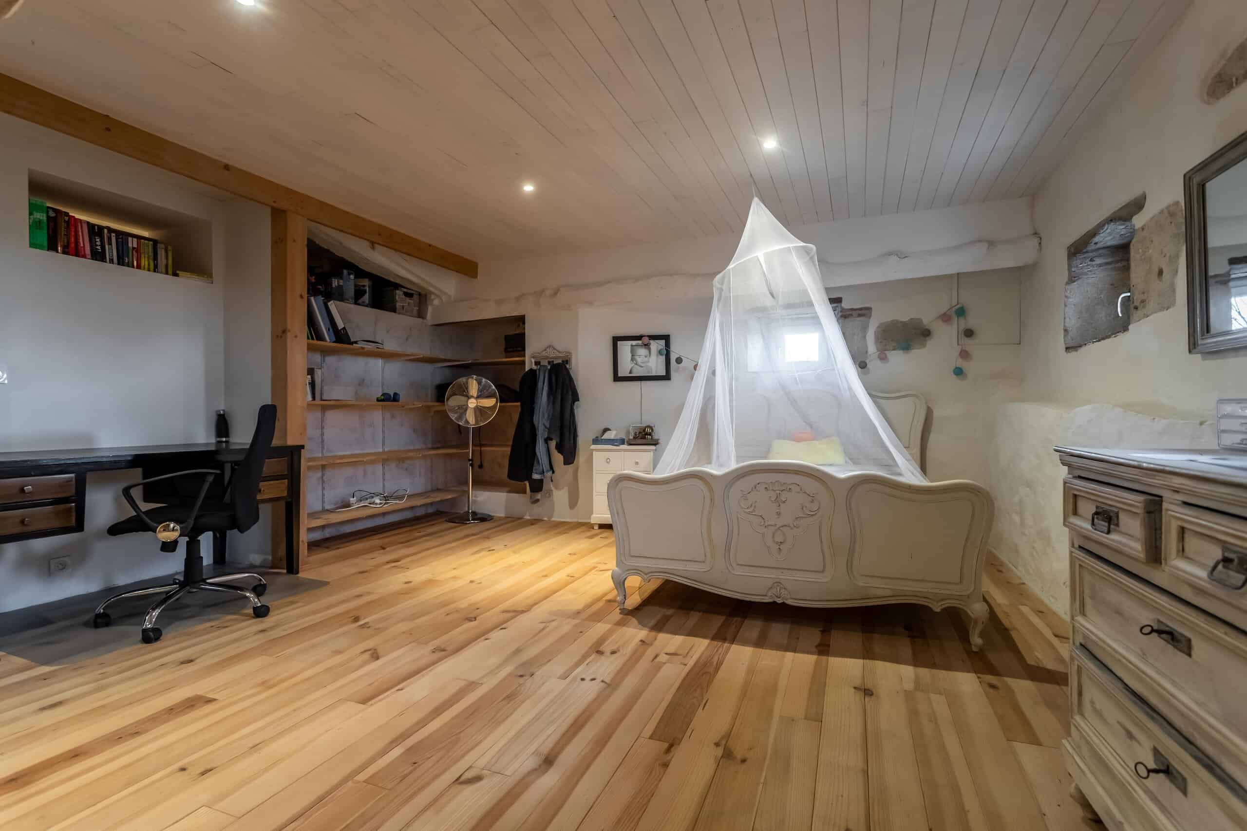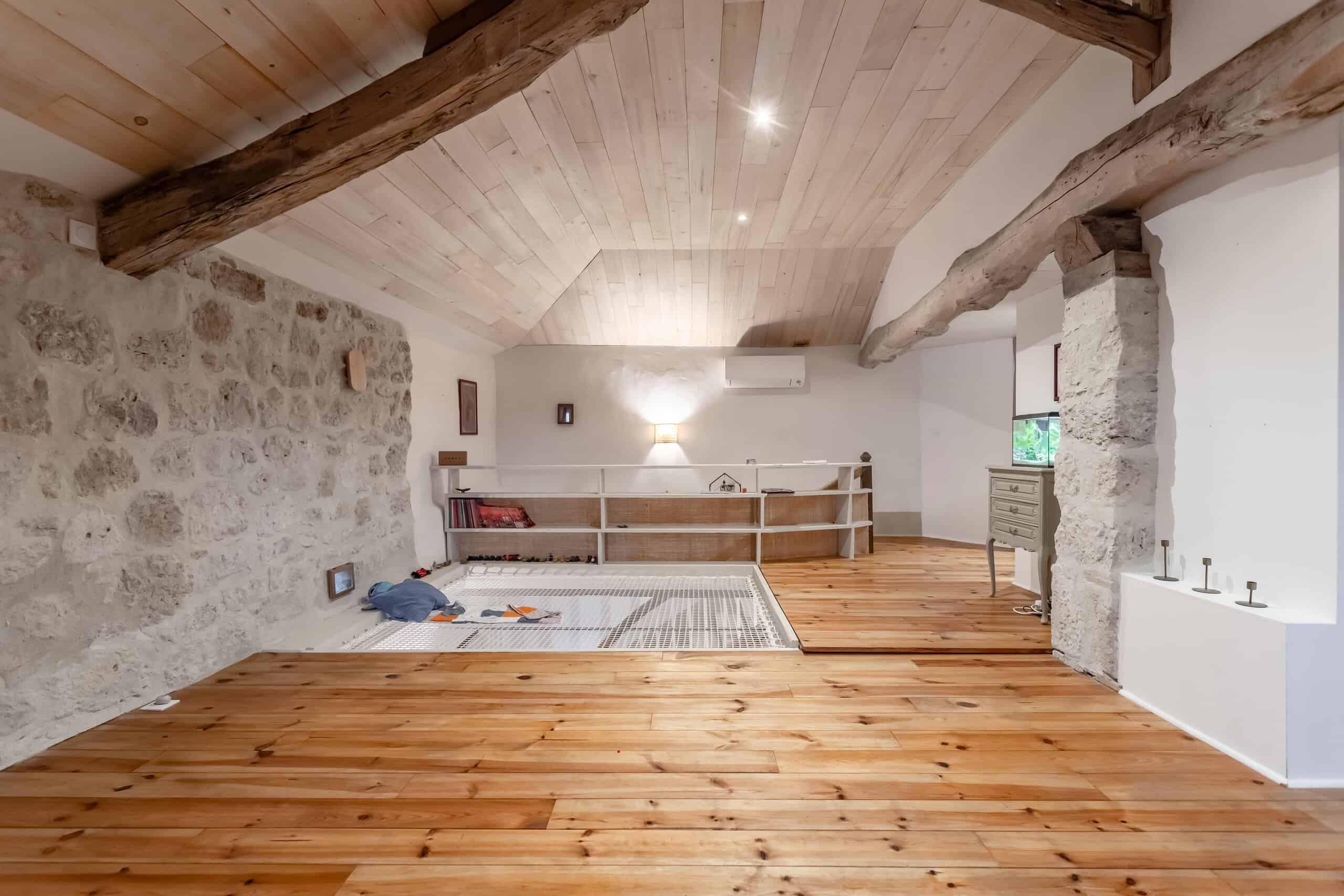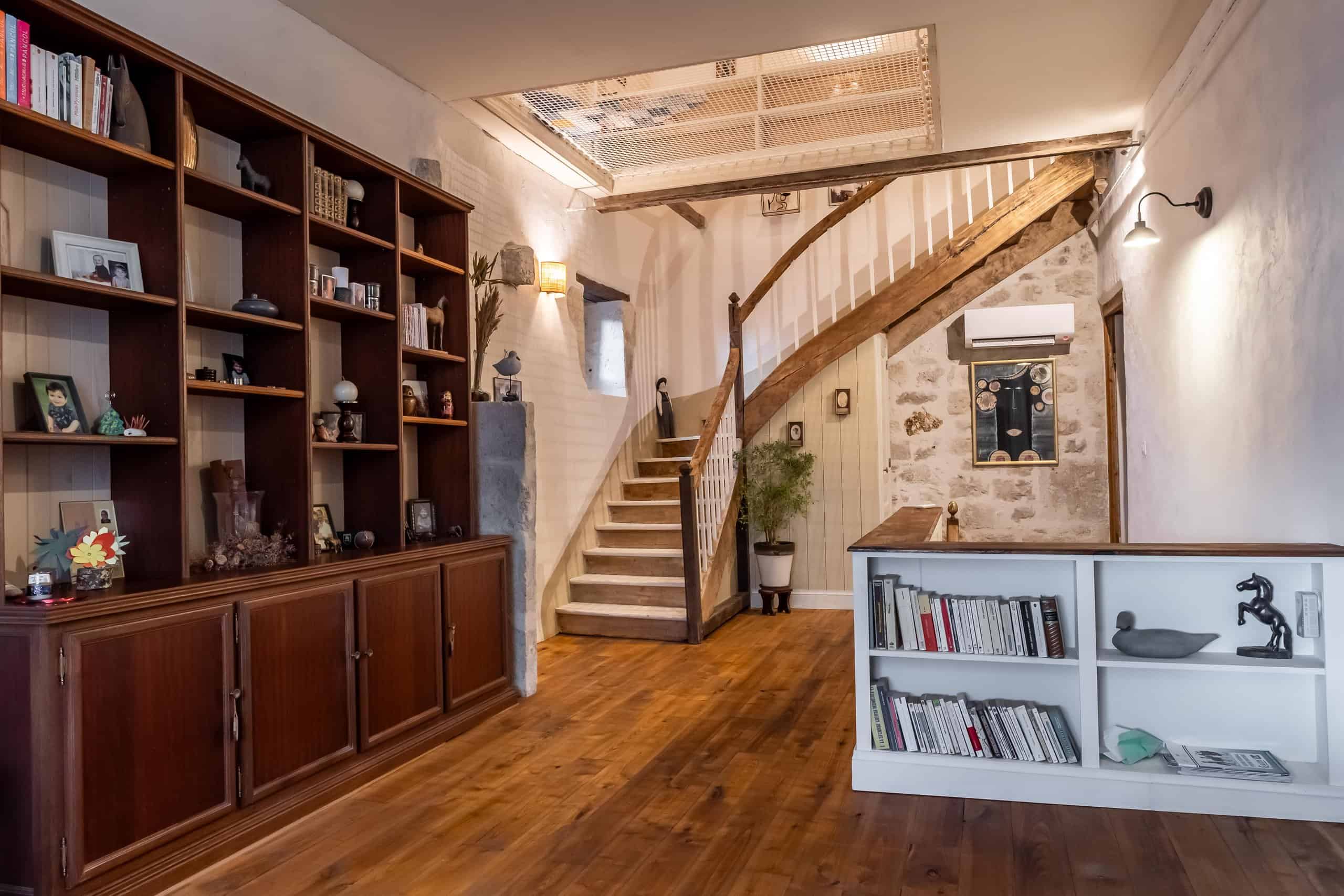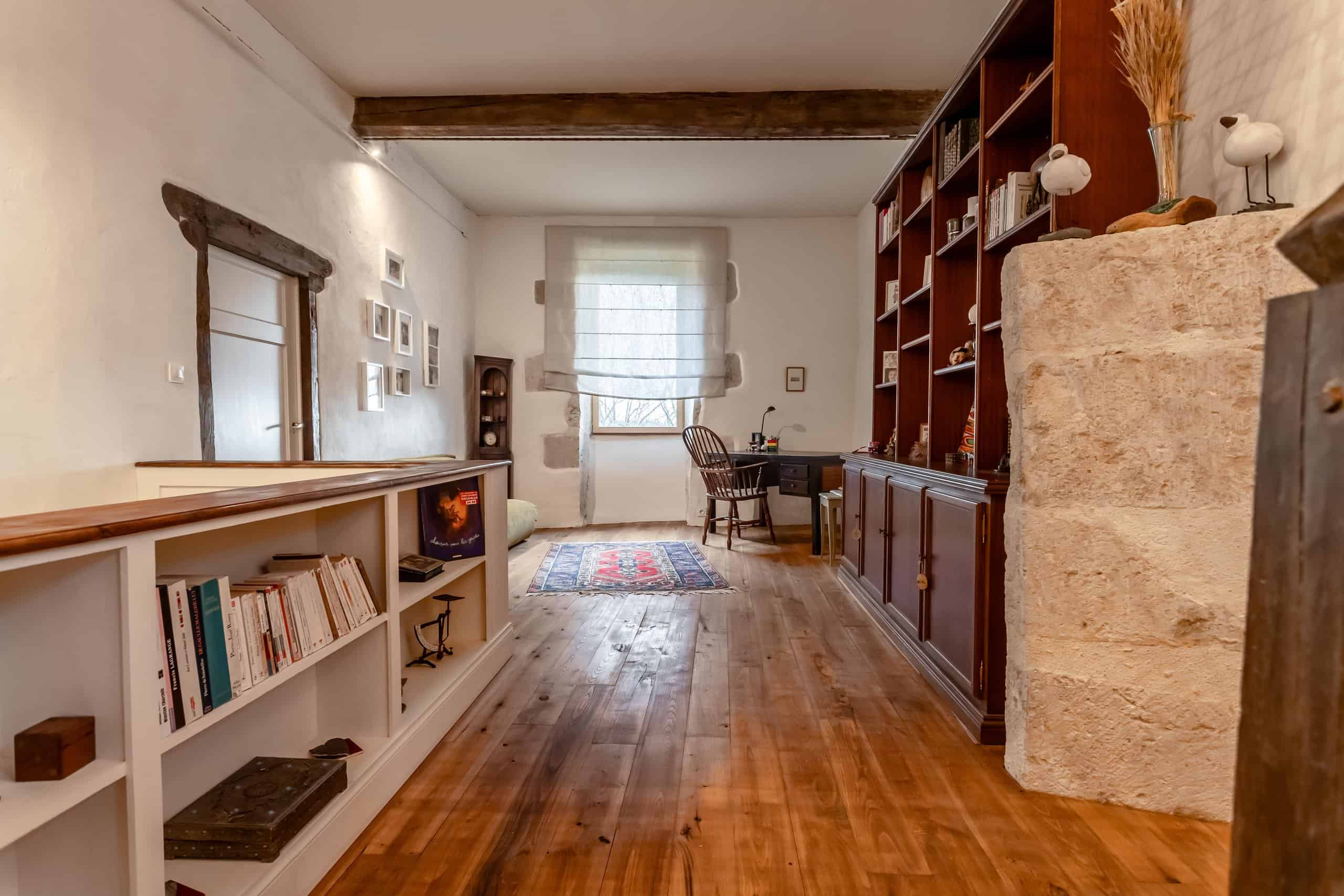 Au premier étage, un généreux salon et un bureau offrent des espaces lumineux et tranquilles, ainsi que des salles de bains contemporaines de bon goût. Le dernier étage réserve une délicieuse surprise : un salon de style filet de cargo, idéal pour se détendre, lire ou simplement regarder la lumière entrer tout en réfléchissant à la façon dont tout cela s'est déroulé.