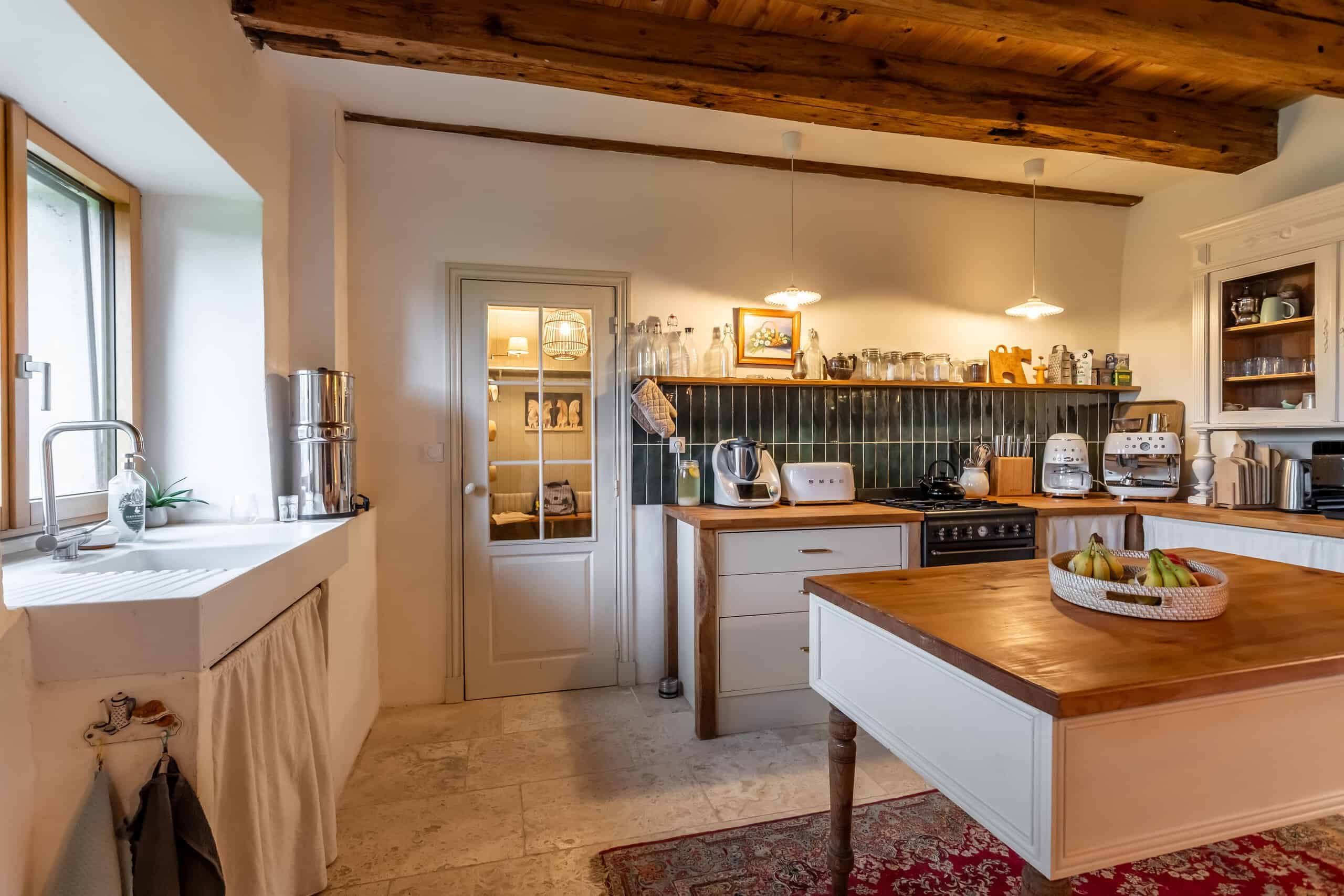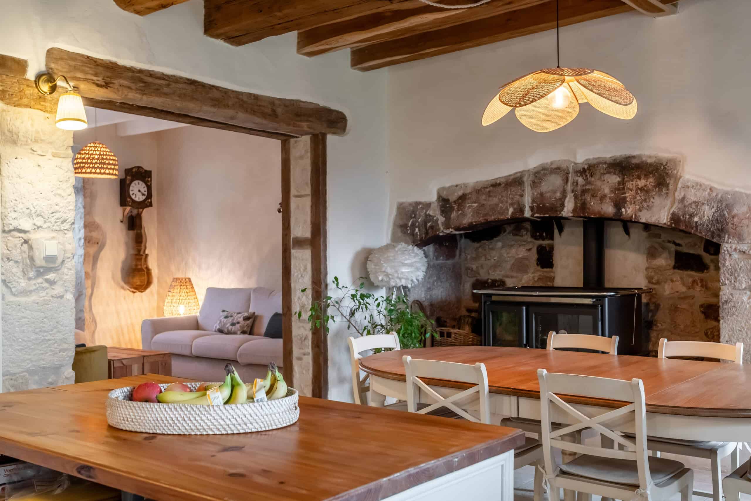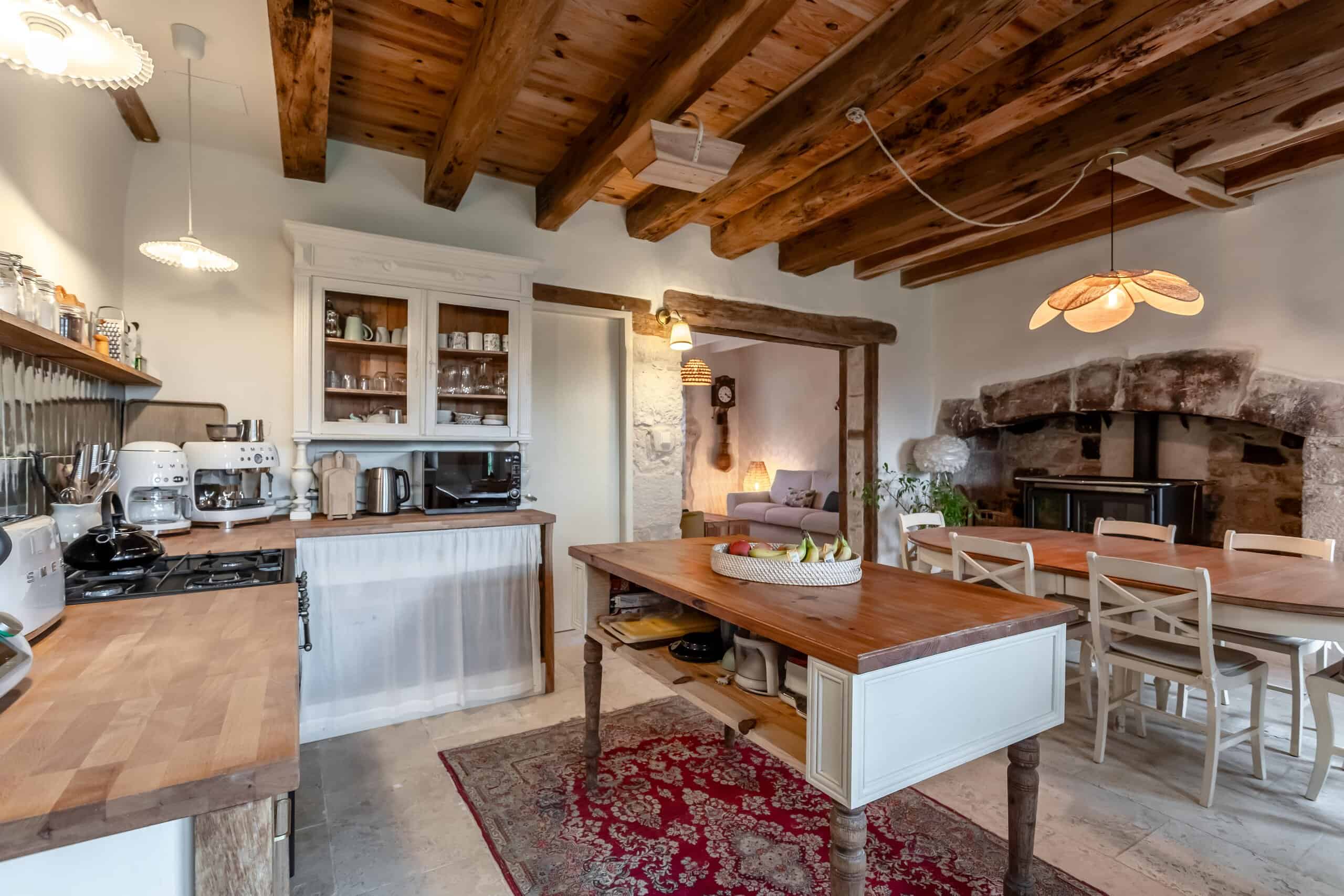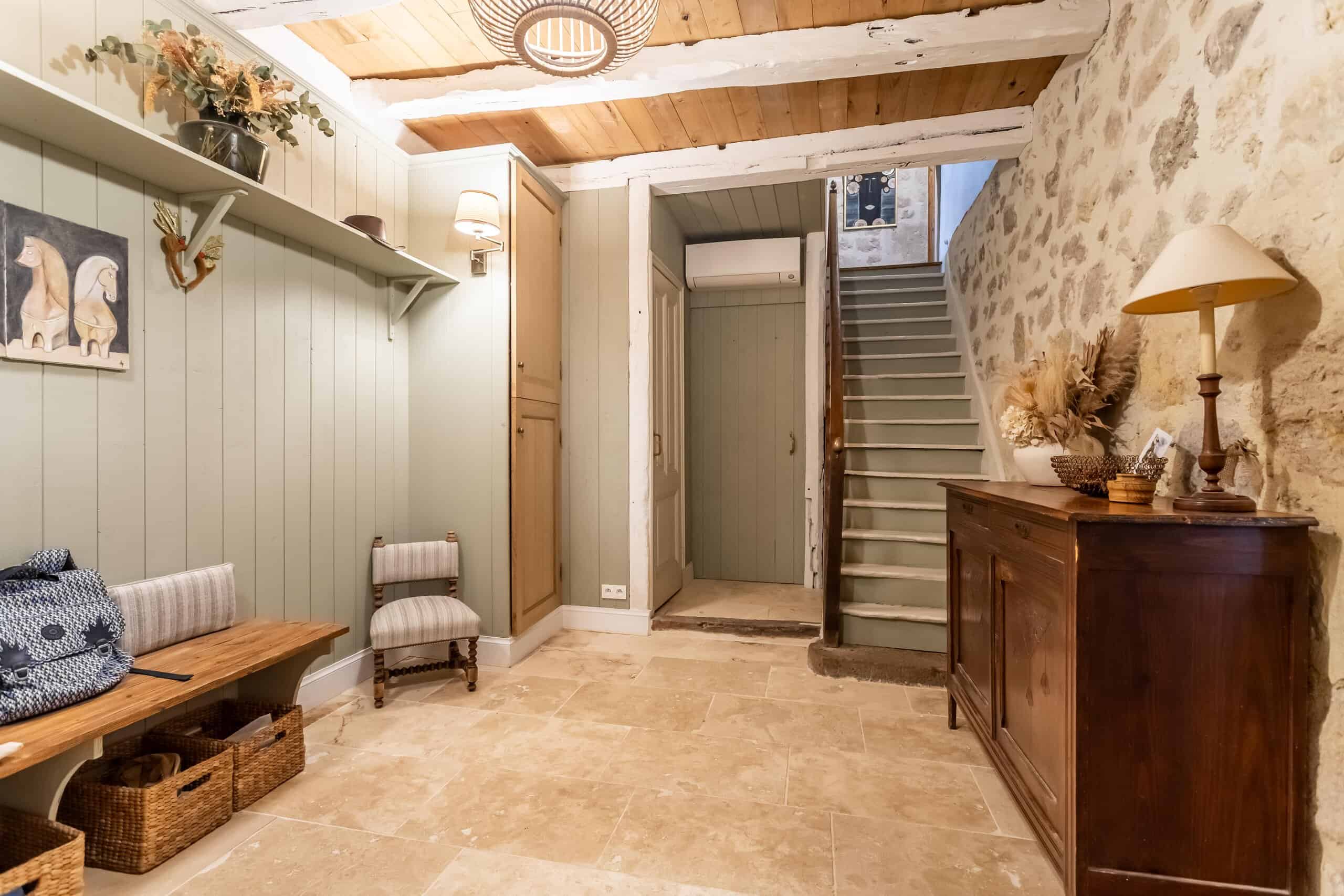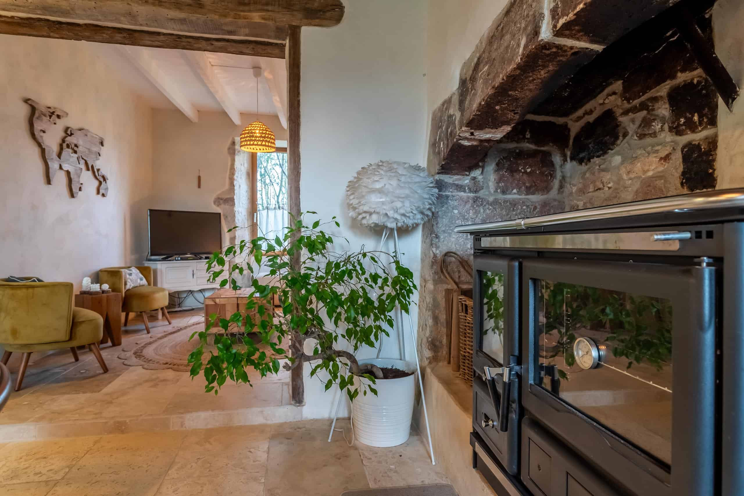 La maison de quatre chambres, répartie sur trois étages, est riche en éléments d'époque : pierres apparentes, plafonds à poutres apparentes, lambris élégants, sols en travertin, escalier d'origine et belle cheminée en pierre. Le cœur de la maison est une cuisine/salon à la fois confortable et élégante, équipée d'une cuisinière à bois, de meubles encastrés et d'un second four électrique, idéale pour les cuisiniers passionnés et les dégustateurs enthousiastes.