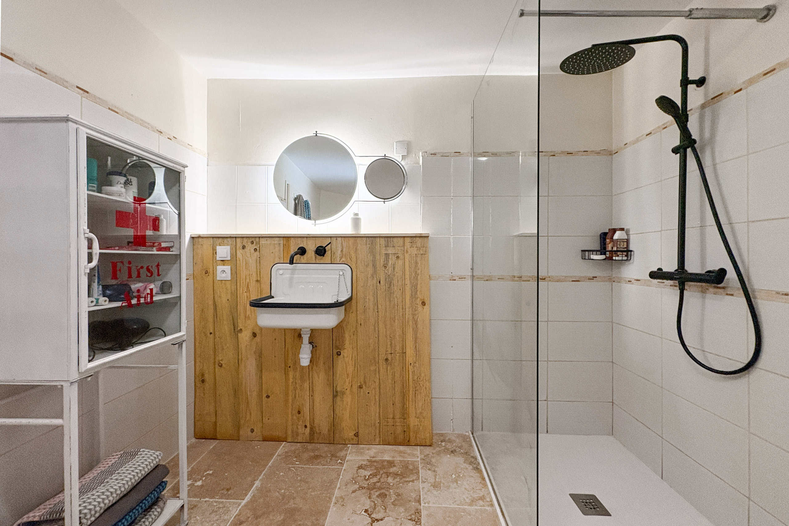 Au rez-de-chaussée, deux chambres doubles généreuses s'ouvrent par des portes-fenêtres sur la terrasse ensoleillée et la piscine, idéales pour les matins qui commencent avec le chant des oiseaux et peut-être une baignade matinale. Le dernier étage offre deux autres chambres de caractère sous des poutres apparentes, complétant le mélange d'histoire et de confort de la maison. Les éléments modernes essentiels sont tous en place : double vitrage, climatisation, adoucisseur d'eau et un système de chauffage par le sol. pompe à chaleur La pompe à chaleur prouve que même les vieilles pierres apprécient les commodités modernes.