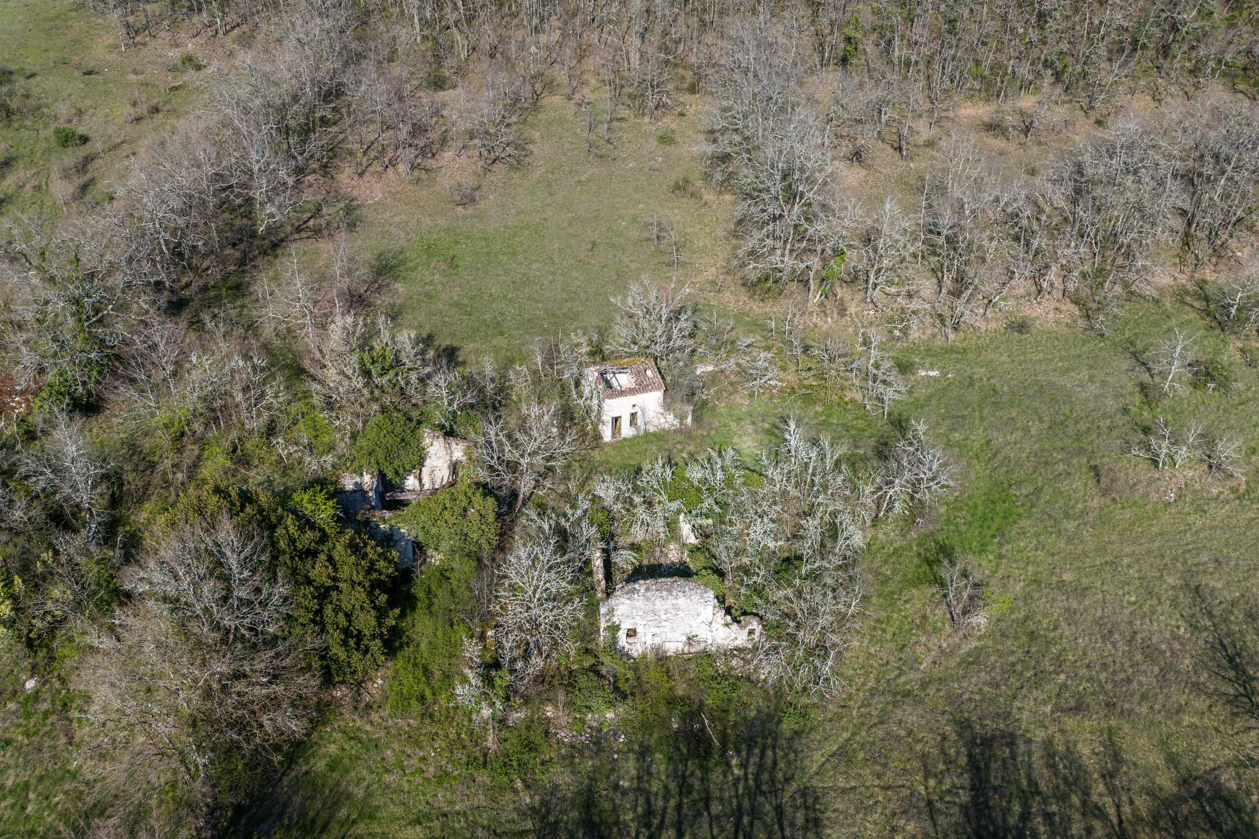 Dissimulé dans les bois, l'ancien hameau — comprenant plusieurs bâtiments en pierre — offre une occasion rare de restauration, ou, si vous préférez, peut rester exactement tel qu'il est : une folie merveilleusement romantique et un excellent sujet de conversation.