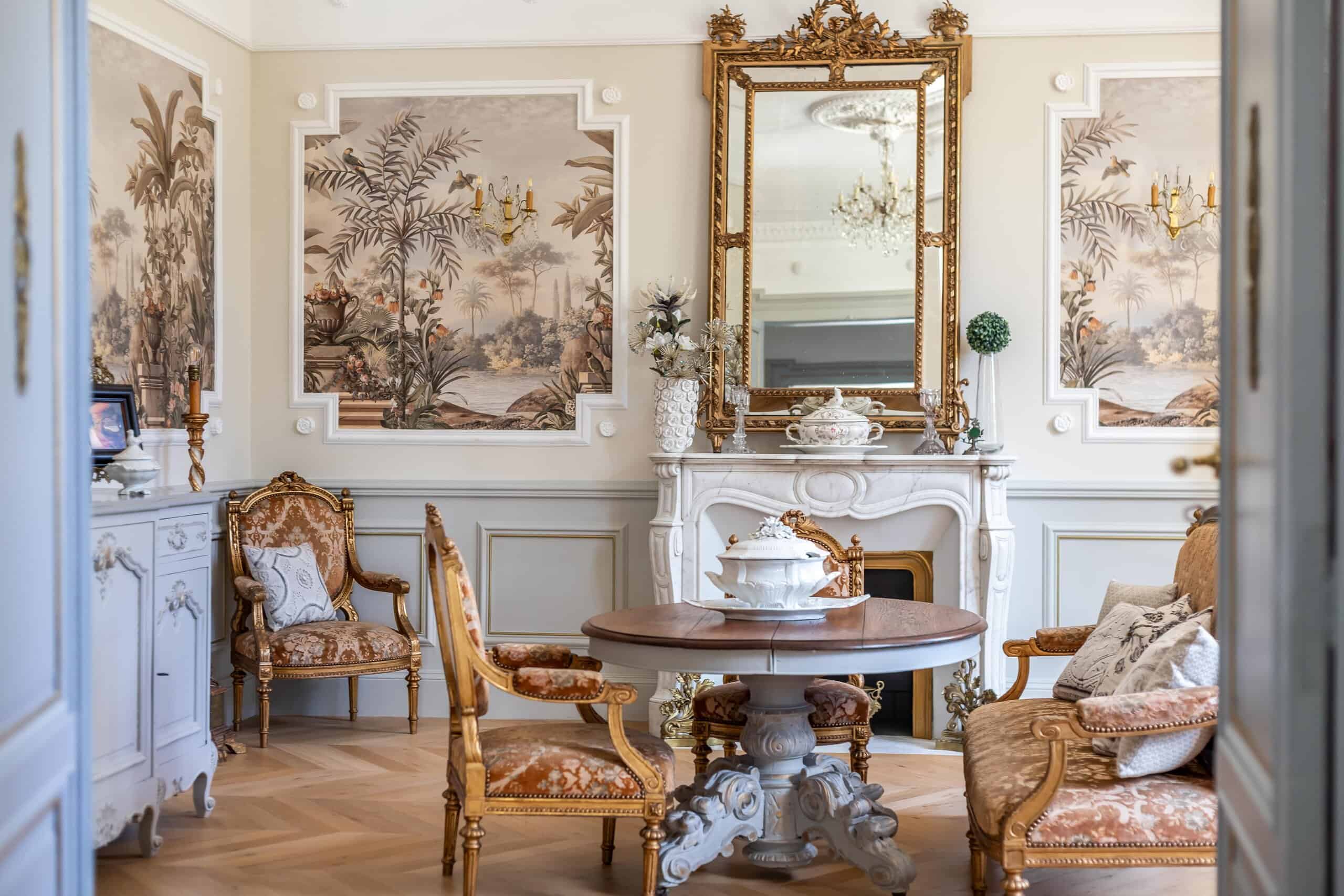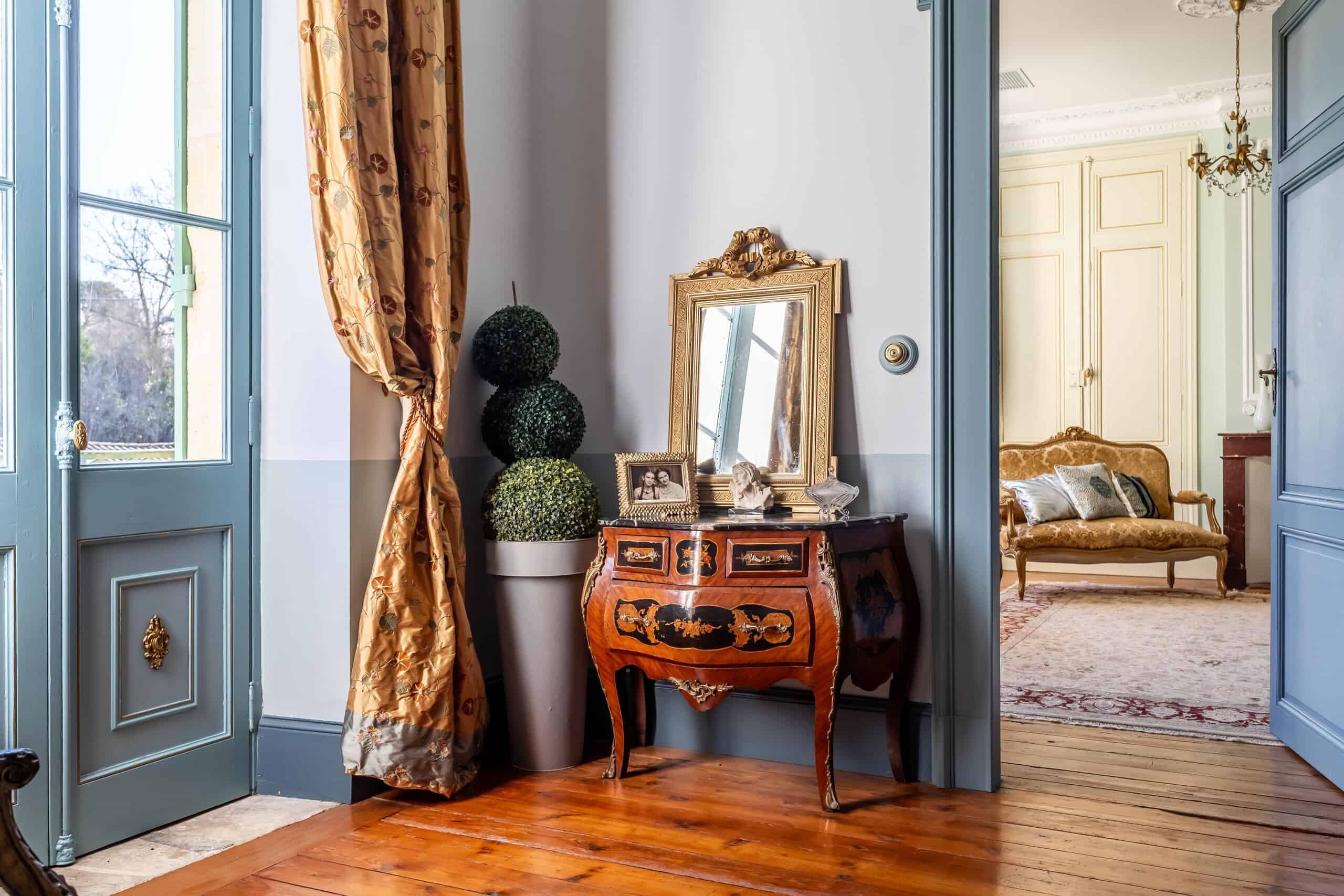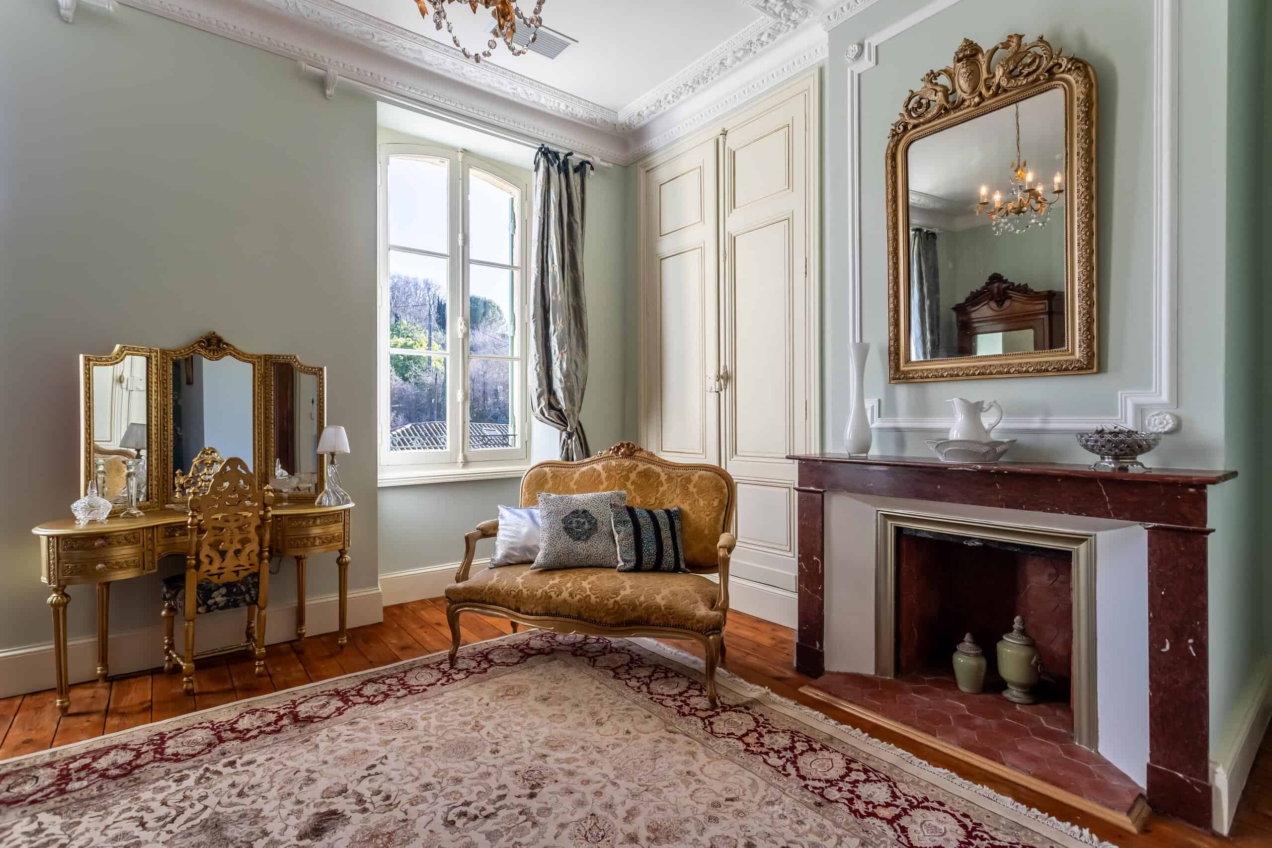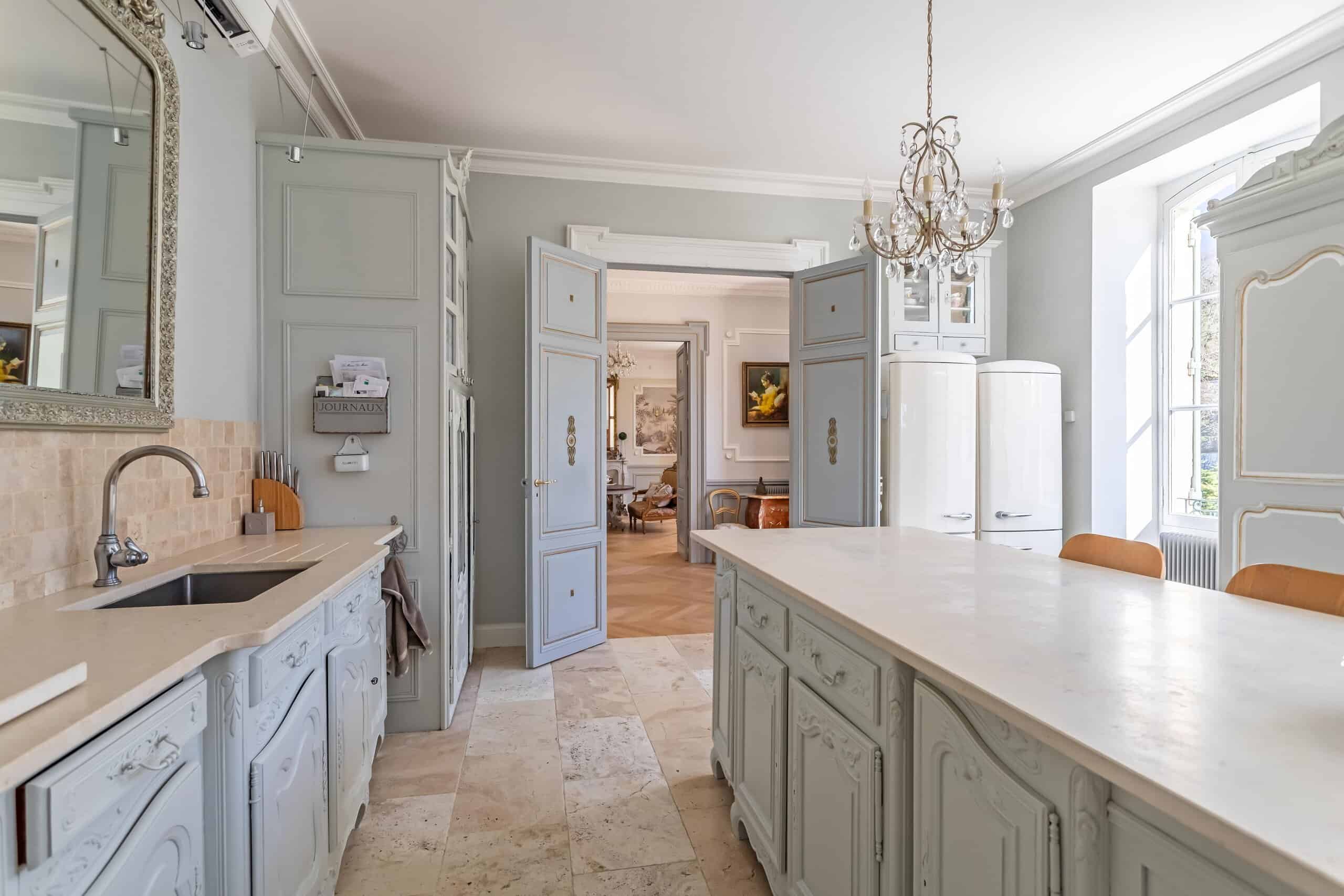 Accessed via either a gated entrance or a second private driveway, the Manor House sits proudly at the end of the drive. Grand yet surprisingly comfortable, it offers a magnificent full-length hallway, three principal reception rooms and a rear balcony capturing spectacular views. Period features abound: exquisite plaster cornicing, marble fireplaces, herringbone flooring, original doors and a truly elegant staircase. The stylish modern kitchen—complete with stone flooring and worktops and a gas range cooker—strikes the perfect balance between contemporary practicality and classical charm. Six beautifully designed bedrooms follow, each decorated with flair and confidence, featuring imaginative wallpapers and colour palettes that clearly reflect a professional touch. Luxurious marble-lined bathrooms complete the picture, alongside pompe à chaleur heating and air conditioning in select rooms. Frankly, the photographs do most of the talking.