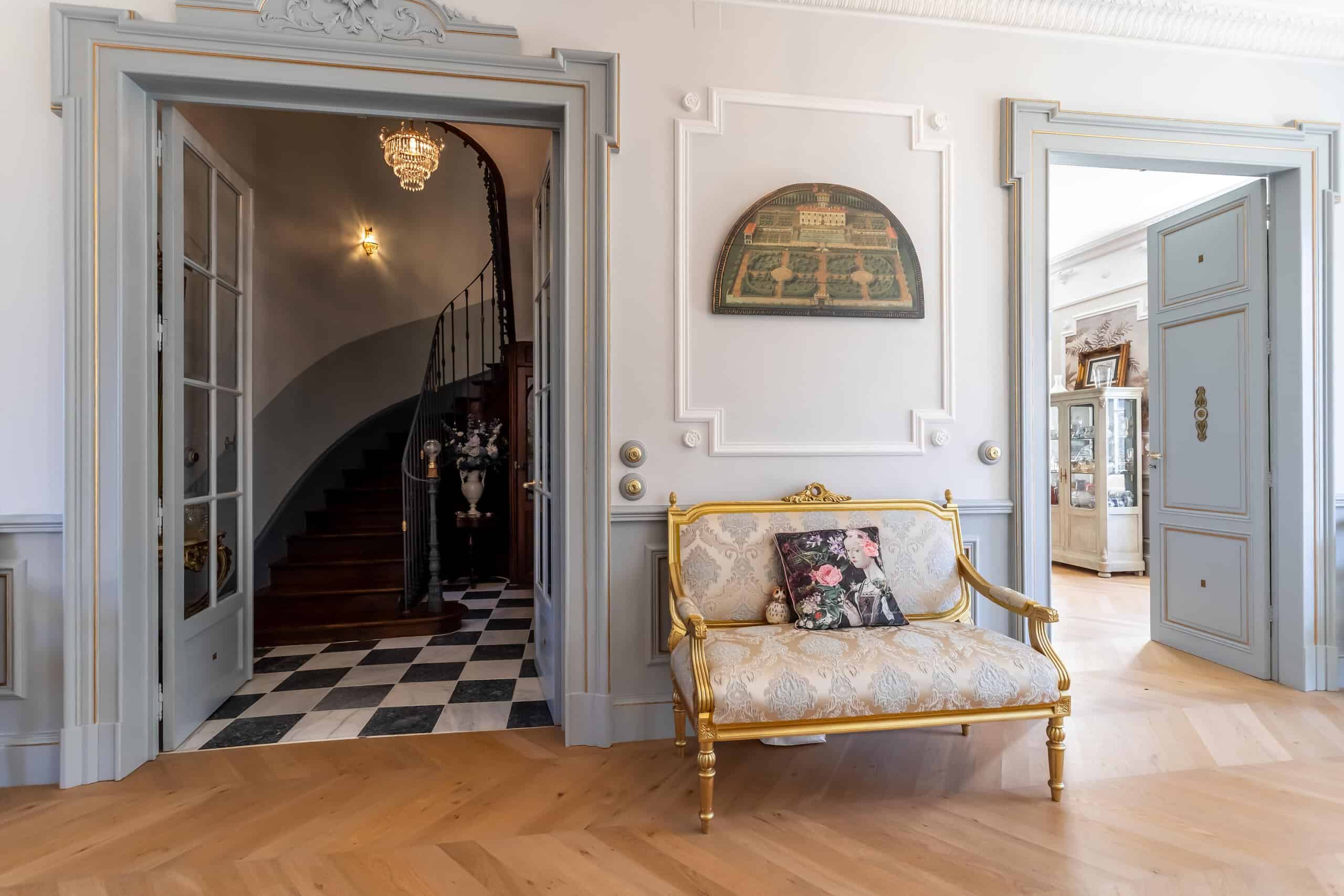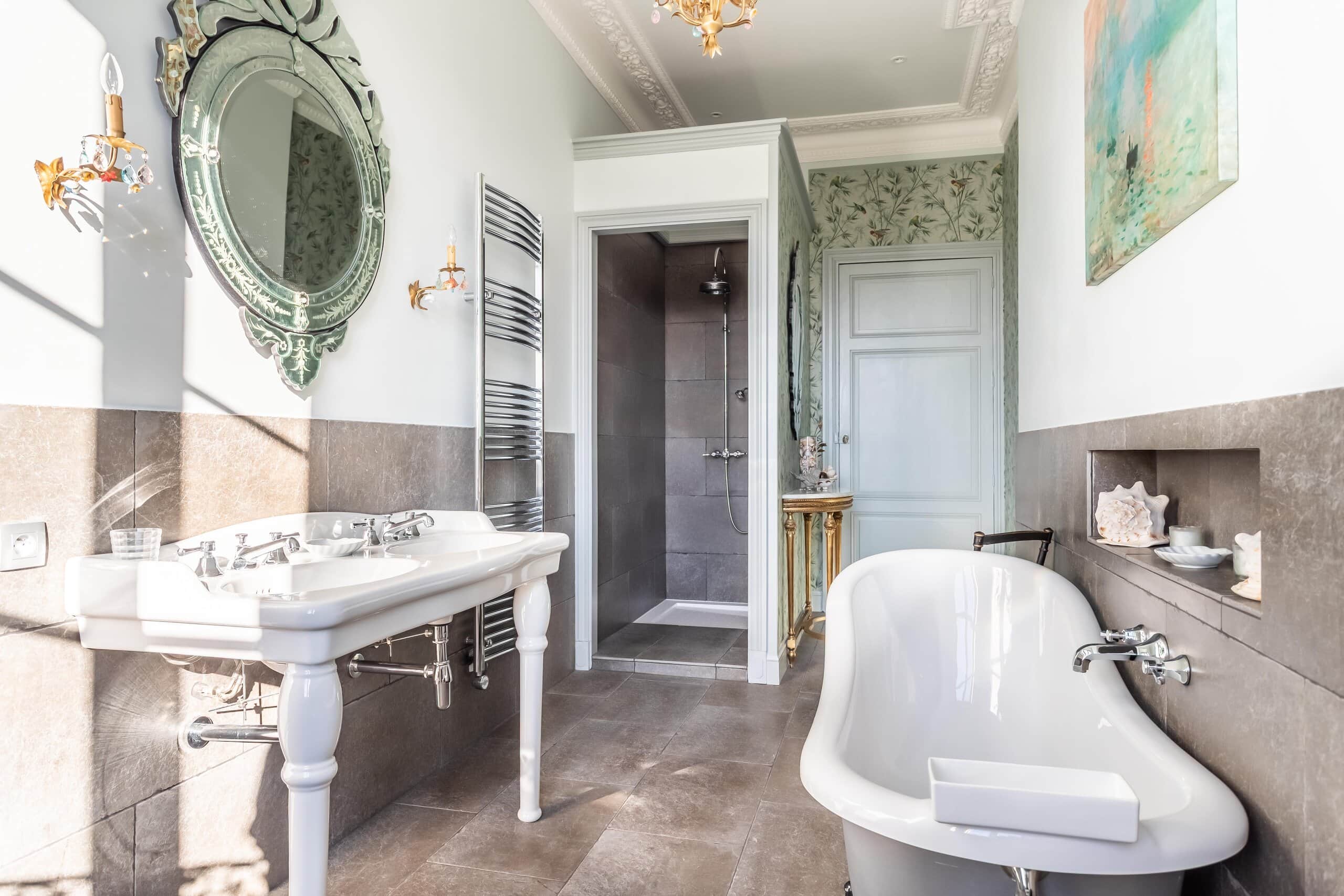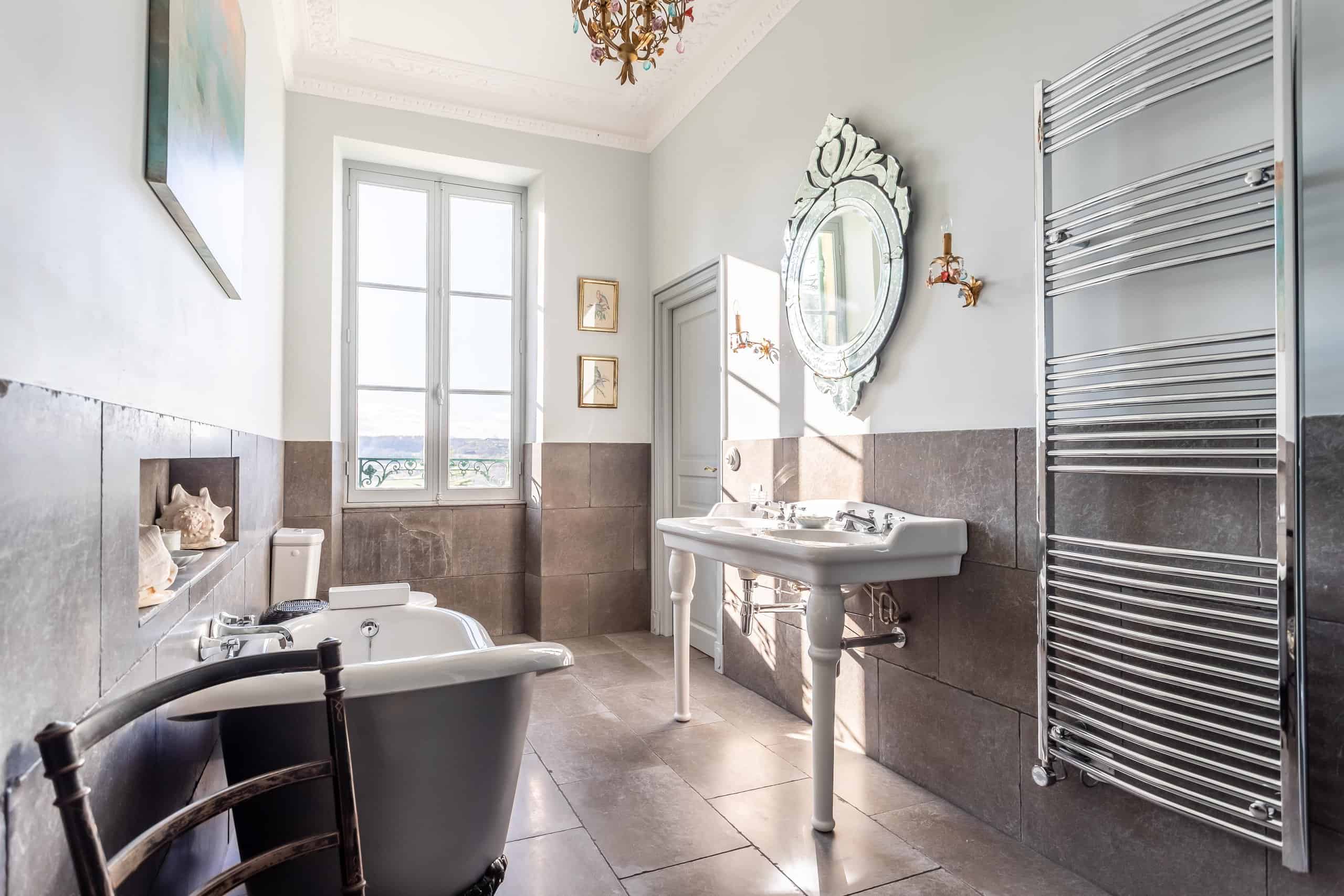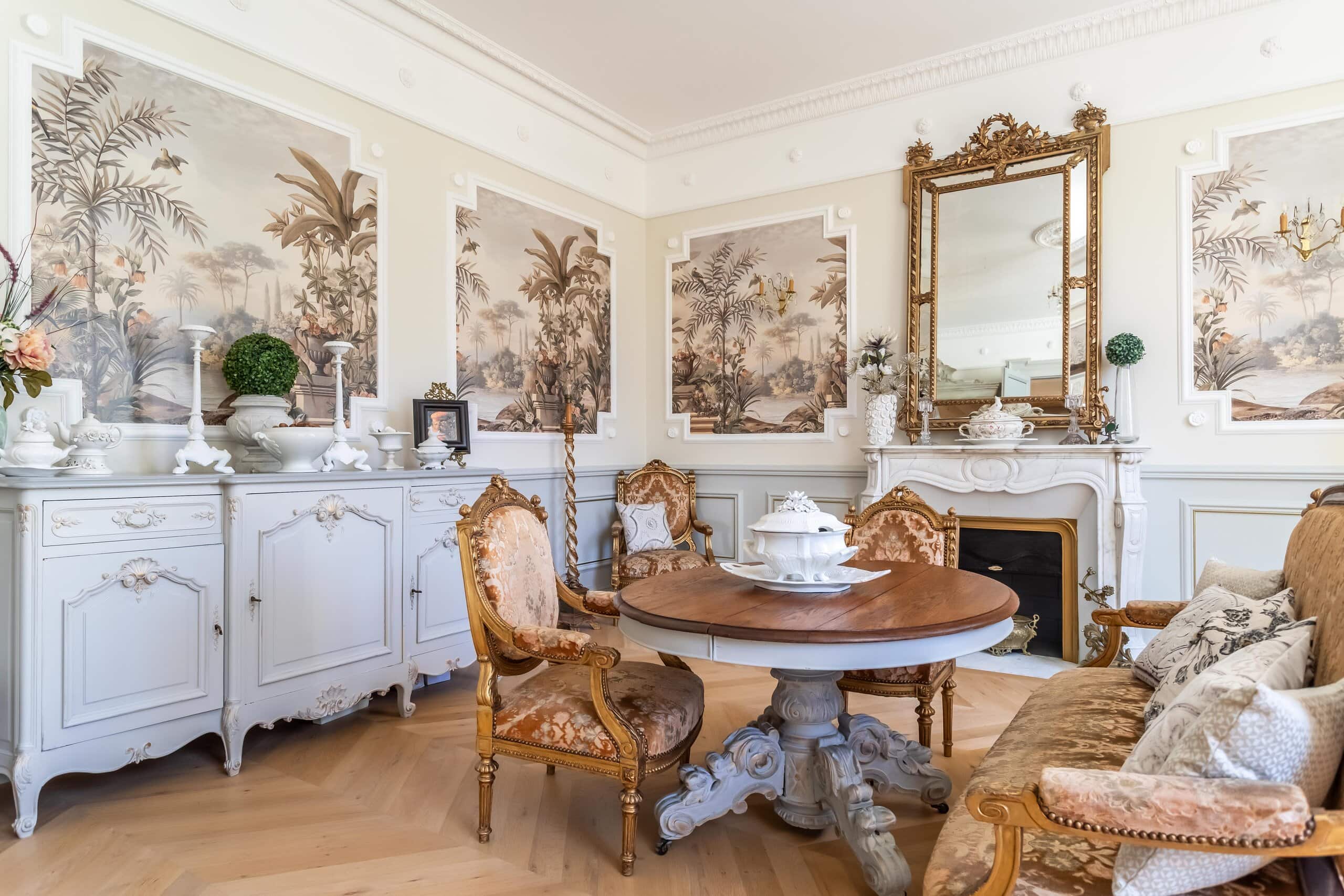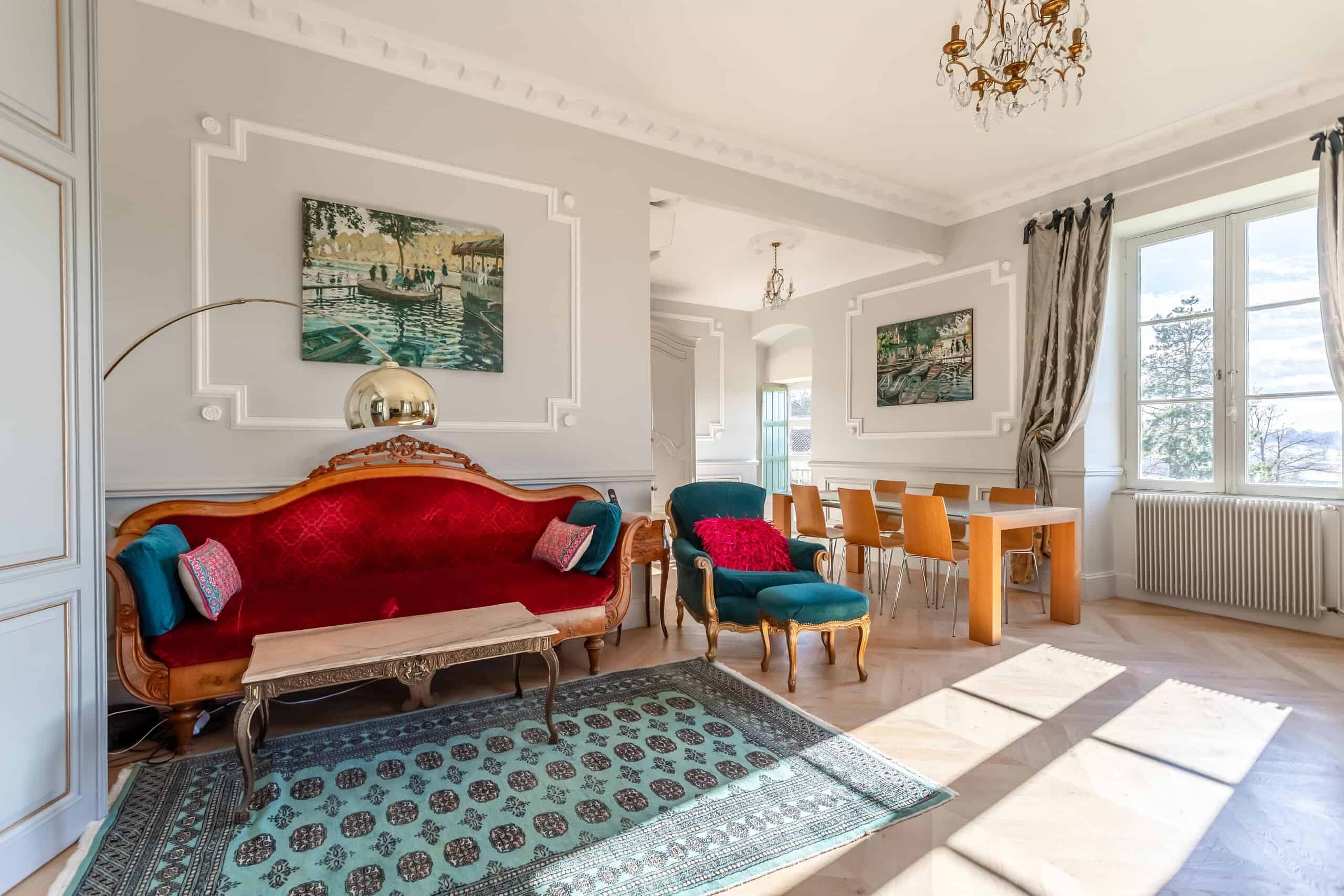 Accessed via either a gated entrance or a second private driveway, the Manor House sits proudly at the end of the drive. Grand yet surprisingly comfortable, it offers a magnificent full-length hallway, three principal reception rooms and a rear balcony capturing spectacular views. Period features abound: exquisite plaster cornicing, marble fireplaces, herringbone flooring, original doors and a truly elegant staircase. The stylish modern kitchen—complete with stone flooring and worktops and a gas range cooker—strikes the perfect balance between contemporary practicality and classical charm. Six beautifully designed bedrooms follow, each decorated with flair and confidence, featuring imaginative wallpapers and colour palettes that clearly reflect a professional touch. Luxurious marble-lined bathrooms complete the picture, alongside pompe à chaleur heating and air conditioning in select rooms. Frankly, the photographs do most of the talking.