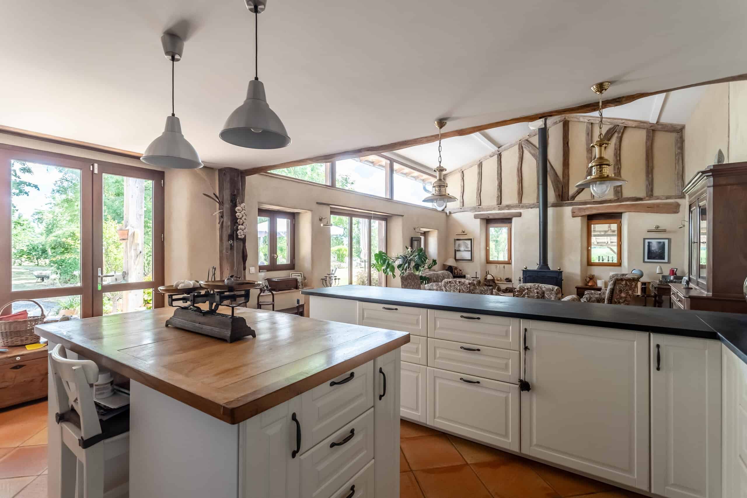 Comprising a stone farmhouse with rendered facade dating from the 1850s, and it’s attached barn, having been restored with an eye for detail and at considerable expense, by its current owners, resulting in a spectacular family home with guest accommodation in the gîte.