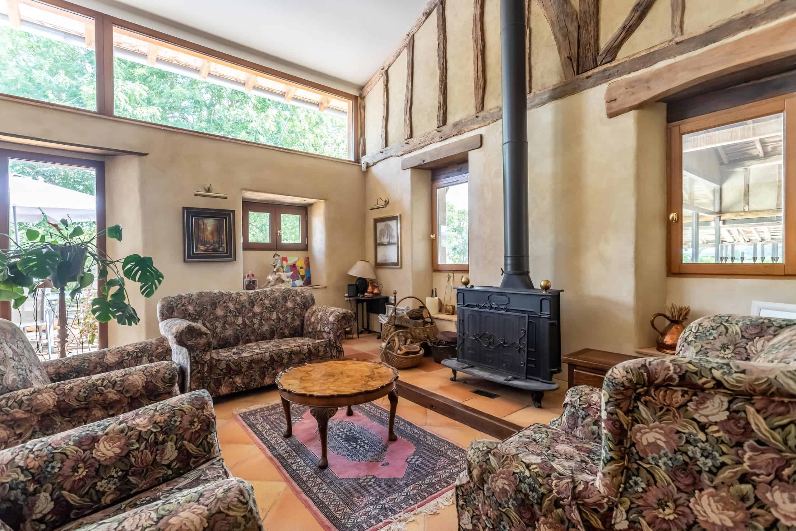 Two garages (one with electric door), car port, wine cave, pond, vegetable garden, and the modern comforts of double glazing throughout with pompe à chaleur heating.