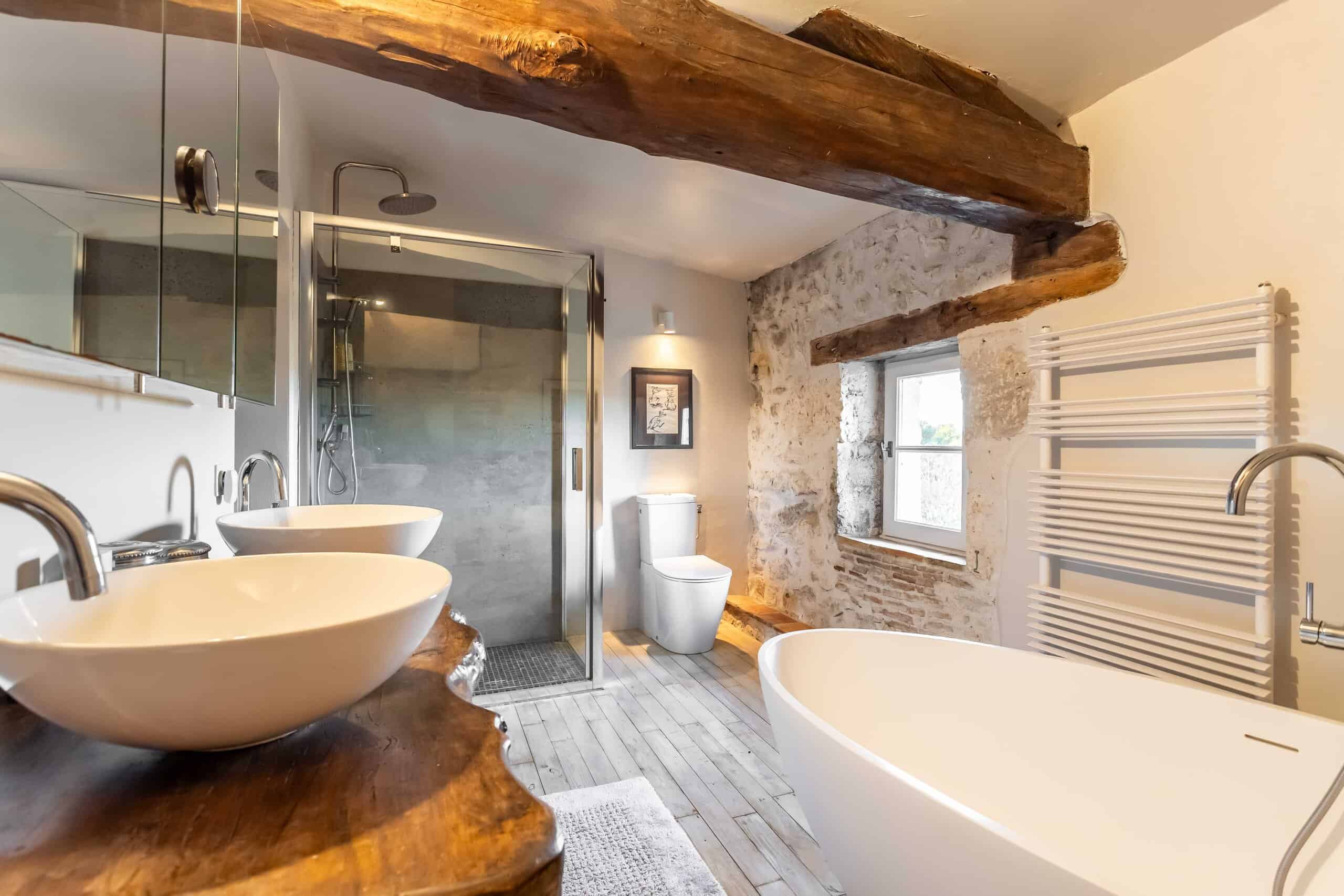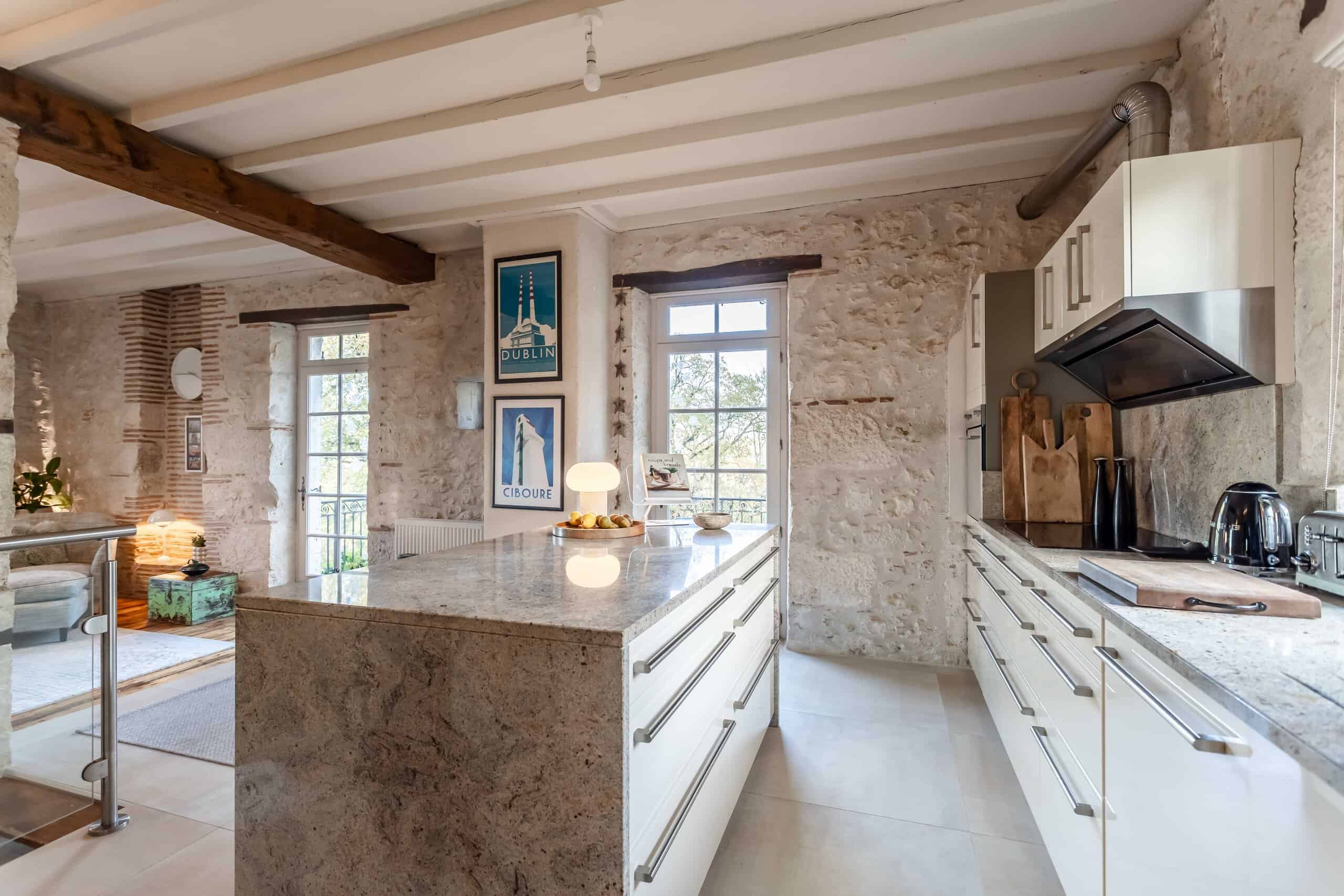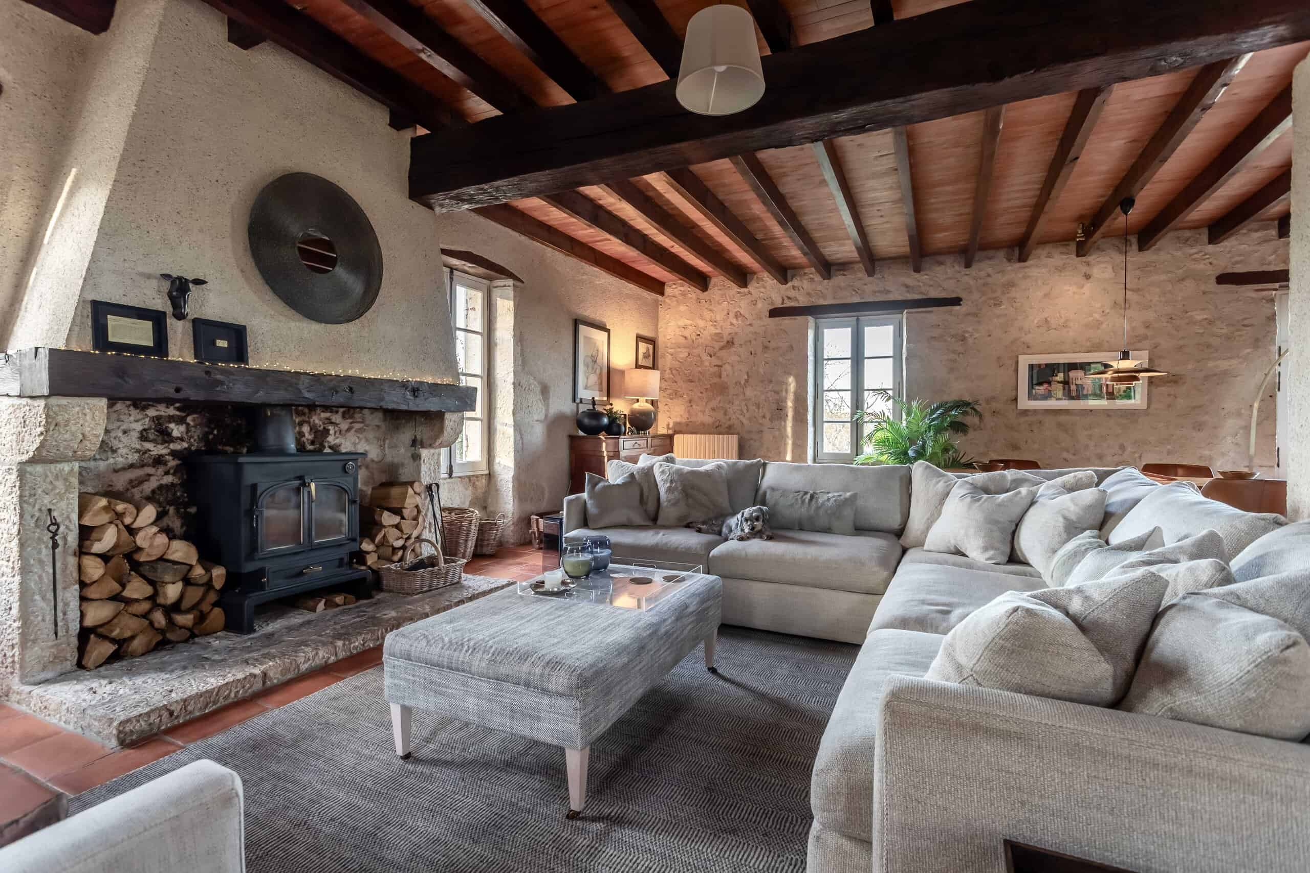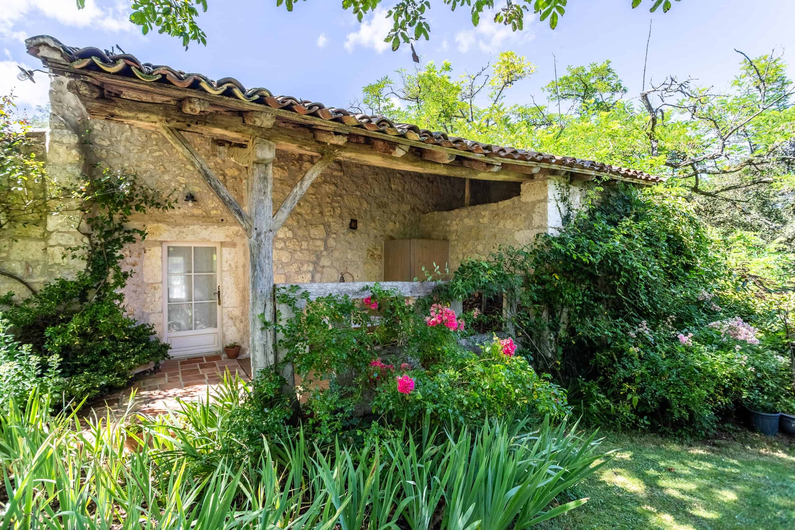 A separate guest cottage/gîte, full of charm, includes a modern fitted kitchen, log-burning stove, and a covered terrace – perfect for guests, family, or as a superb letting opportunity. There is also a garage block and a stylish home office above the pool.