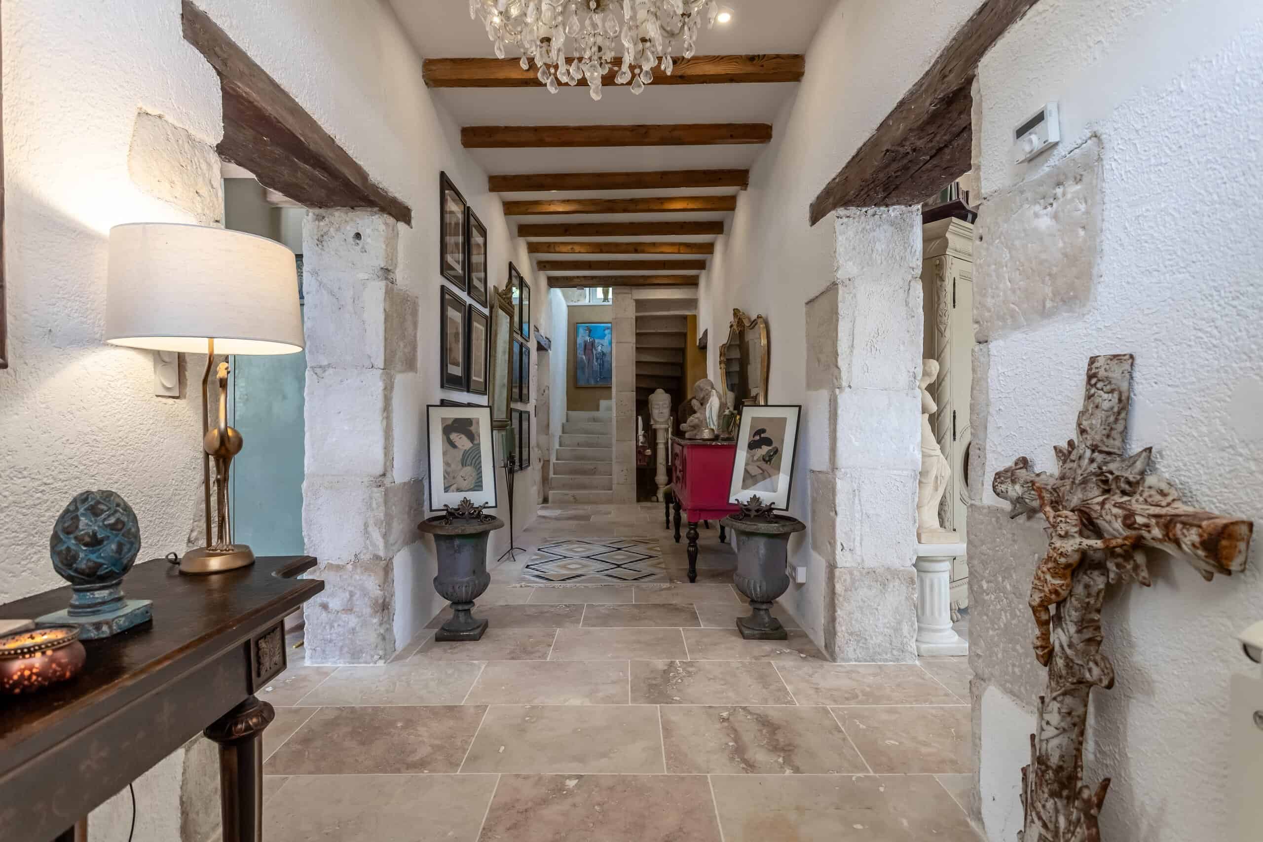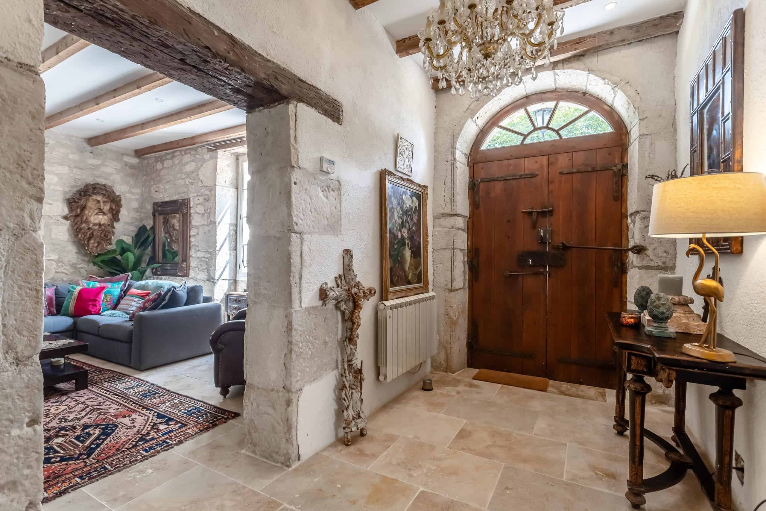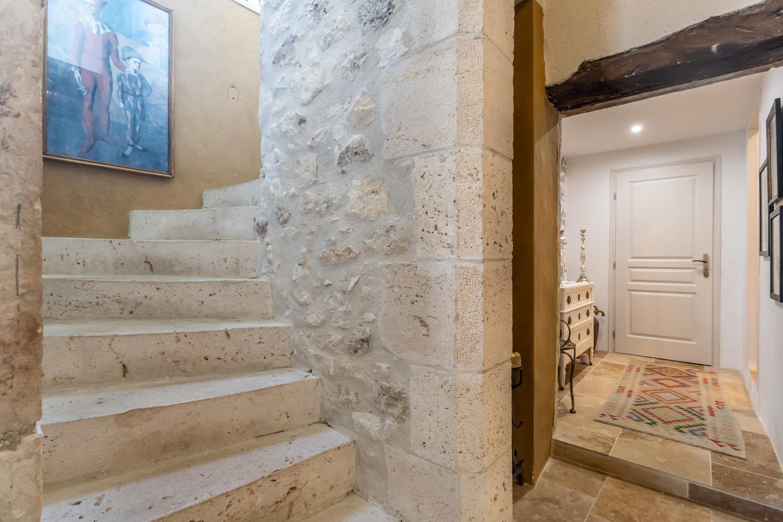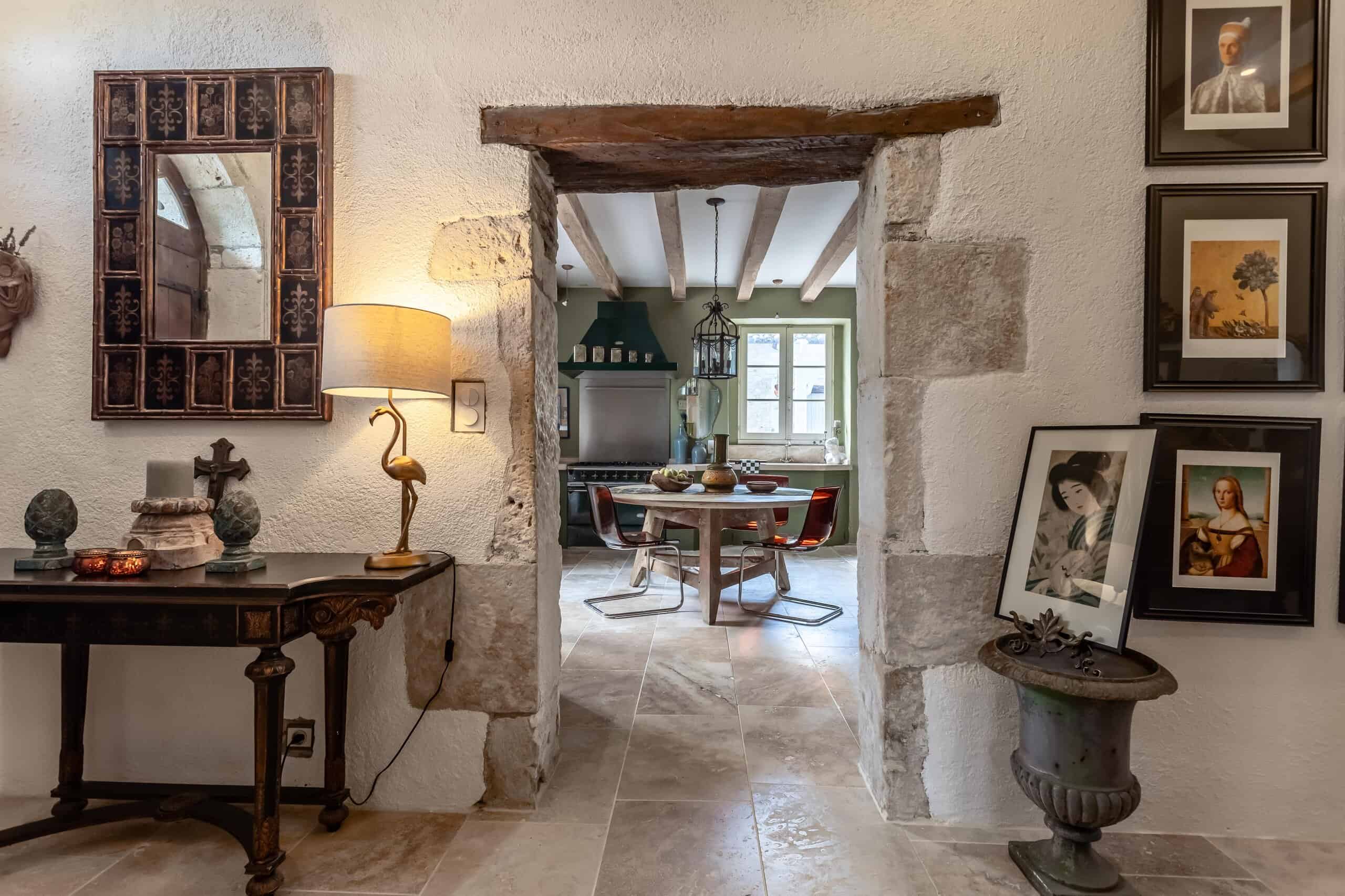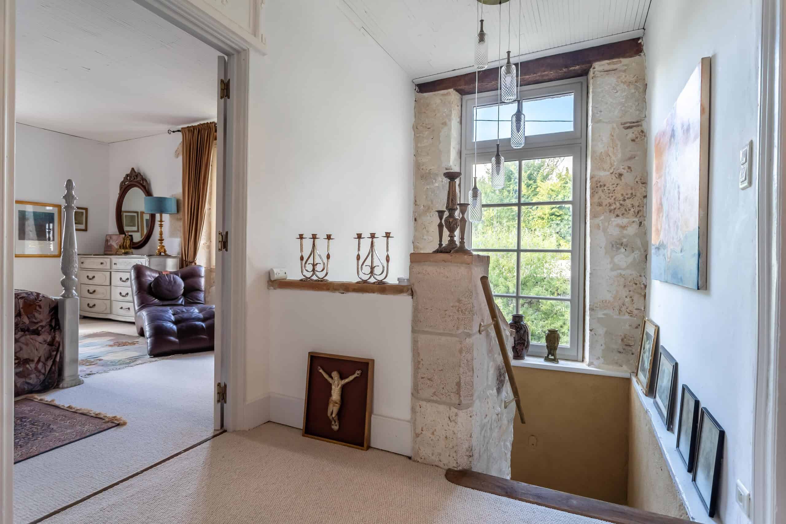 Originally home to the village priest, although I doubt he’d recognise the property now, having been the subject of an enormous renovation project with travertine flooring under foot throughout the ground floor. Stylish handmade kitchen with granite worktops, La Conche gas range cooker and log burning stove to warm you on a winters night, leading into the dining area with glazed door onto the garden. Cosy sitting room with exposed stone walls and beamed ceiling, grand hallway with a fabulous original front door, drawing you to the stone staircase which leads you up to a light filled landing with glazed doors opening onto the balcony. Four beautifully decorated bedrooms and modern stylish travertine lined bathrooms, all with fabulous views over the surrounding countryside.