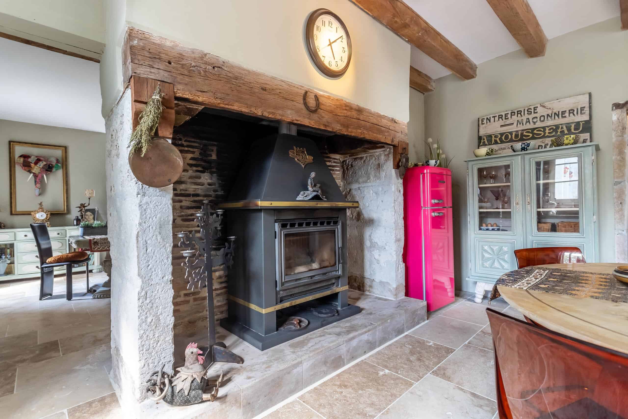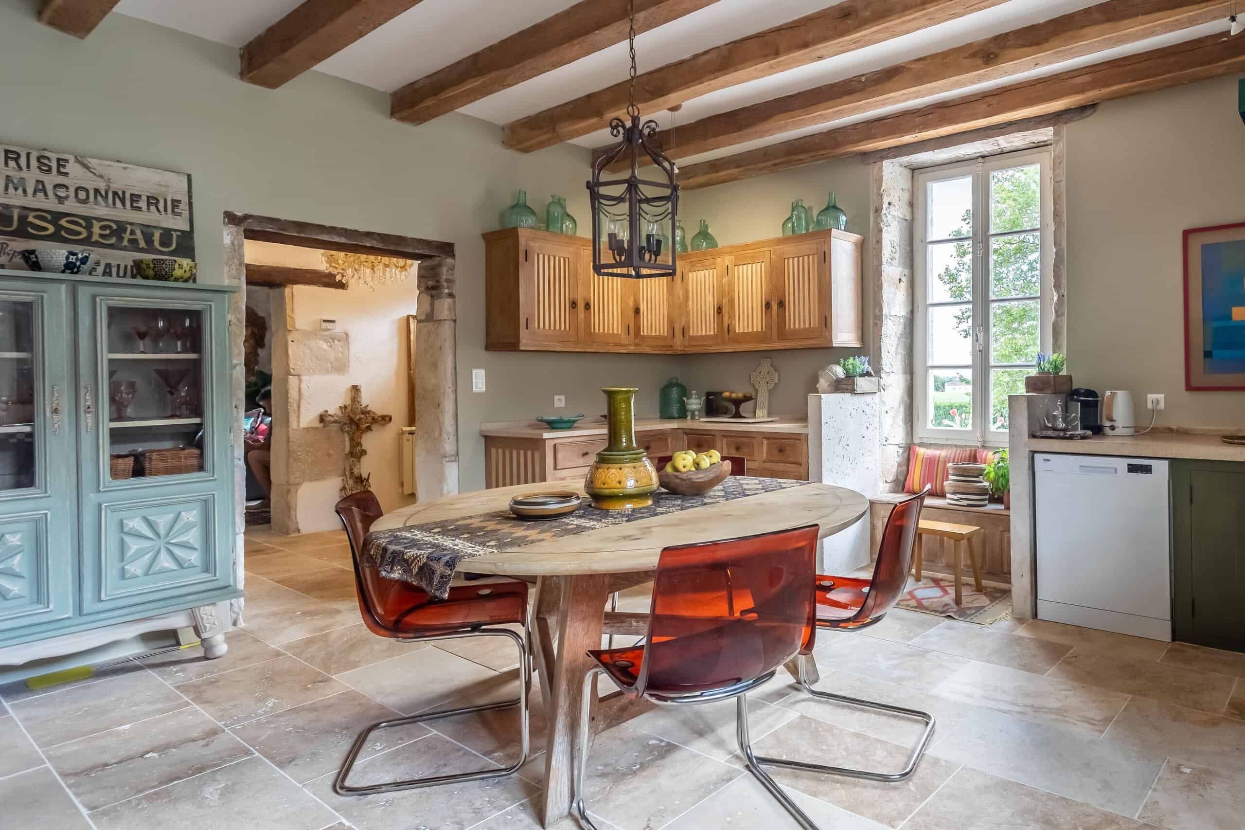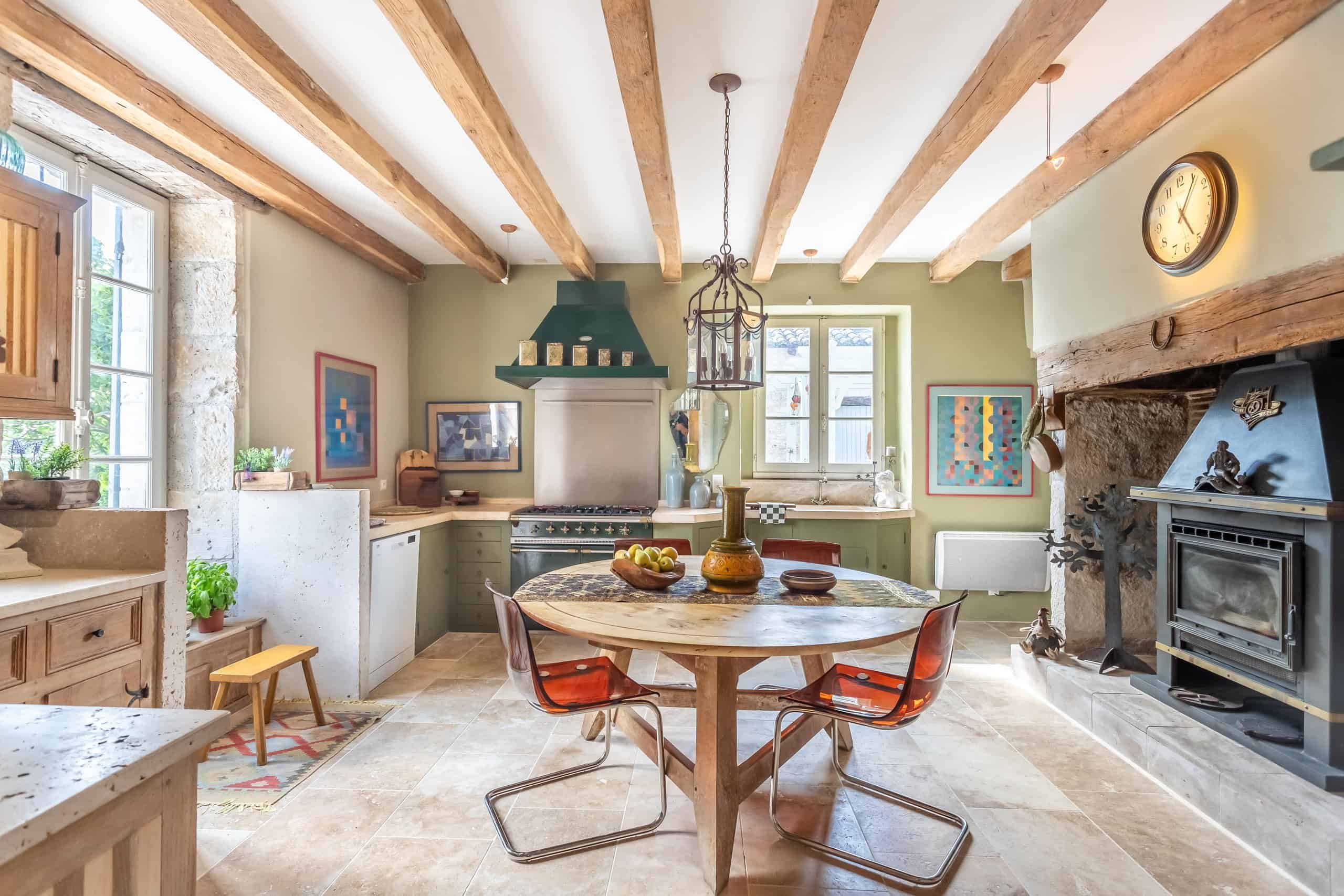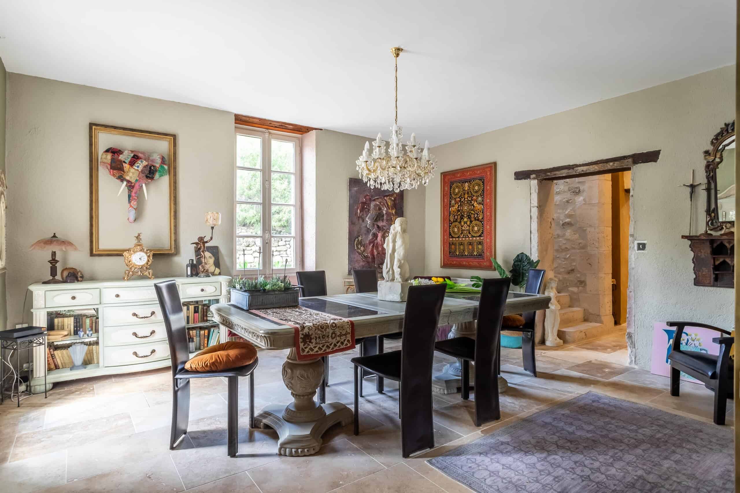 Originally home to the village priest, although I doubt he’d recognise the property now, having been the subject of an enormous renovation project with travertine flooring under foot throughout the ground floor. Stylish handmade kitchen with granite worktops, La Conche gas range cooker and log burning stove to warm you on a winters night, leading into the dining area with glazed door onto the garden. Cosy sitting room with exposed stone walls and beamed ceiling, grand hallway with a fabulous original front door, drawing you to the stone staircase which leads you up to a light filled landing with glazed doors opening onto the balcony. Four beautifully decorated bedrooms and modern stylish travertine lined bathrooms, all with fabulous views over the surrounding countryside.