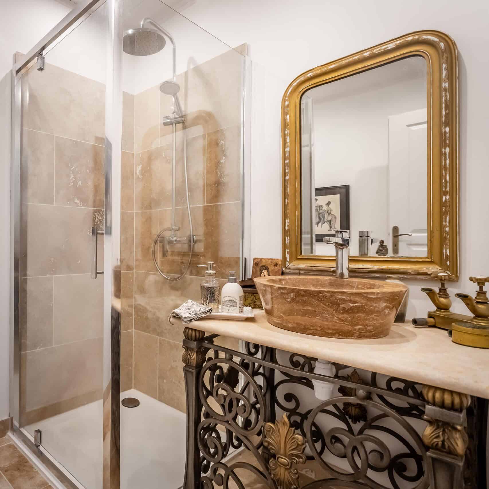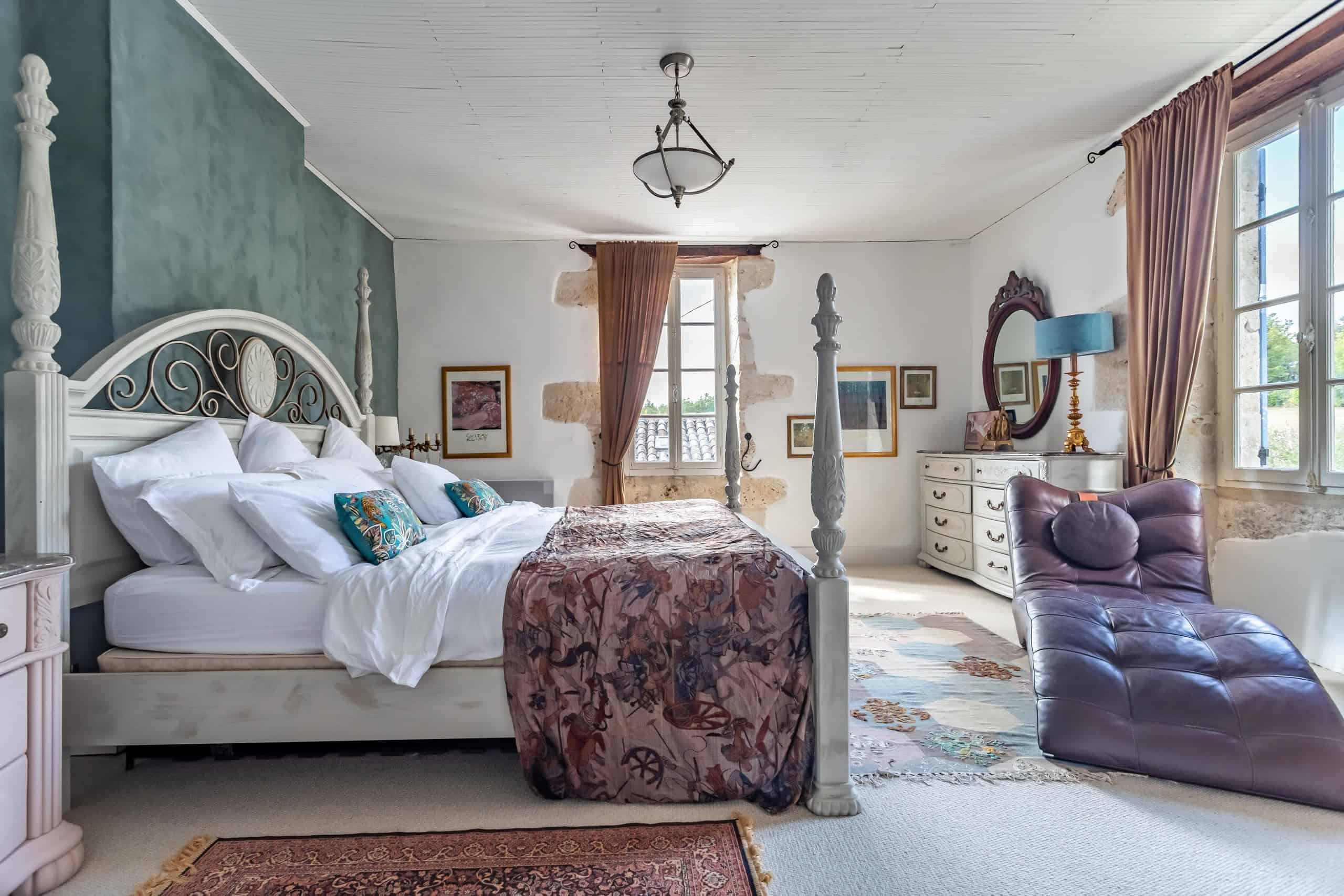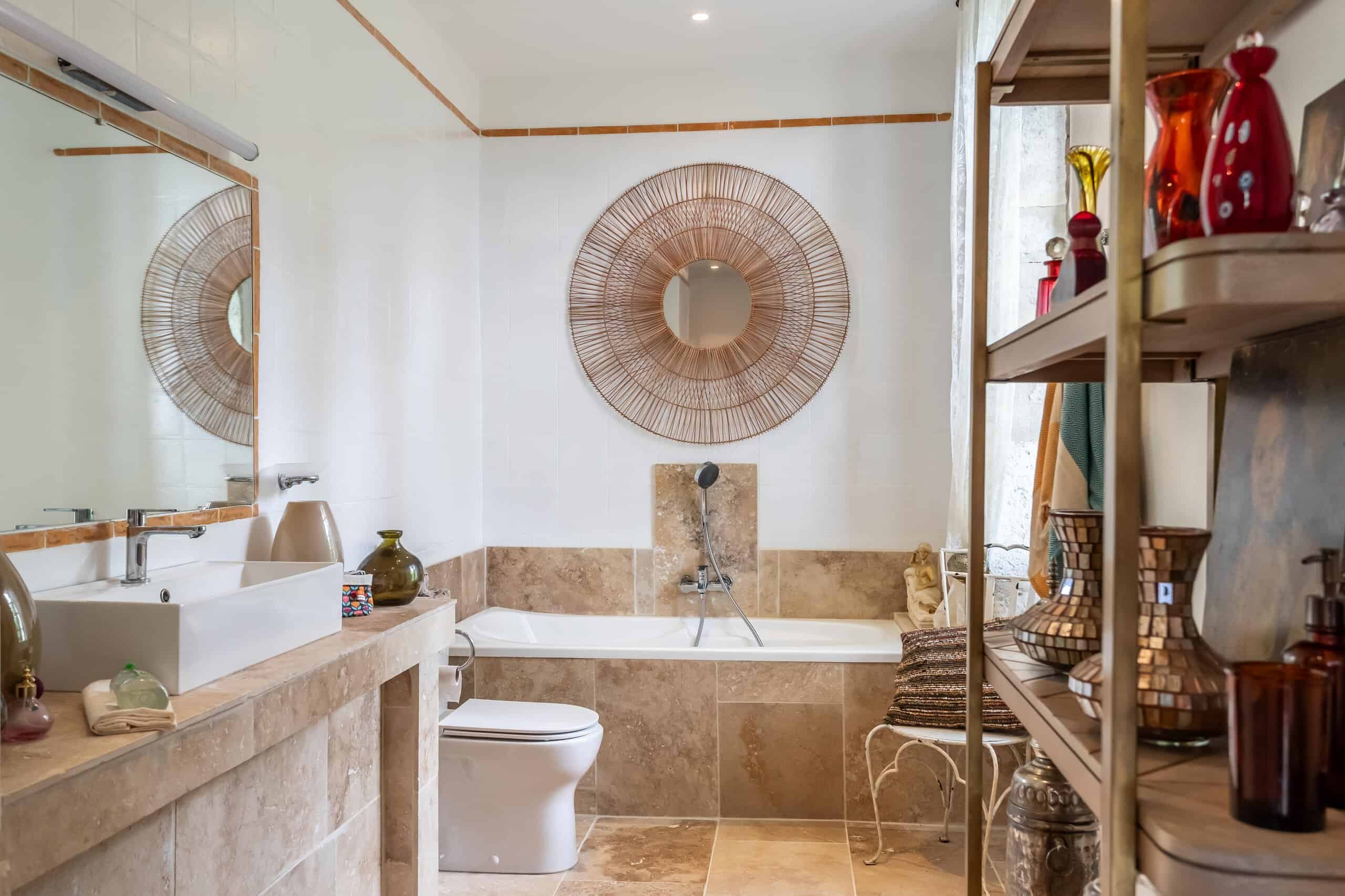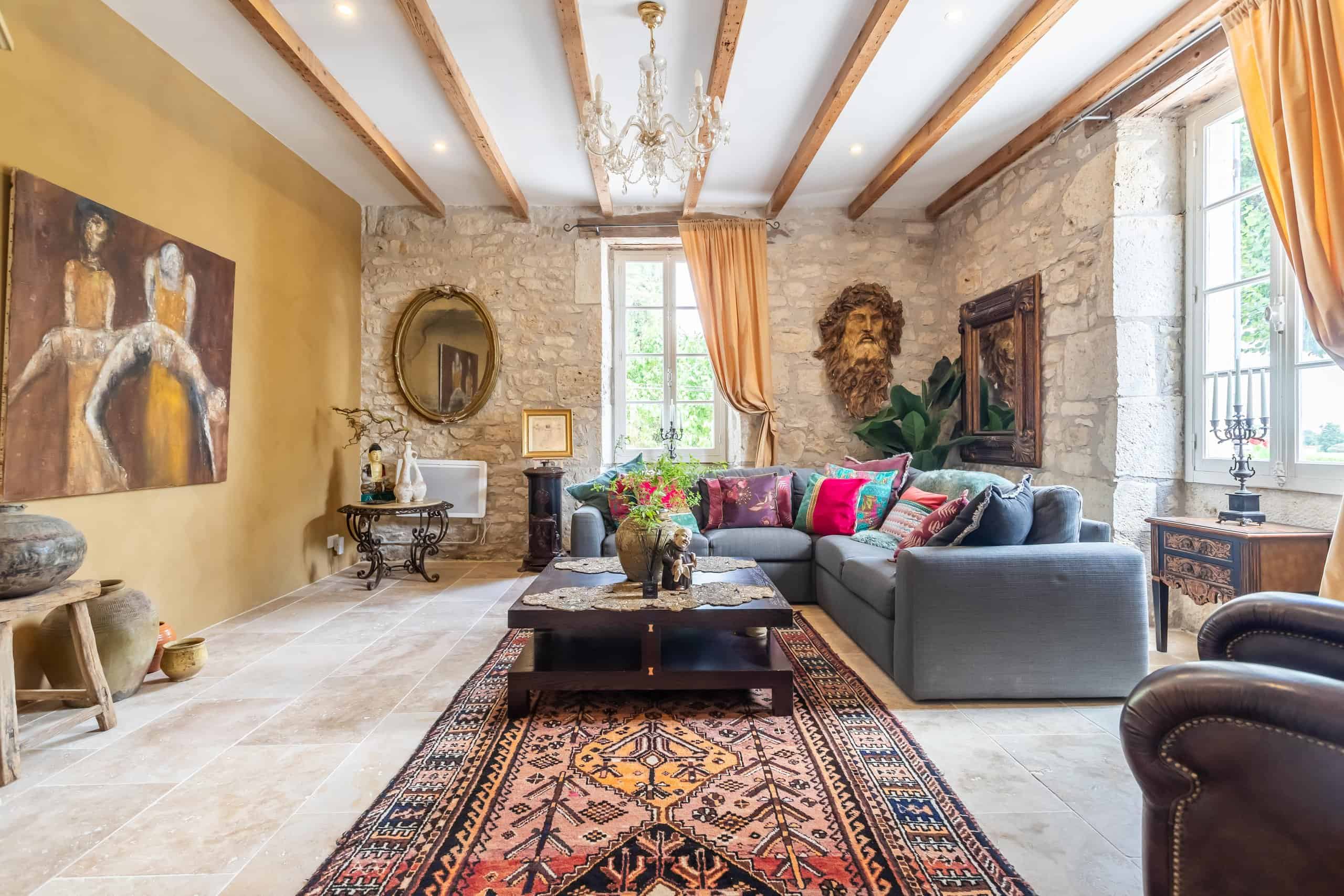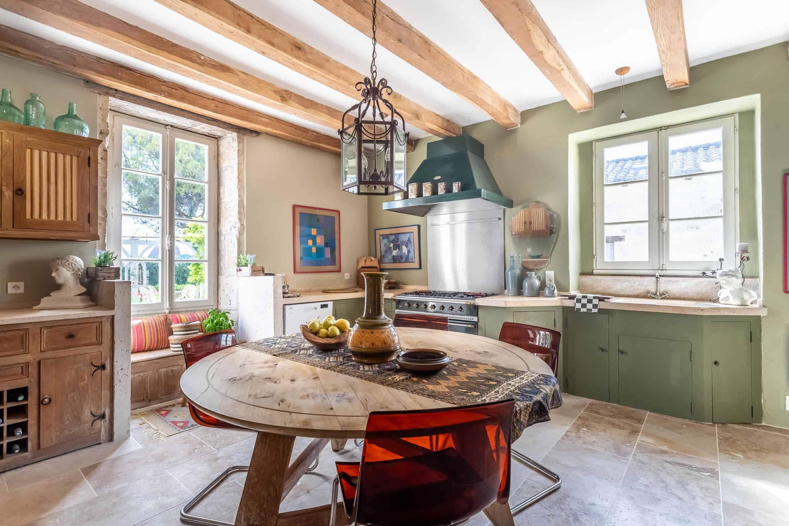 Originally home to the village priest, although I doubt he’d recognise the property now, having been the subject of an enormous renovation project with travertine flooring under foot throughout the ground floor. Stylish handmade kitchen with granite worktops, La Conche gas range cooker and log burning stove to warm you on a winters night, leading into the dining area with glazed door onto the garden. Cosy sitting room with exposed stone walls and beamed ceiling, grand hallway with a fabulous original front door, drawing you to the stone staircase which leads you up to a light filled landing with glazed doors opening onto the balcony. Four beautifully decorated bedrooms and modern stylish travertine lined bathrooms, all with fabulous views over the surrounding countryside.