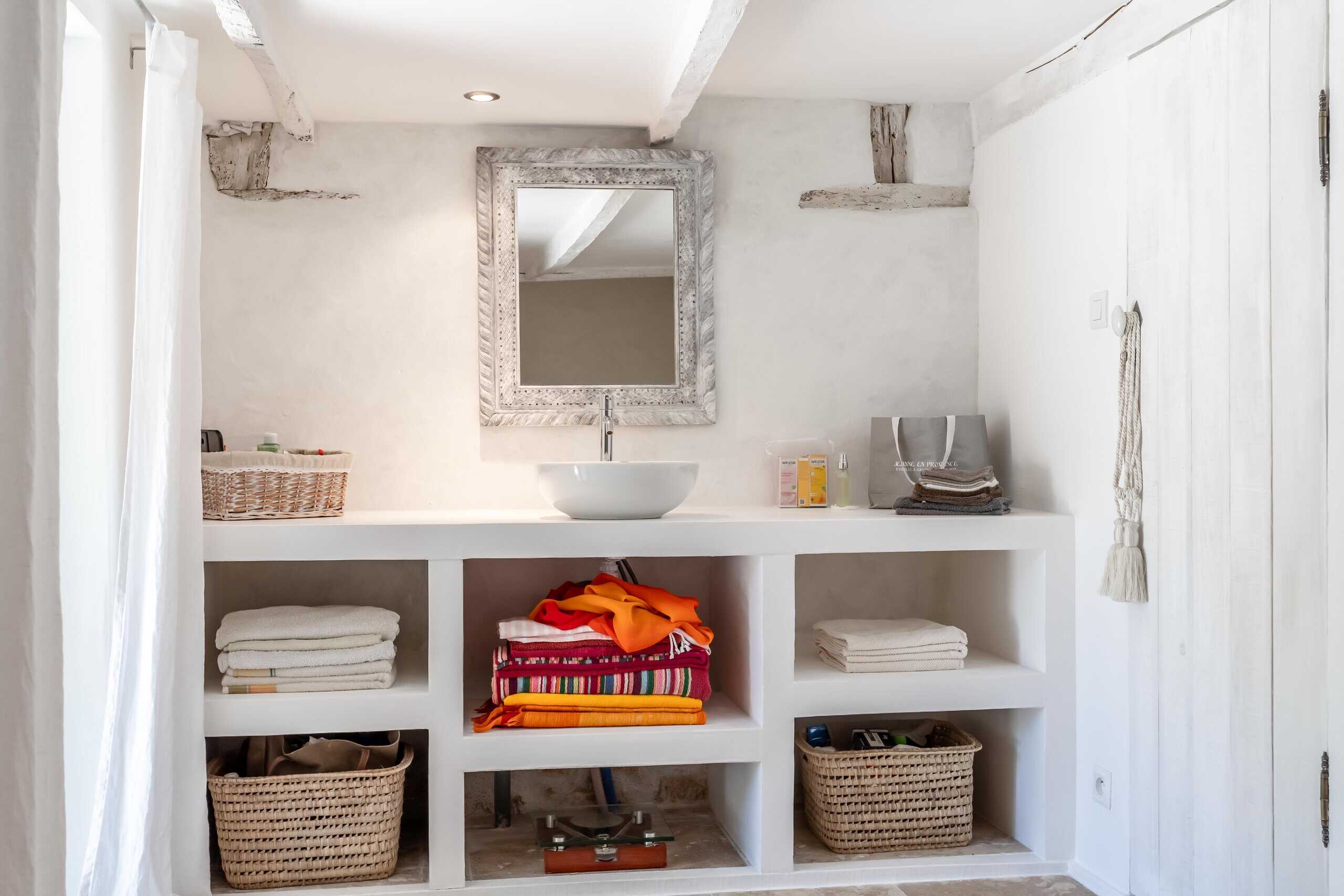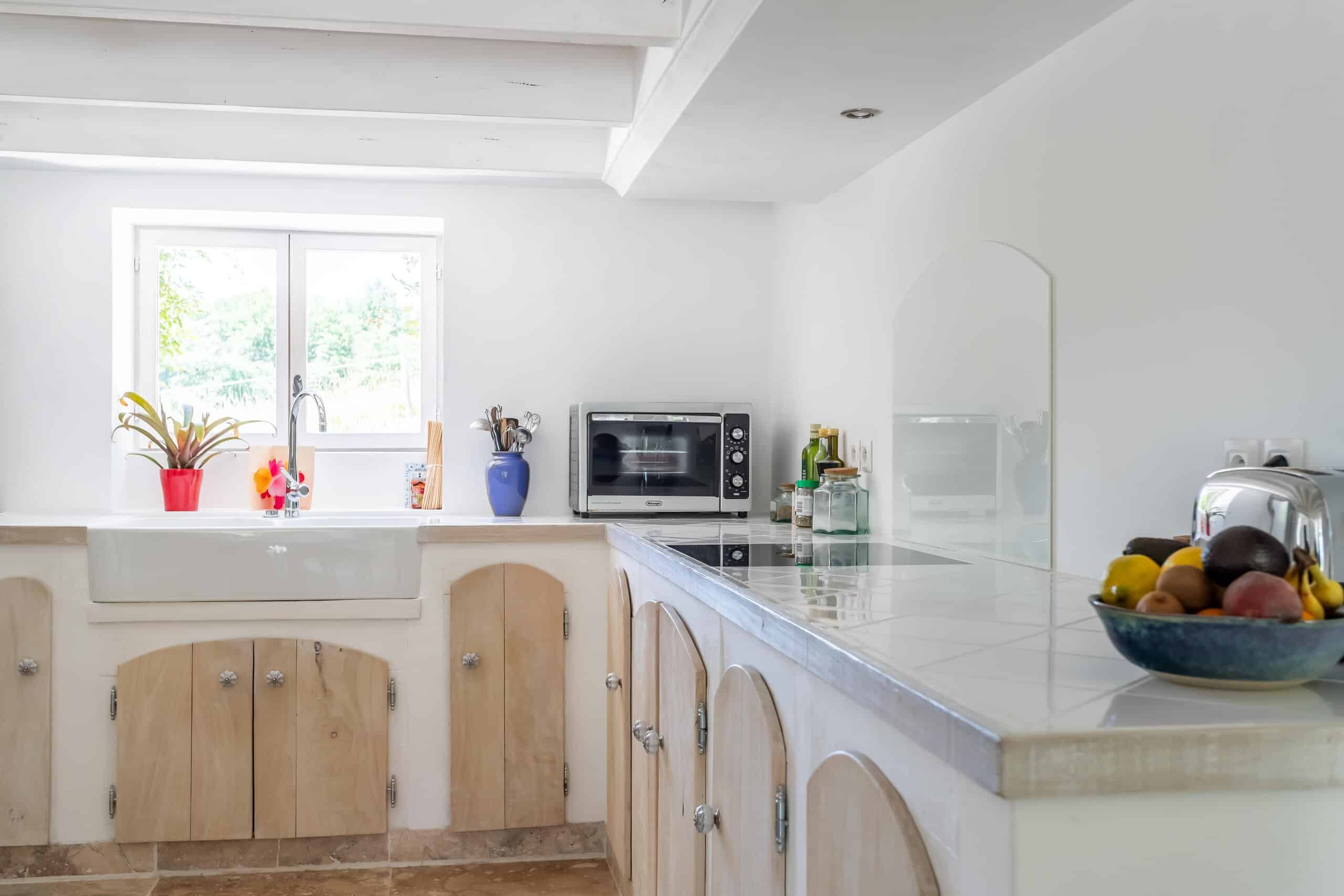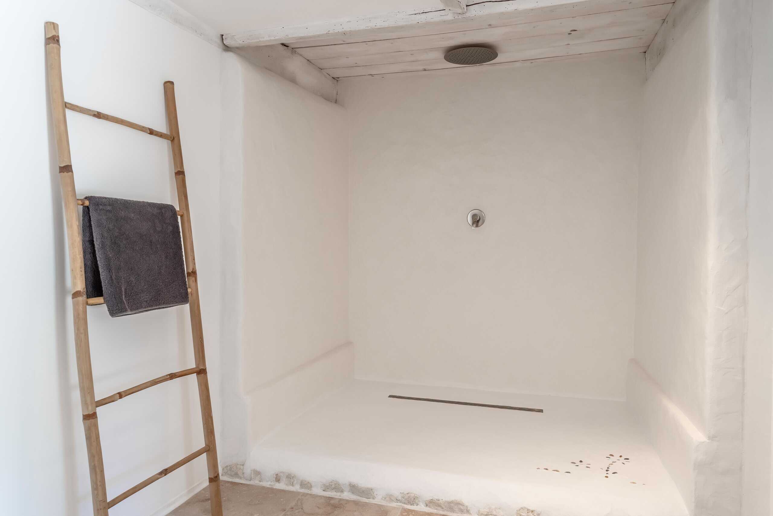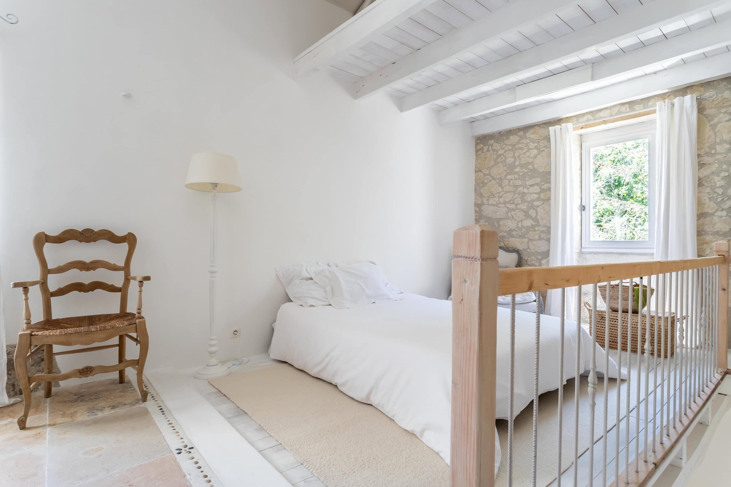 The house has been renovated from top to bottom with great sensitivity to its period features with painted beams overhead and travertine flooring underfoot, using textured plaster wall finishes with muted colours to compliment the whole effect.