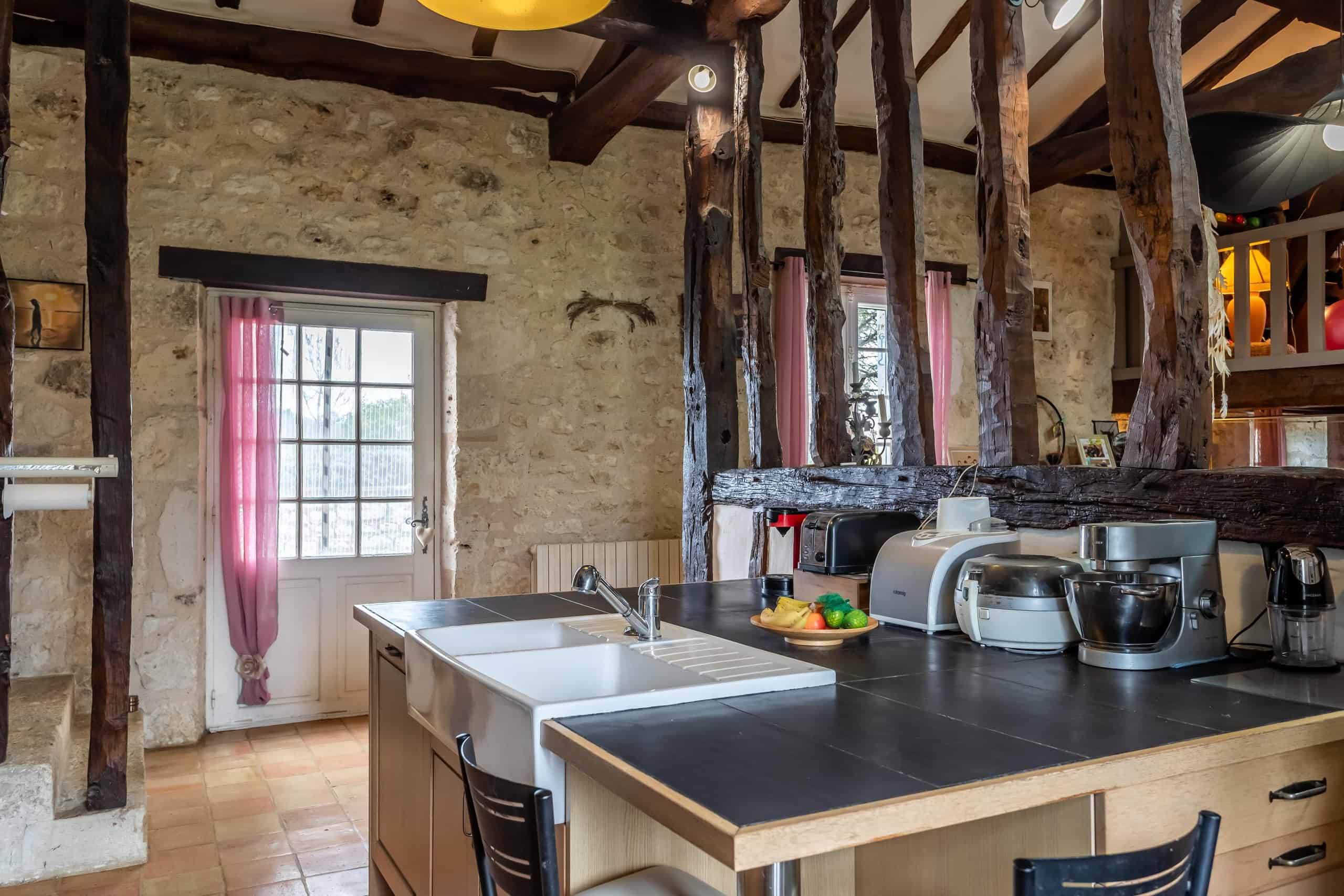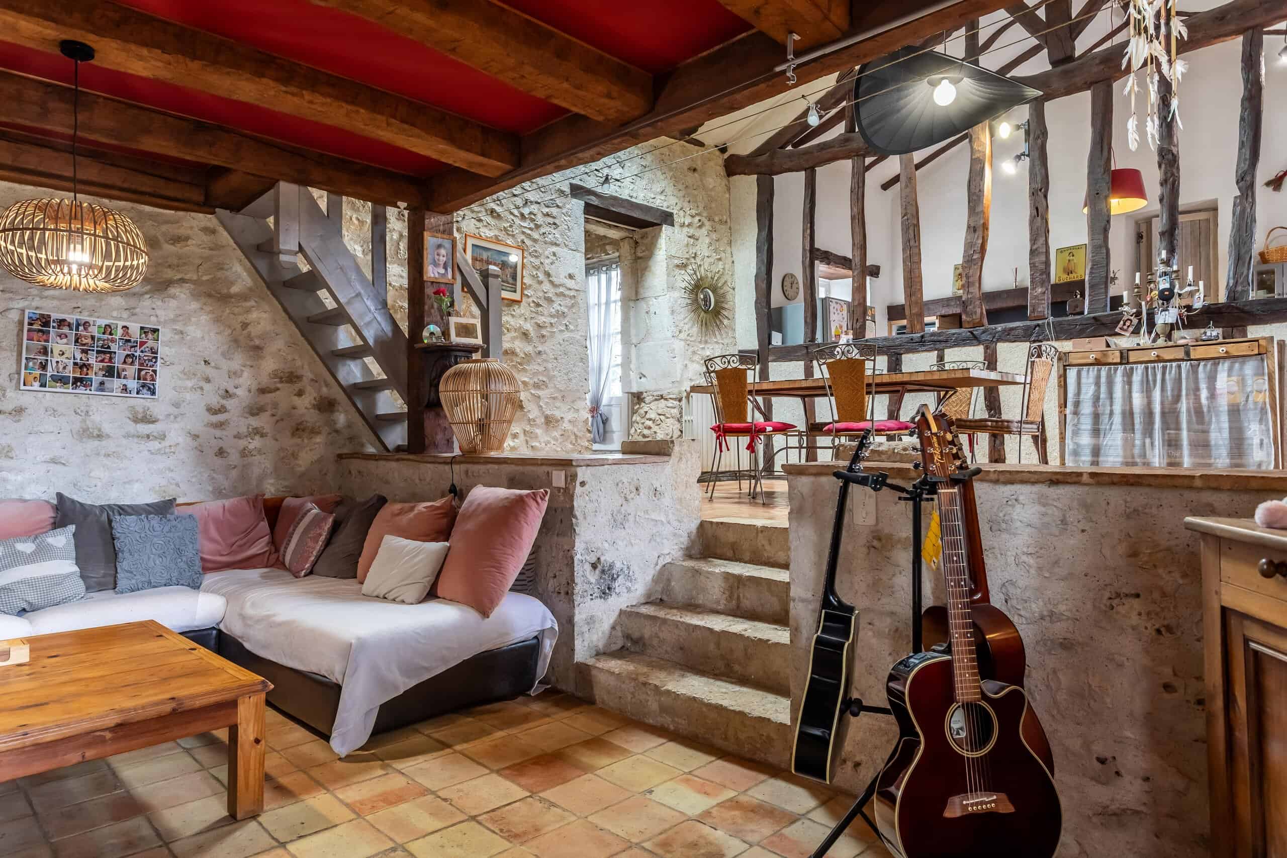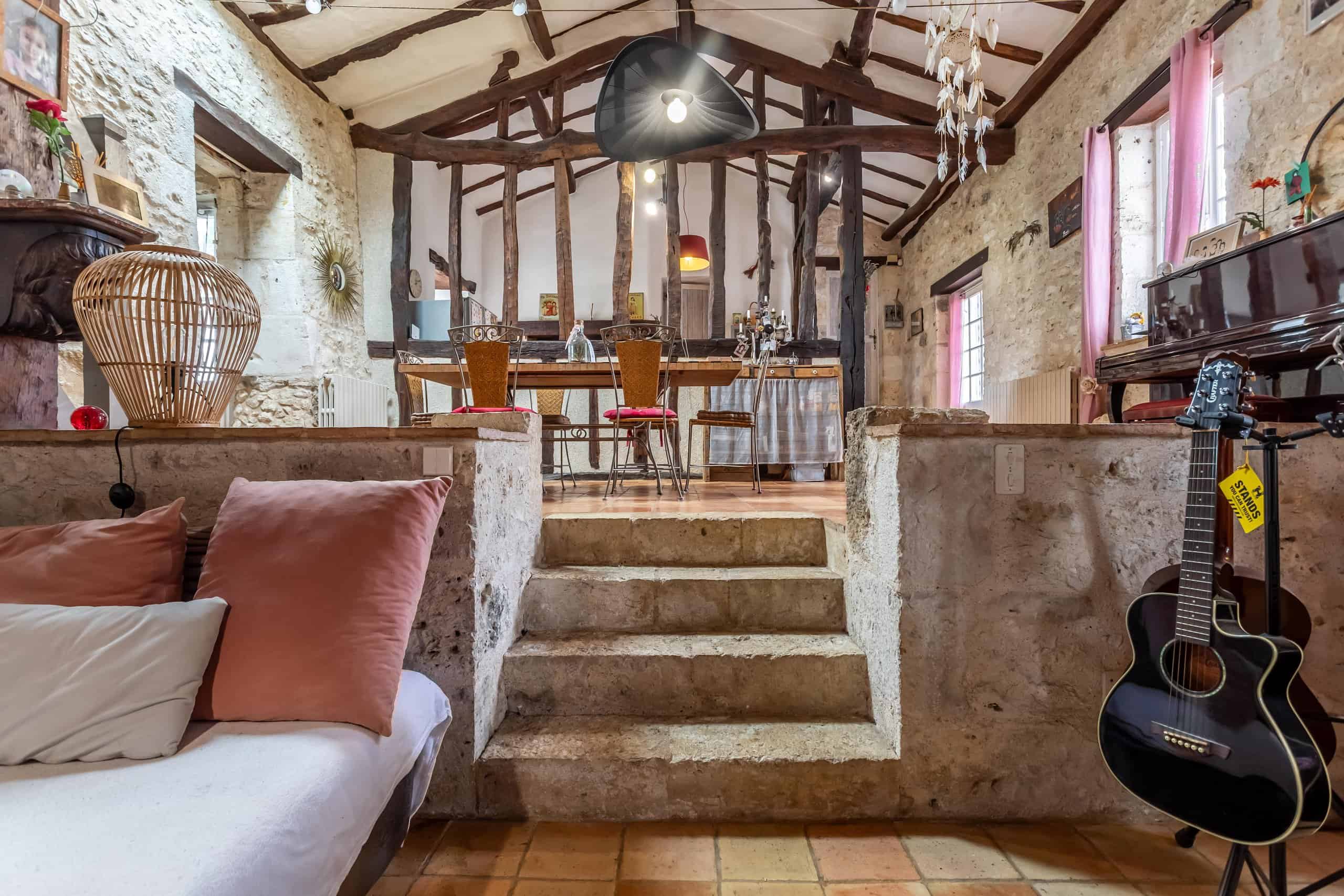 Inside, character reigns supreme. Full-height beamed ceilings, exposed stone walls and some of the finest antique terracotta tiles imaginable run throughout the house, complemented by ancient stone steps that add depth and authenticity.