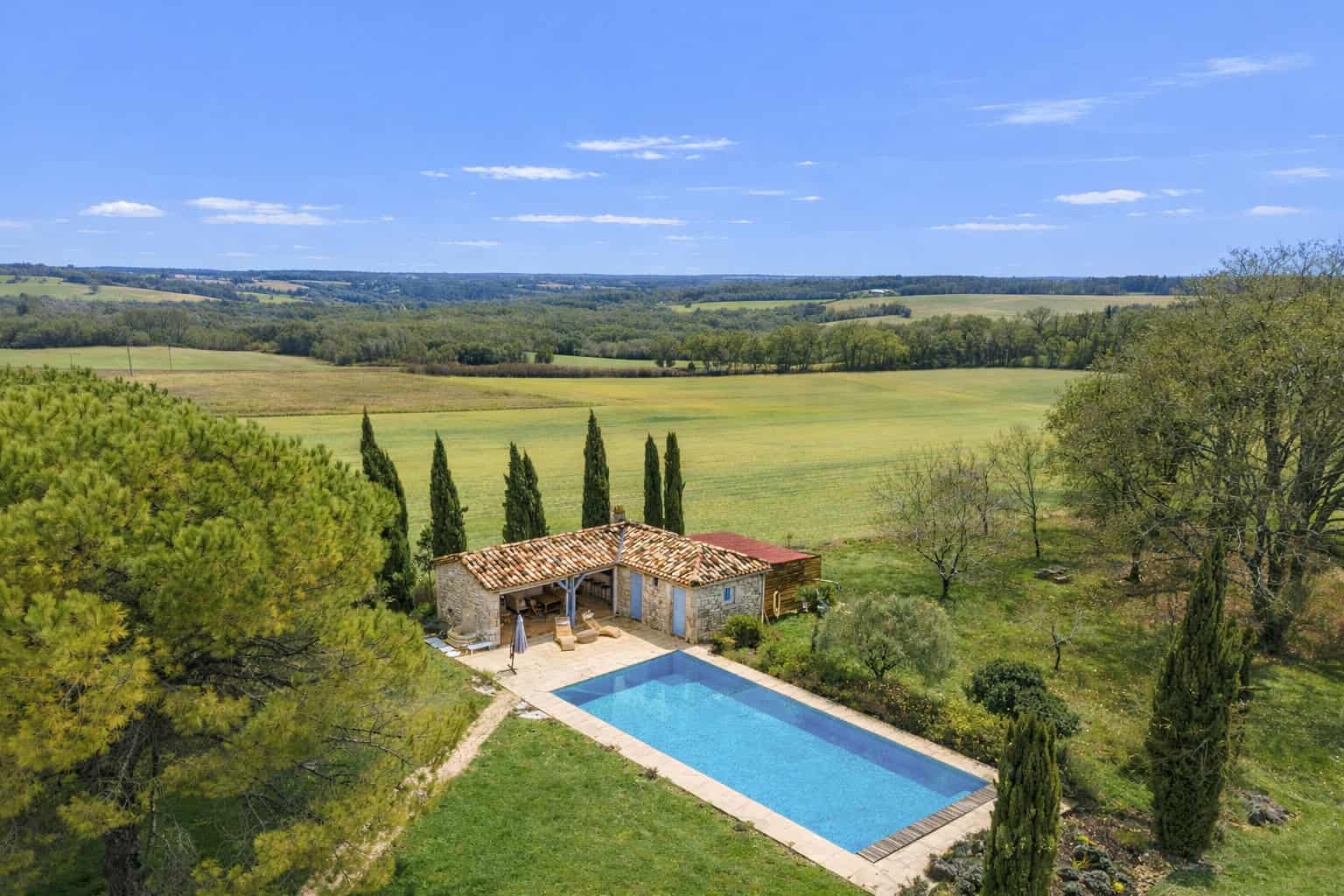 Set in the most idyllic of settings, with far-reaching views across rolling countryside and not a neighbour in sight to critique your rosé consumption, the property has been restored with exceptional taste and style. It is presented in immaculate condition — quite literally, unpack your suitcases and open a bottle.
