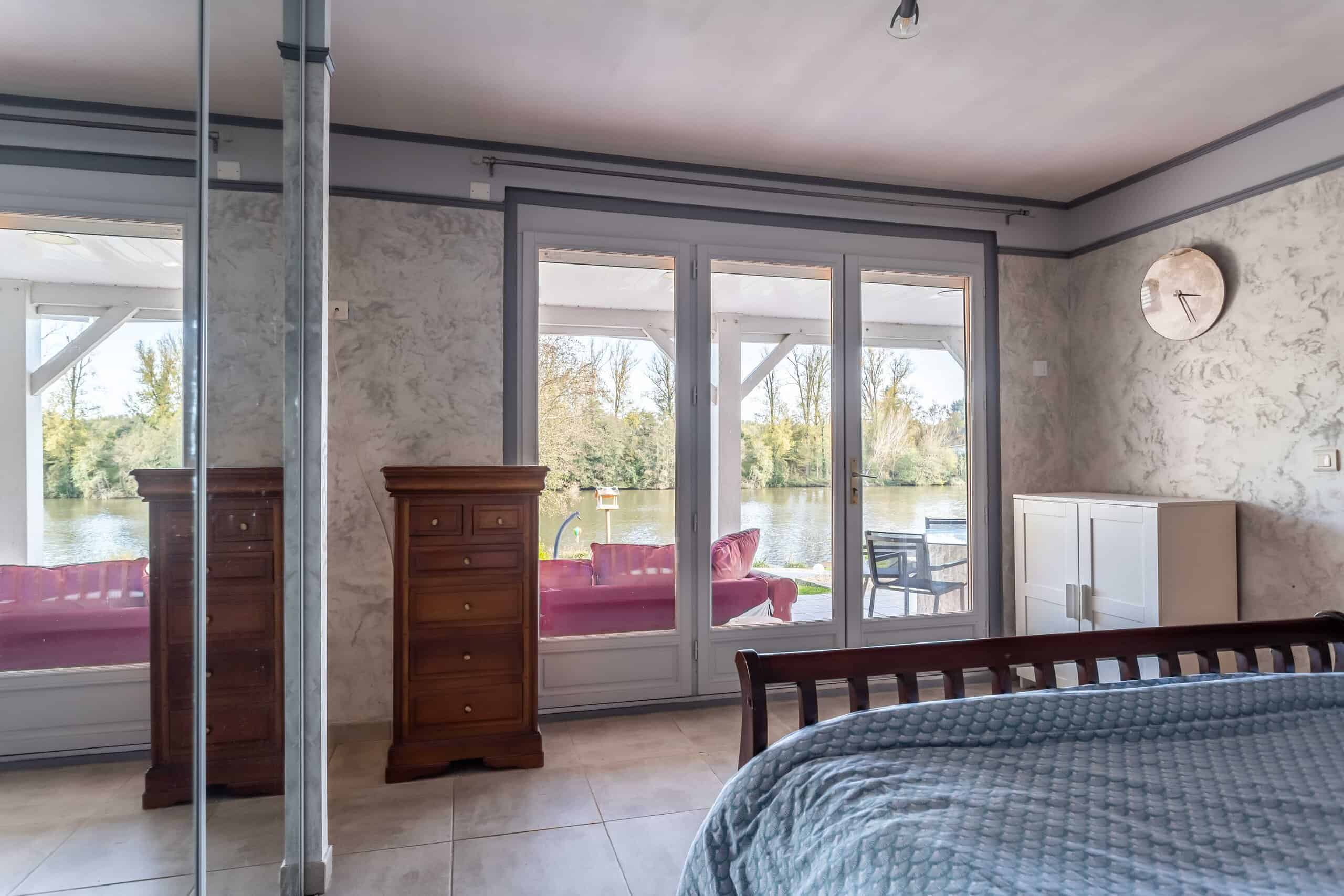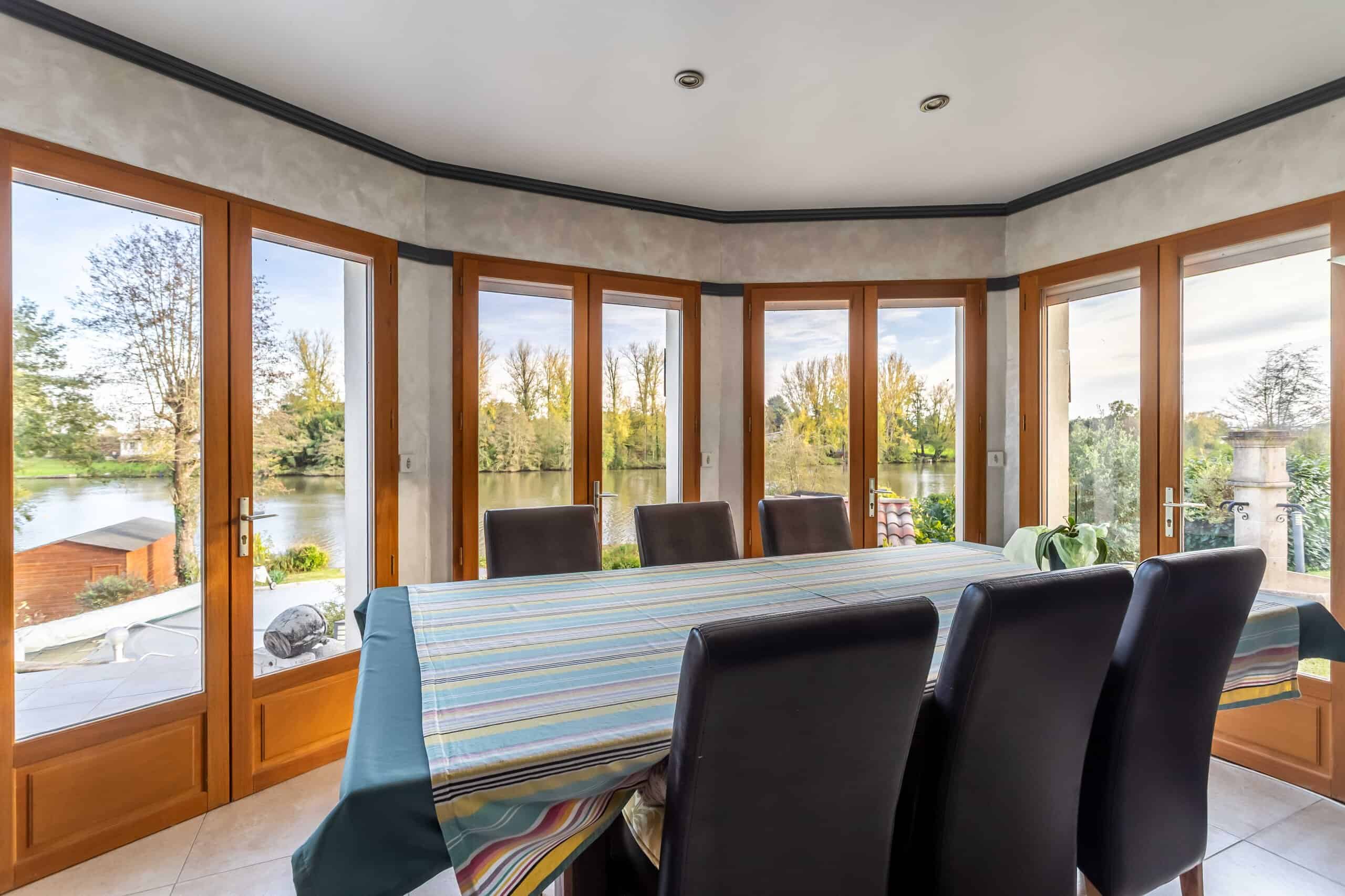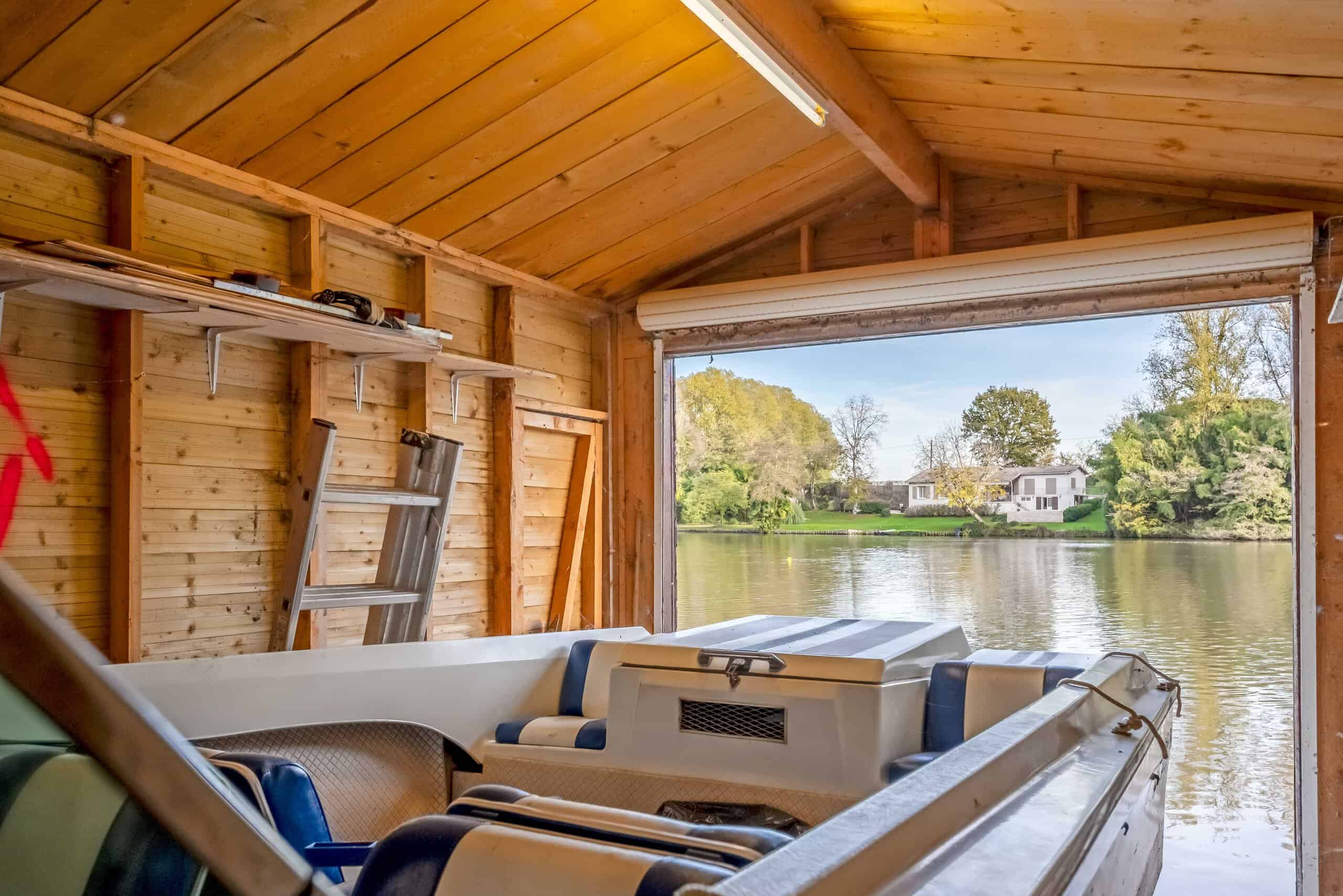 Outside, the appeal continues: a substantial carport, a granite-paved driveway, various outbuildings, and of course the essential swimming pool with sun terrace for long summer days. Closer to the water, the dream becomes reality—a large boathouse, jetty for sunset apéros, mooring, and steps leading straight into the river, creating the perfect setting for both passionate anglers and natural-swimming enthusiasts.