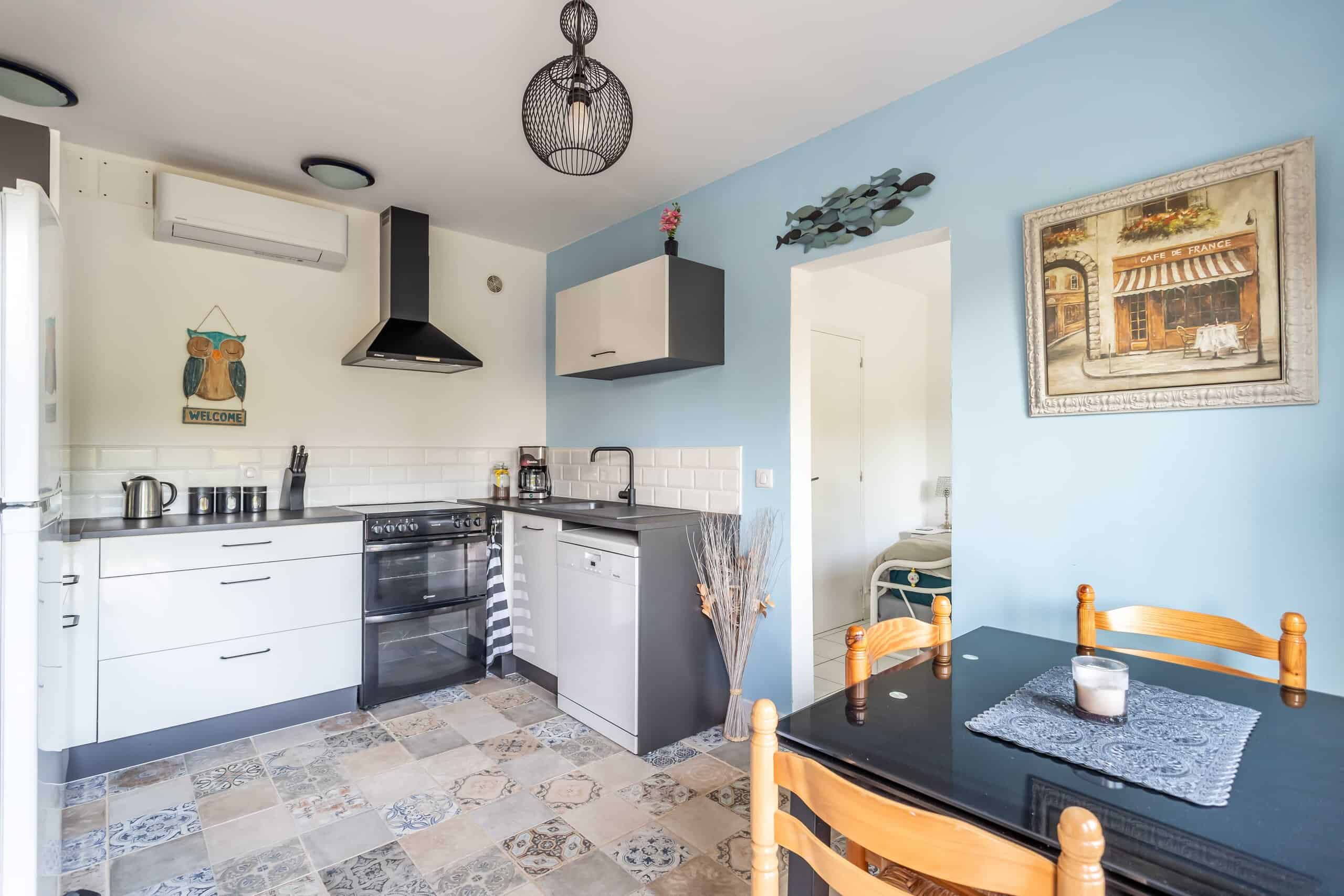 Discreetly tucked behind handsome stone gateposts with electric gates, the property sits within just under a third of a hectare of beautifully established gardens, offering complete peace and privacy. The main house welcomes you with a sleek modern kitchen with integrated appliances and glazed doors opening onto the covered terrace; a light-filled sitting room with a wood-burning stove and multiple French doors leading out to the garden and those glorious river views; and a cosy riverside bedroom with a travertine-lined bathroom. A heat pump and full double glazing ensure year-round comfort.