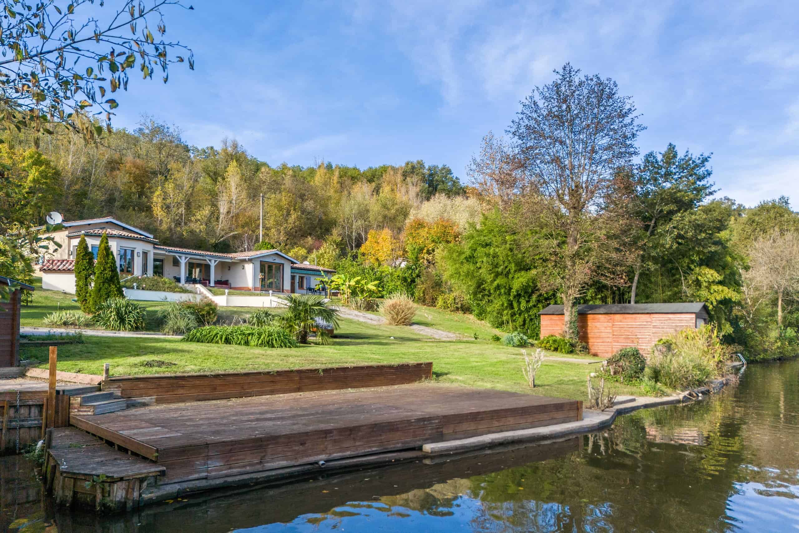 Set along the shimmering banks of the River Lot, this stylish contemporary single-storey home offers a lifestyle most only dream of: sweeping river views, direct access for wild swimming and early-morning fishing, and even a substantial boathouse with private mooring. Yes—this is real.