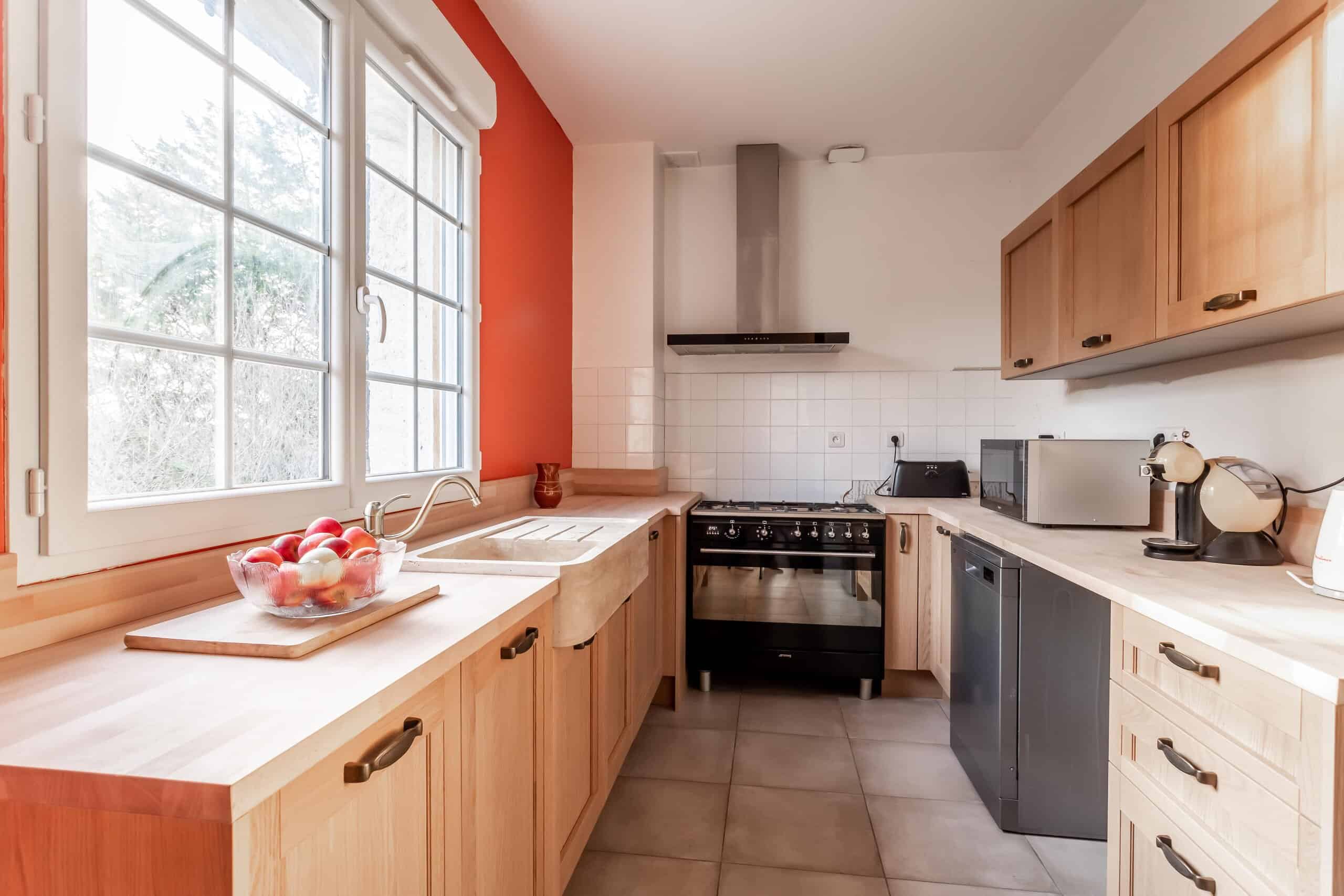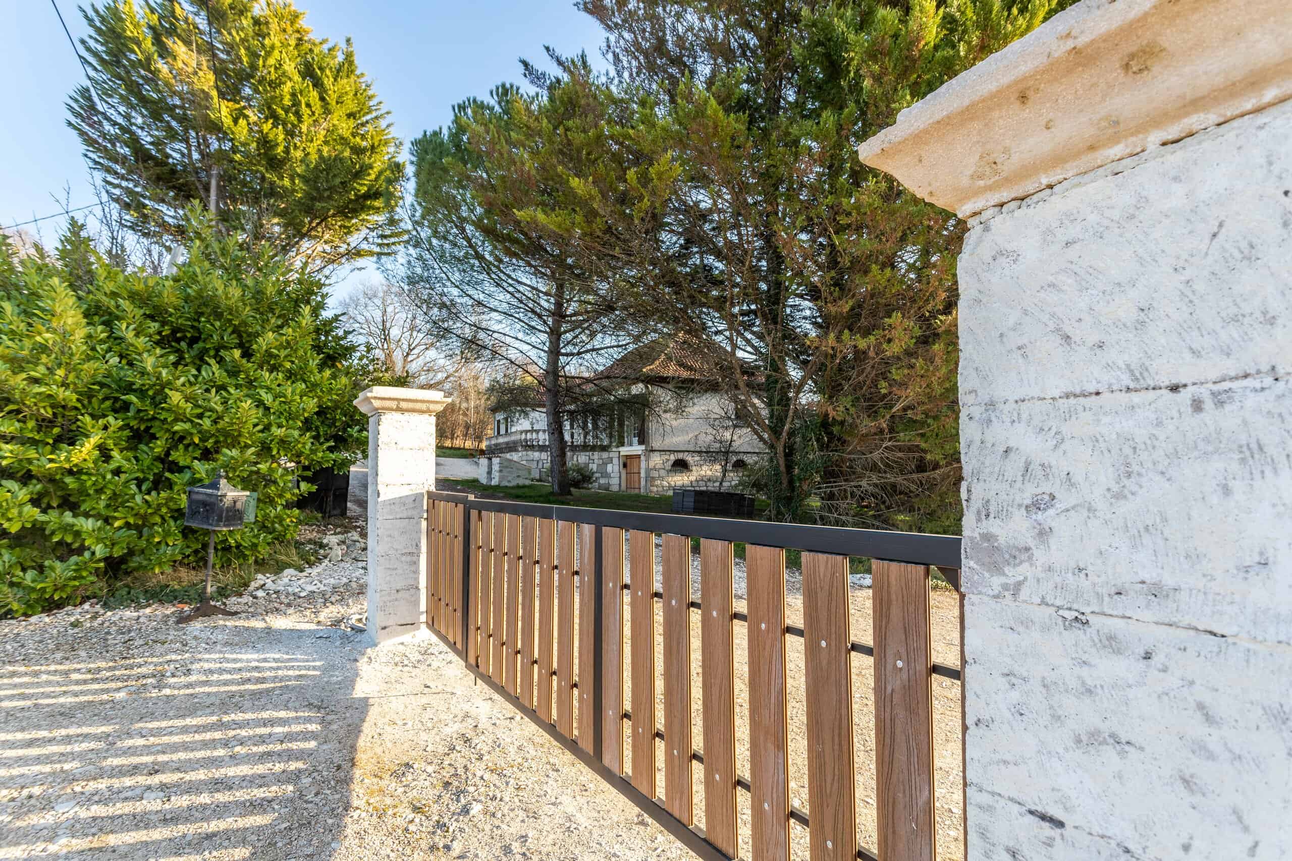 Set behind a gated entrance, the stone-and-brick four-bedroom house is presented in immaculate condition, having been thoughtfully and stylishly renovated. Inside, you’ll find a large open-plan living room with an inset log-burning stove, and a sleek modern kitchen complete with integrated appliances, a stone sink, and a Smeg gas range cooker. Four inviting bedrooms and a chic contemporary bathroom complete the accommodation, all benefiting from double glazing and pompe à chaleur heating for comfort throughout the seasons. A vast basement garage and workshop/store offers excellent practical space.