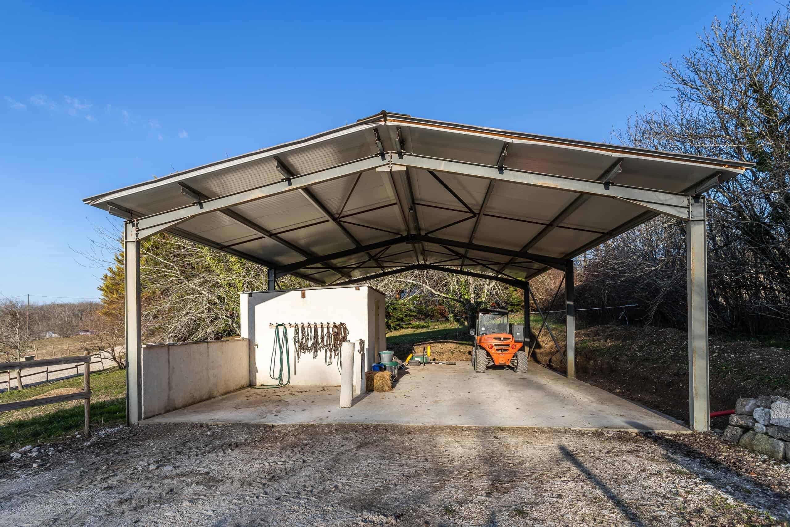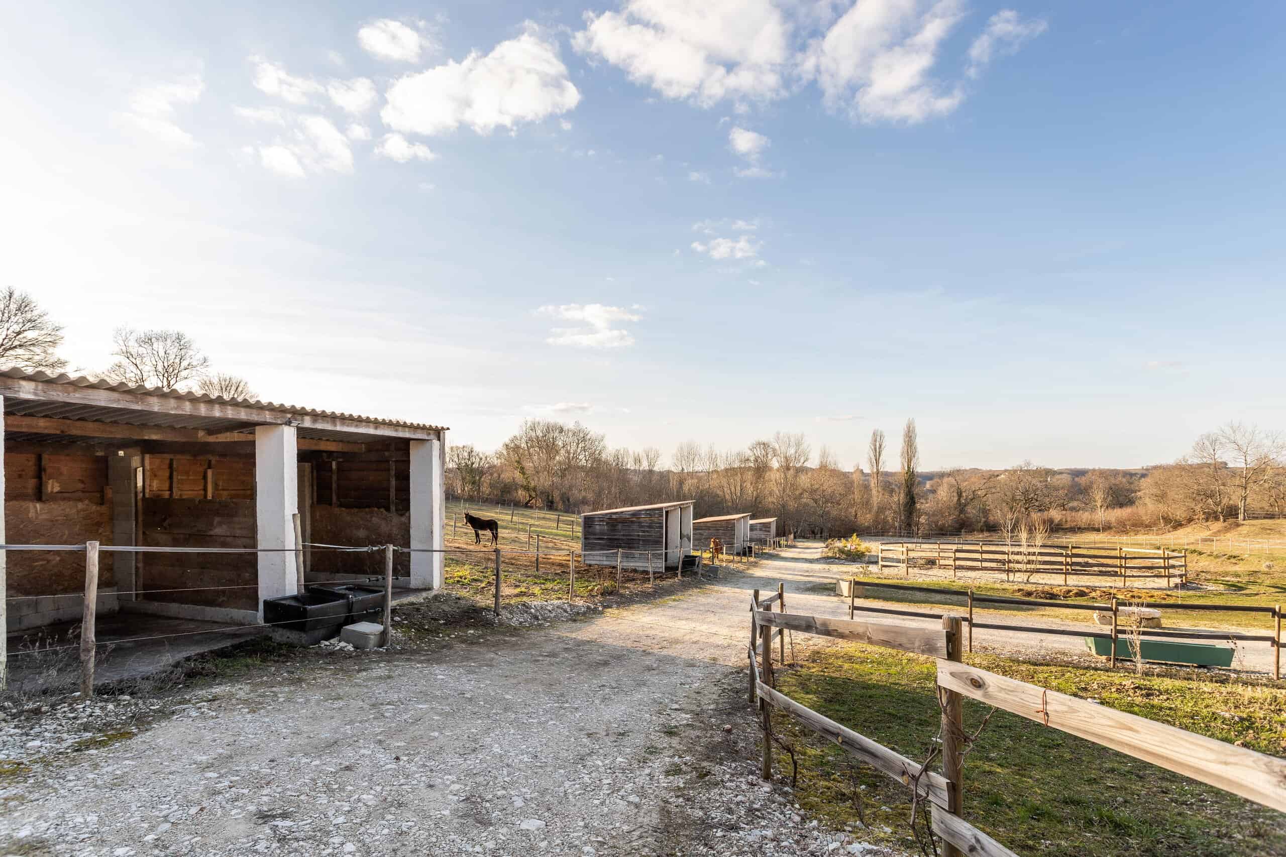 Tucked into the rolling green valleys of the Lot-et-Garonne—surely one of the most beautiful corners of South-West France—this elegant country retreat makes itself very much at home within 18 hectares of lush paddocks and tranquil woodland. A haven for equestrians and countryside dreamers alike, the property boasts extensive equestrian facilities, including stabling for eight horses, a sand arena, numerous outbuildings and open hangars, a tack room, and its own water source—offering superb potential for a smallholding or stud farm.