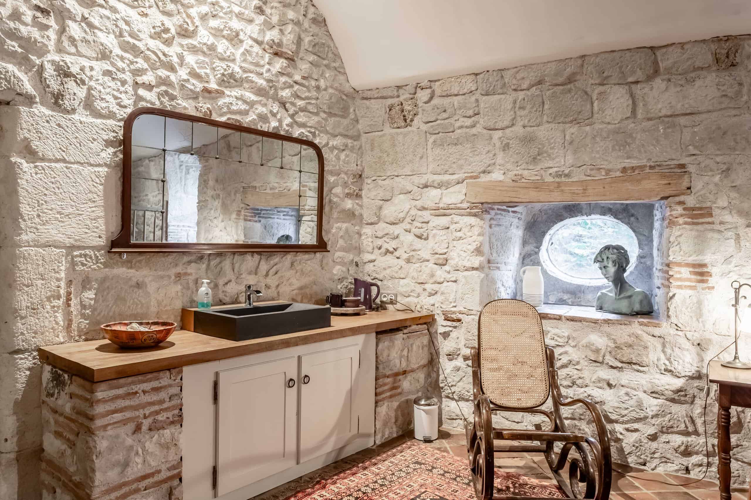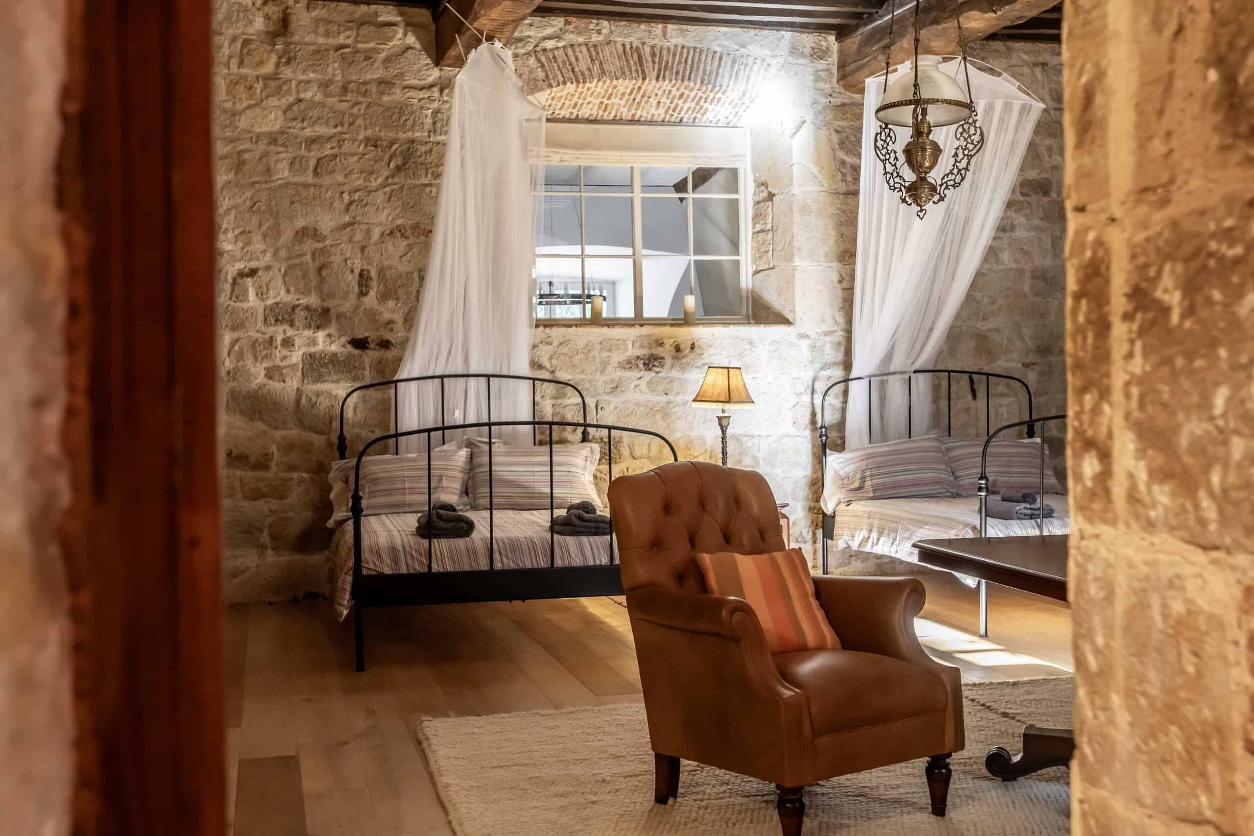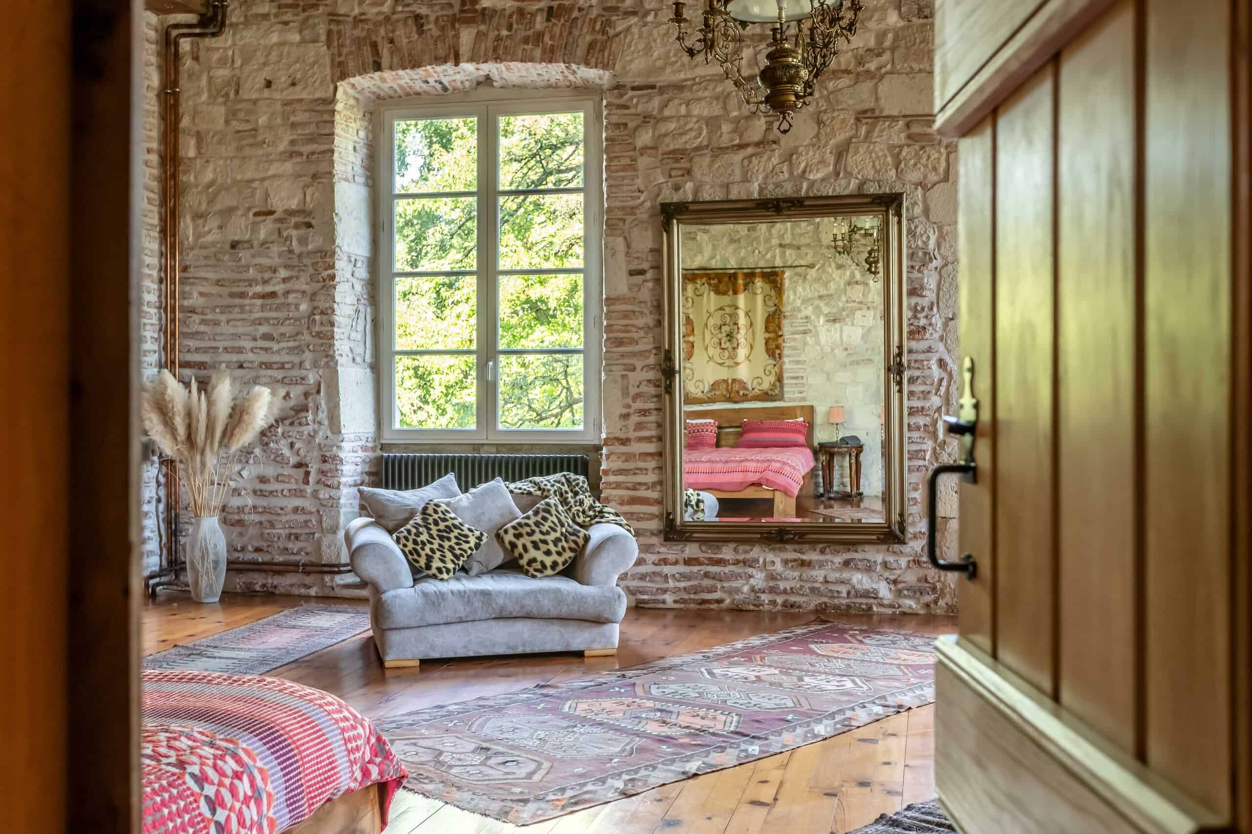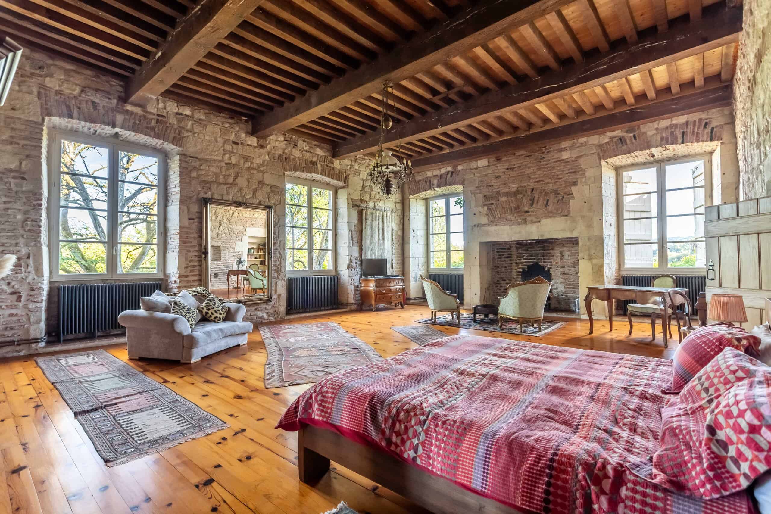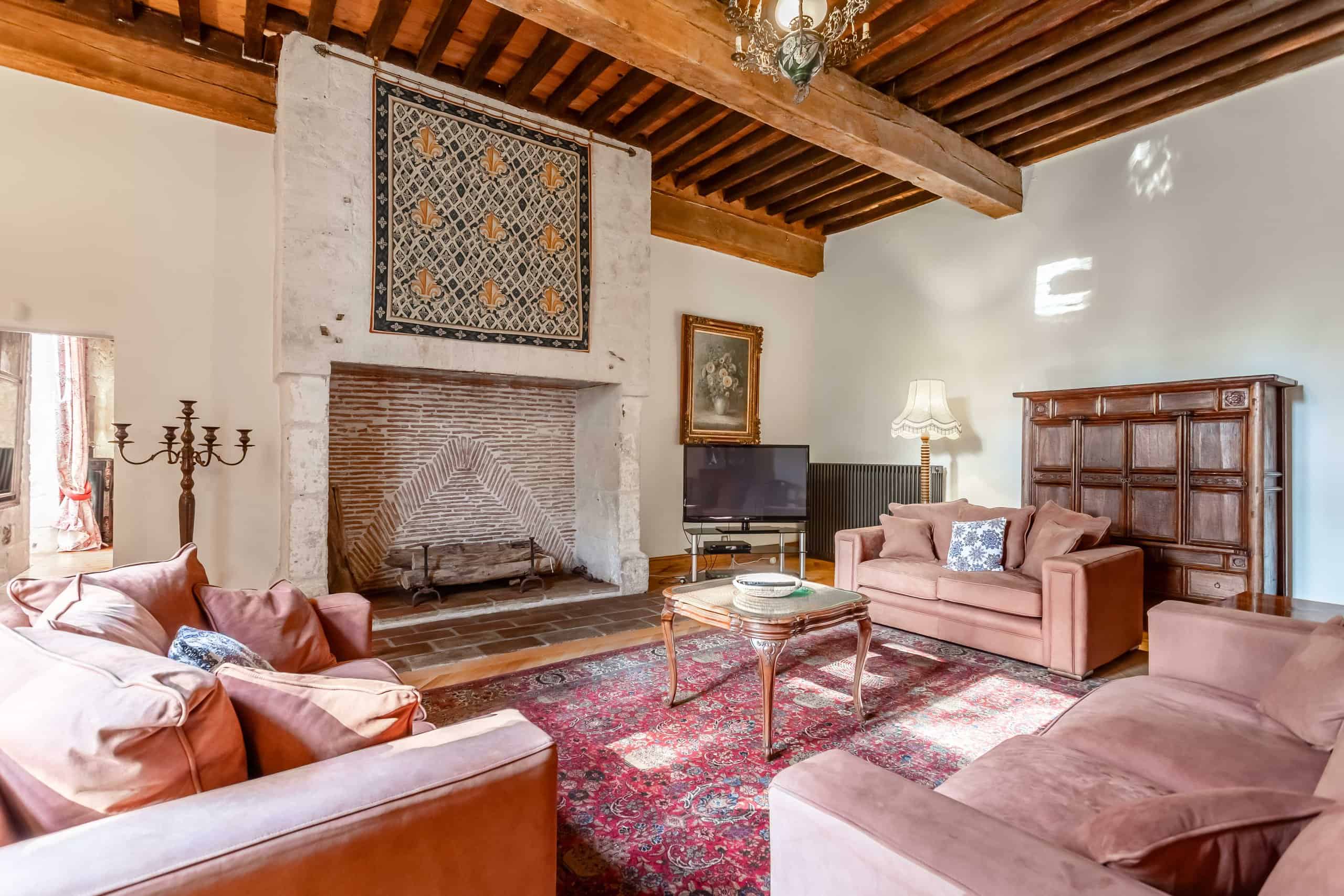 Inside, you’ll find stone spiral staircases, vast beamed ceilings, ancient terracotta floors, vaulted rooms, painted frescos, and magnificent chimneys — in short, every feature you’d hope for in a French château, all beautifully maintained. This is most definitely not the usual faded pile waiting for rescue; this one has already been given the five-star treatment.