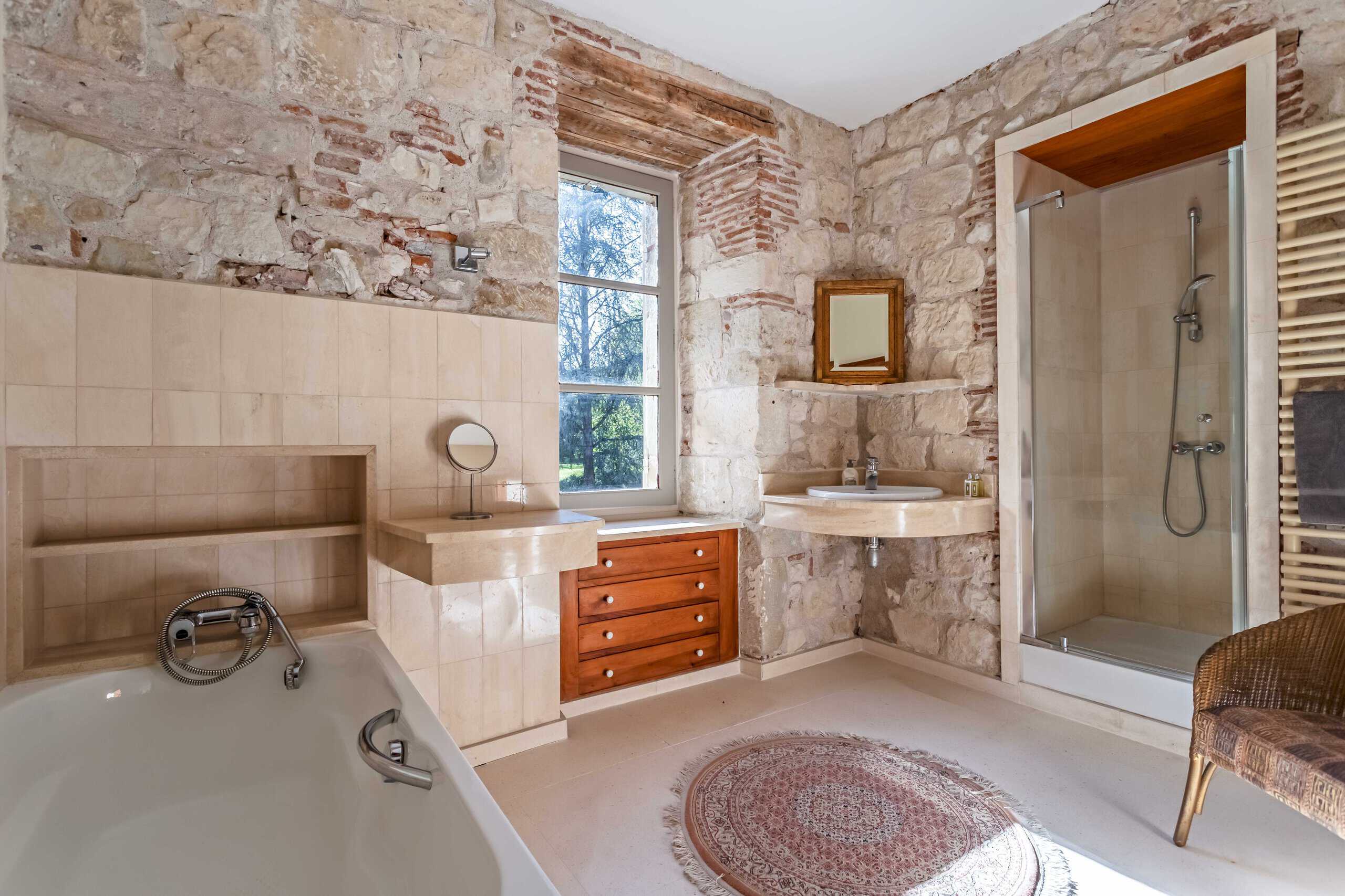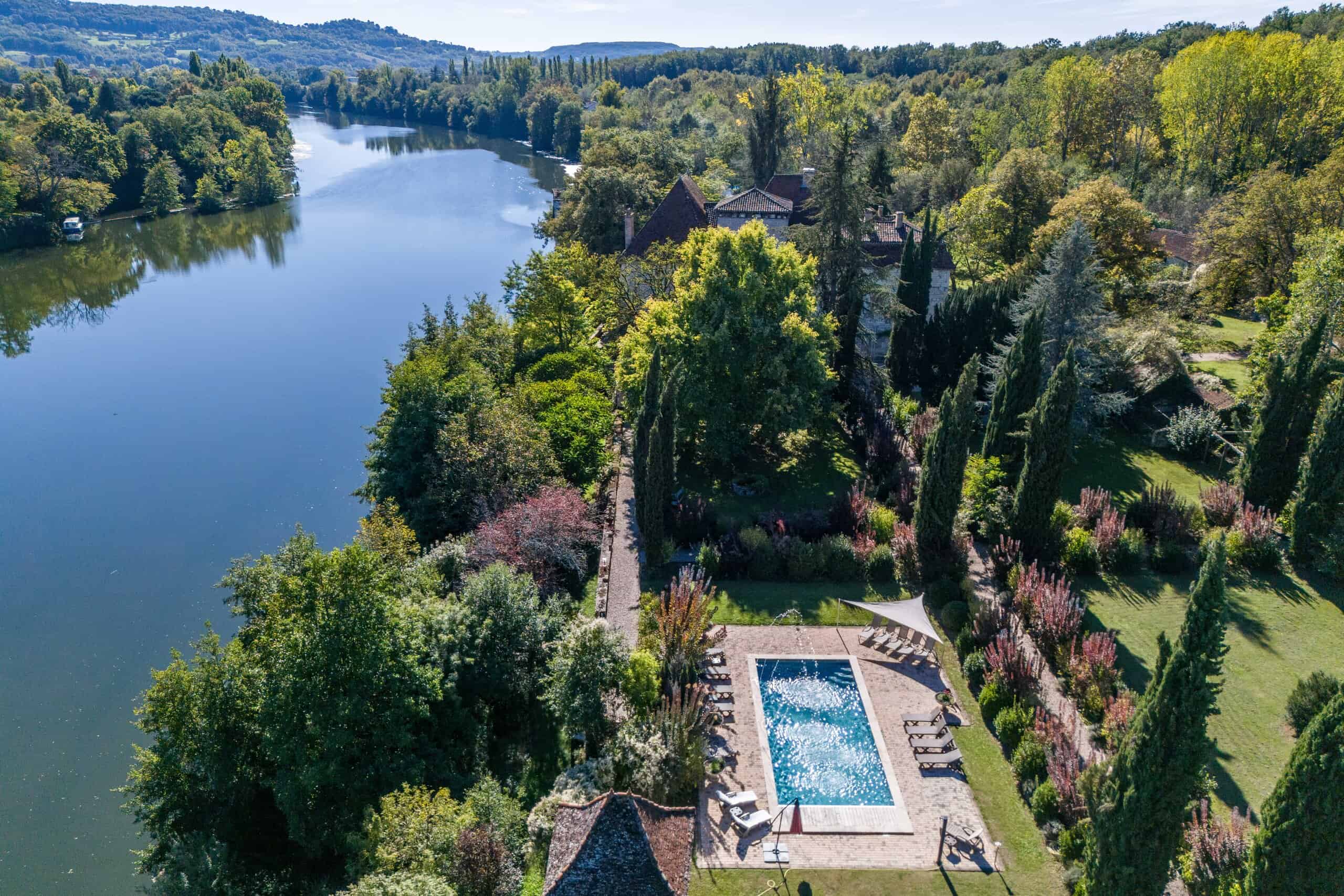 Outside, 16 hectares of parkland unfold down to the river, with sweeping lawns, specimen trees, and direct access to the water. There’s a ruined stone mill house and a private mooring, so you can head out to supper by boat — far easier (and frankly, more fun) than taking the car. Add excellent fishing, a heated swimming pool with electric cover, sun terrace, and probably the prettiest pool house in South-West France, and you’ll see why this place is special.