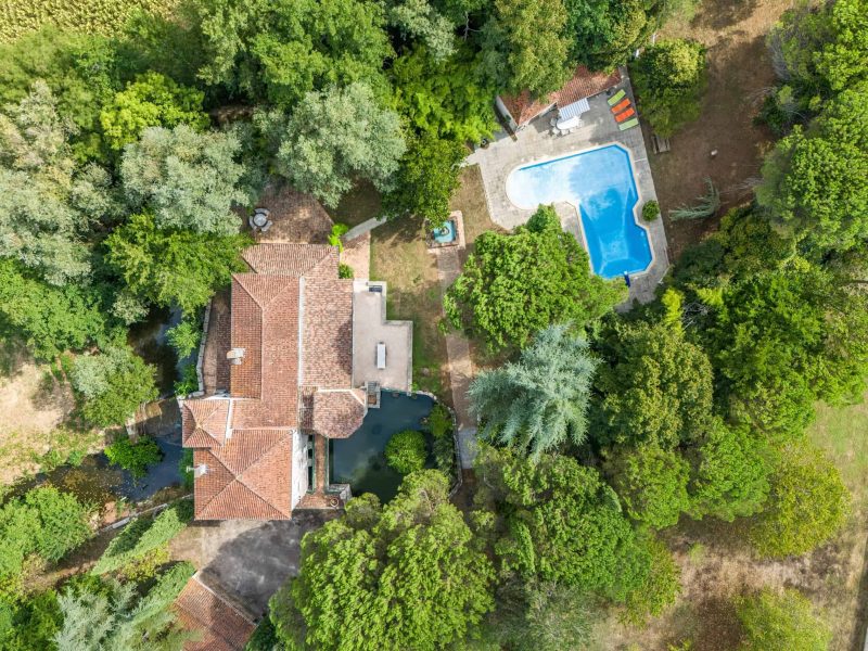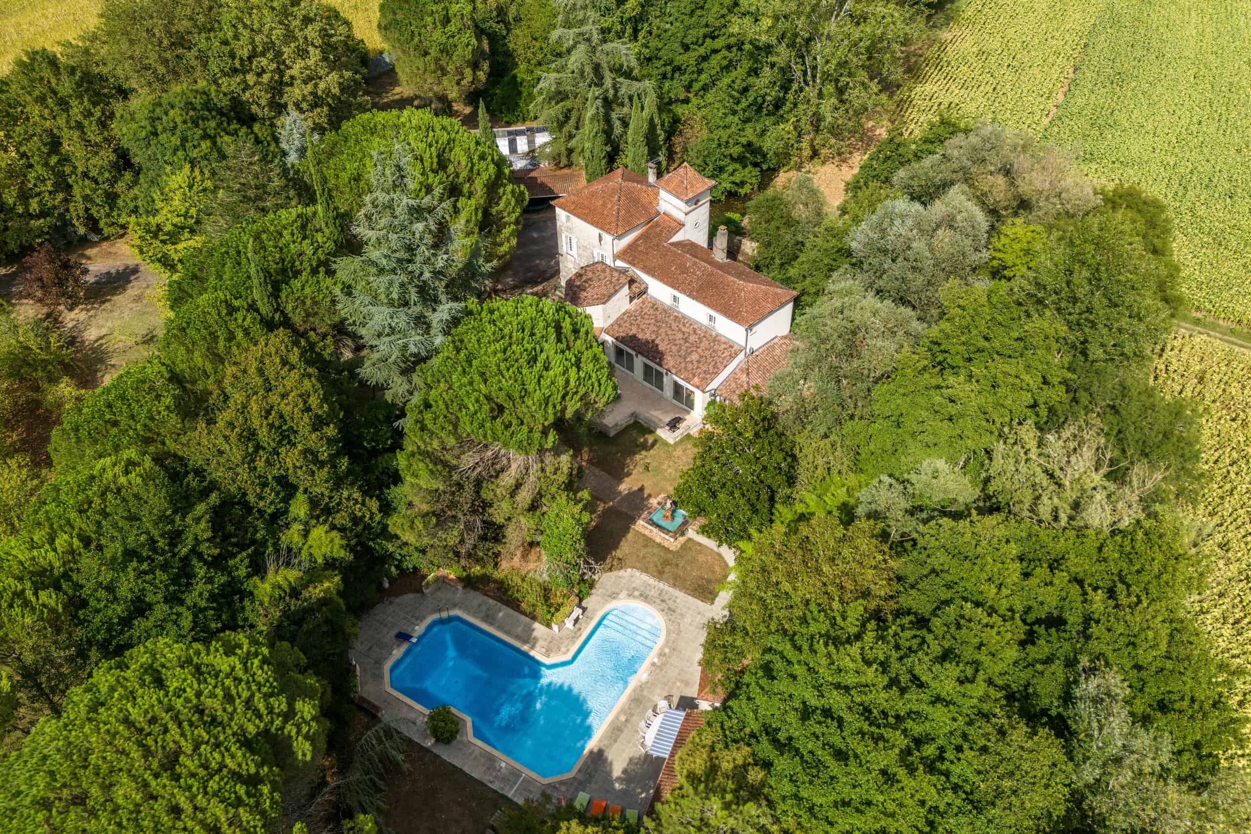 L shaped, heated swimming pool with large pool house and summer kitchen all set in the most idyllic tranquil setting.