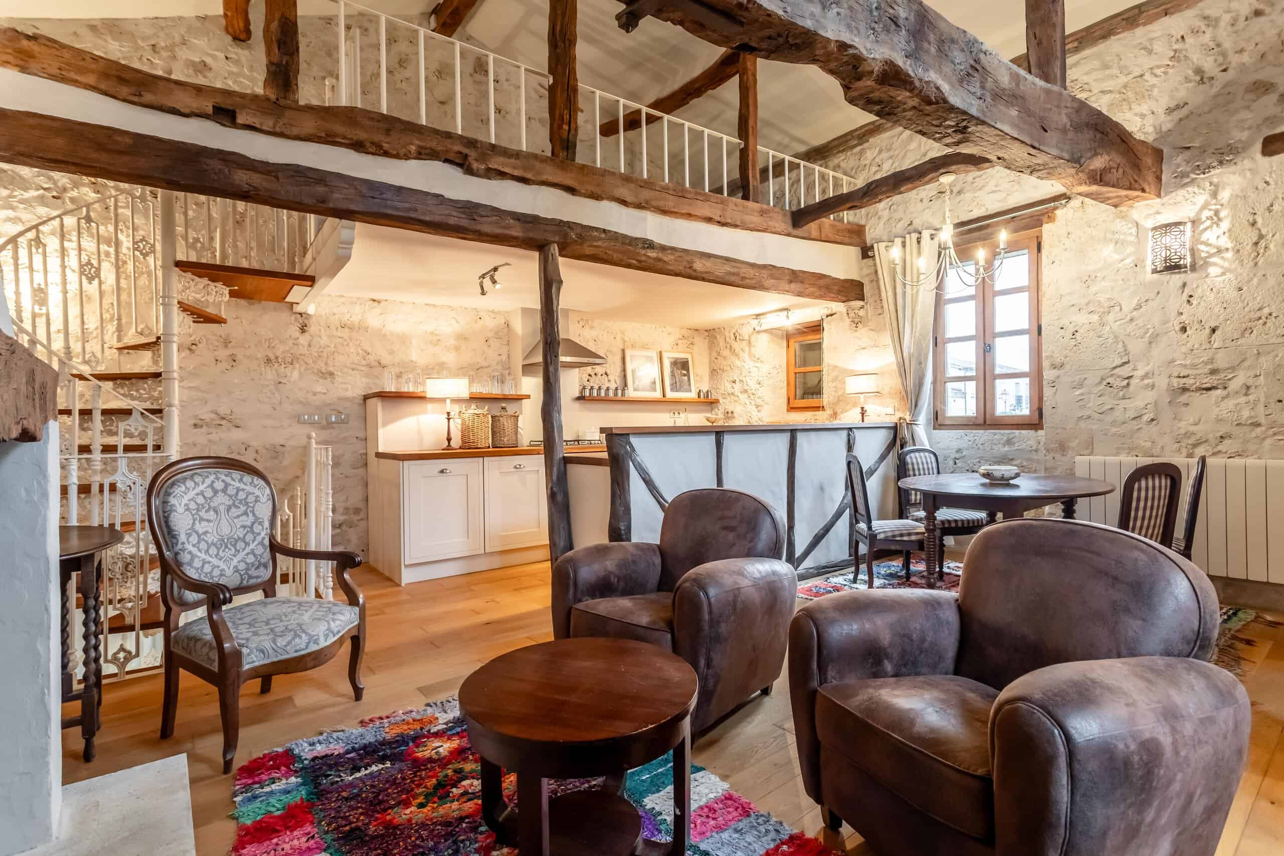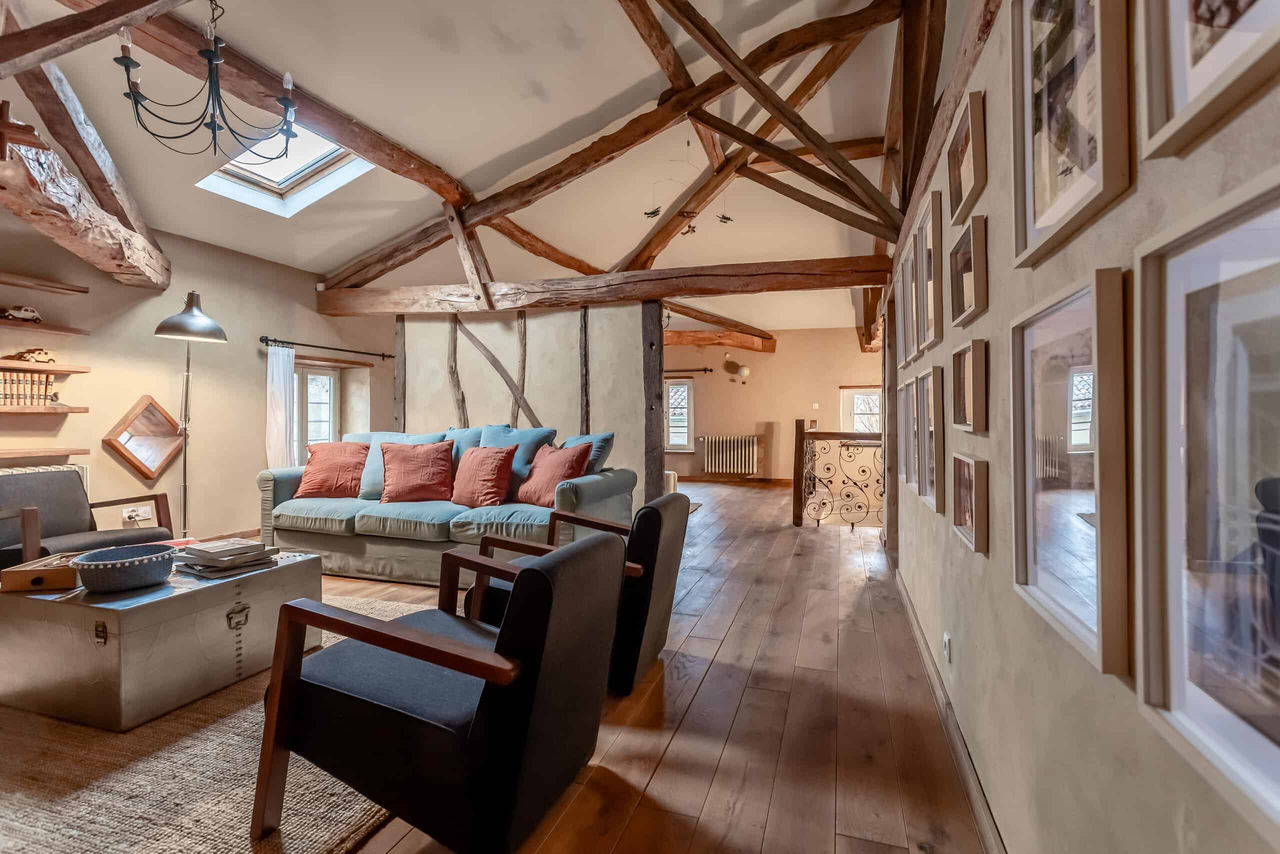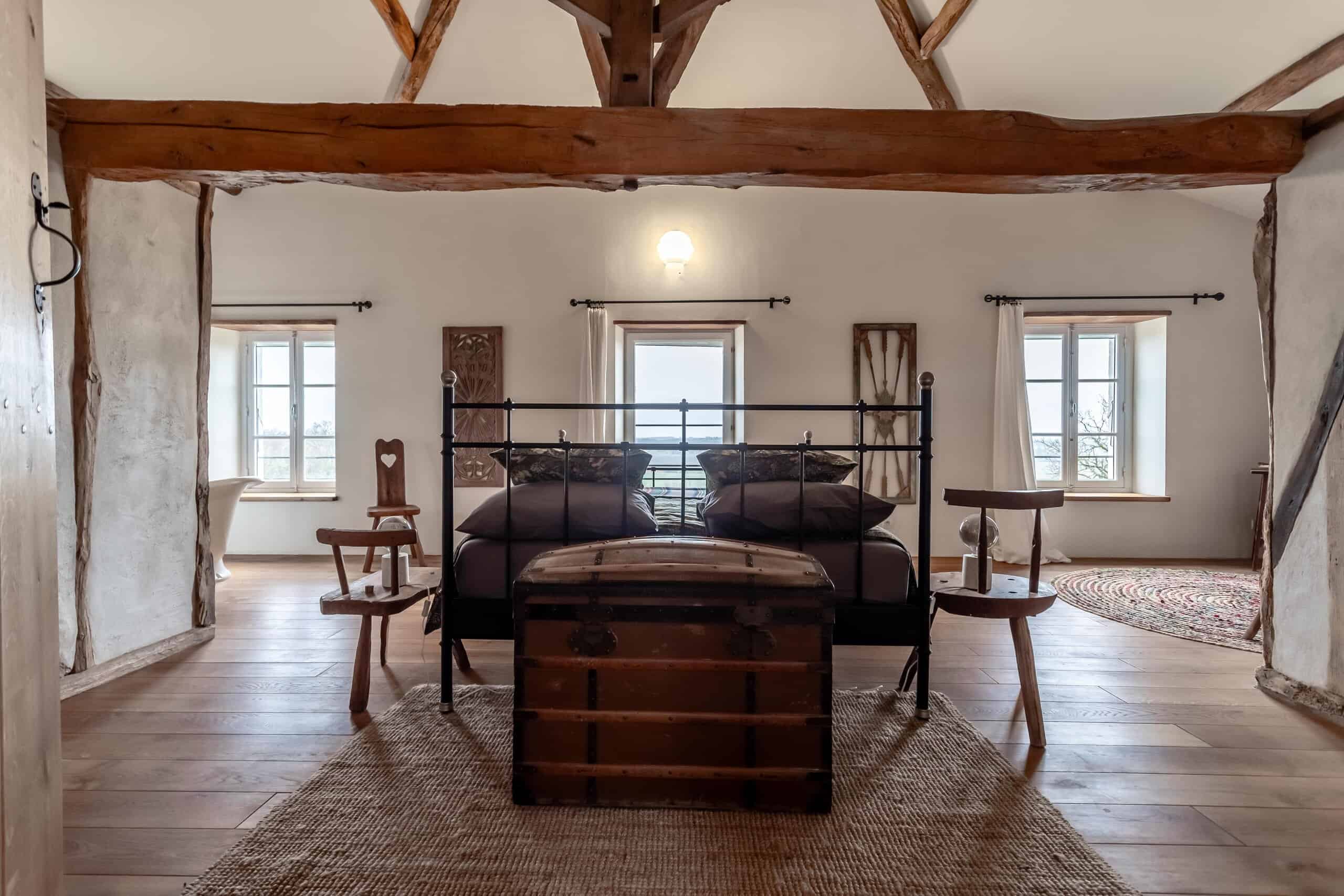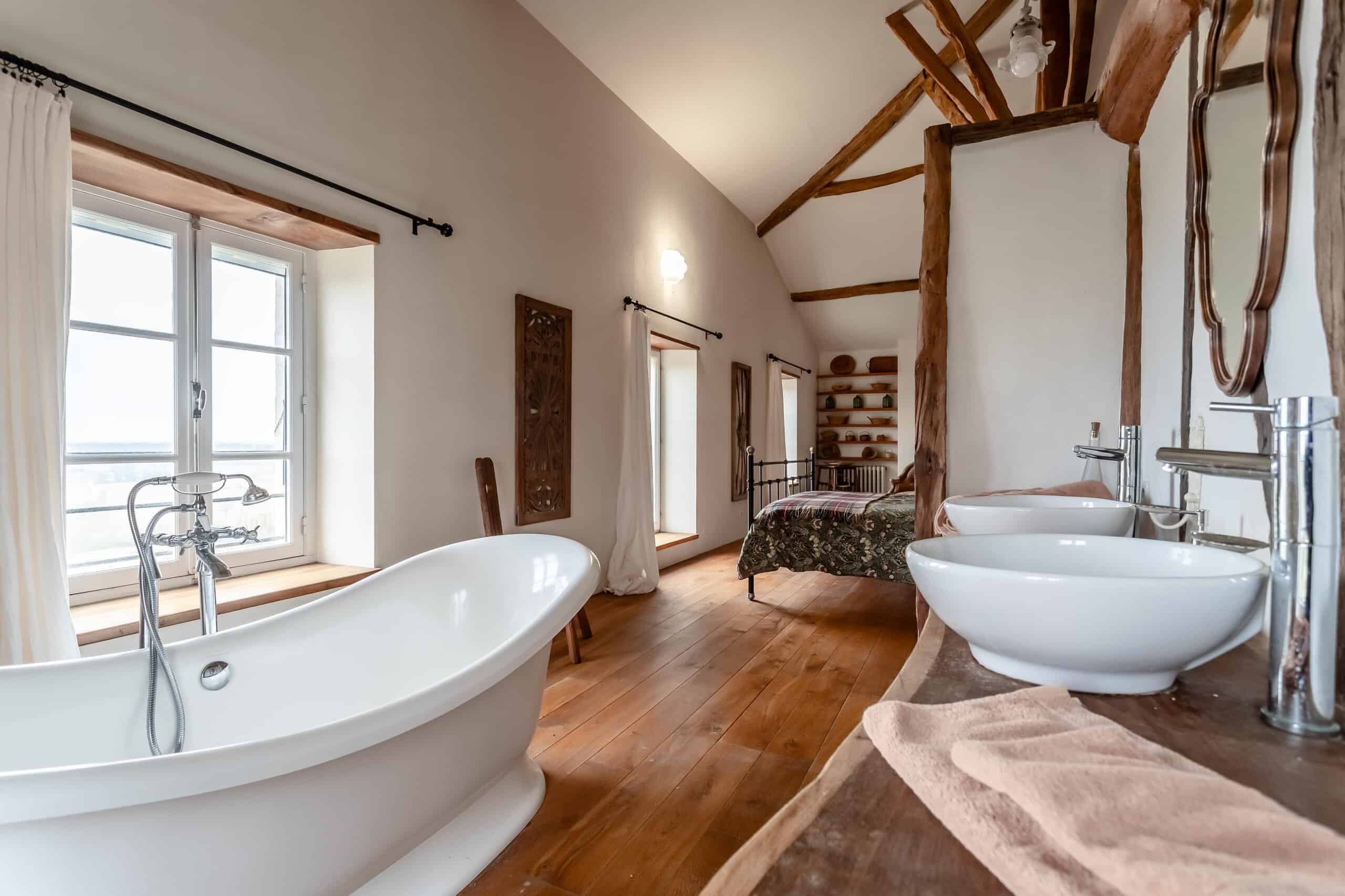 Upstairs is where the real magic happens. The principal bedroom is nothing short of show-stopping, featuring a central statement bath, dressing room and exposed beams—utterly indulgent and entirely justified. A second bedroom with en-suite, along with a generous open-plan living room and study, complete the first floor. Every inch is decorated and presented to a standard that requires nothing more than unpacking and opening a bottle.