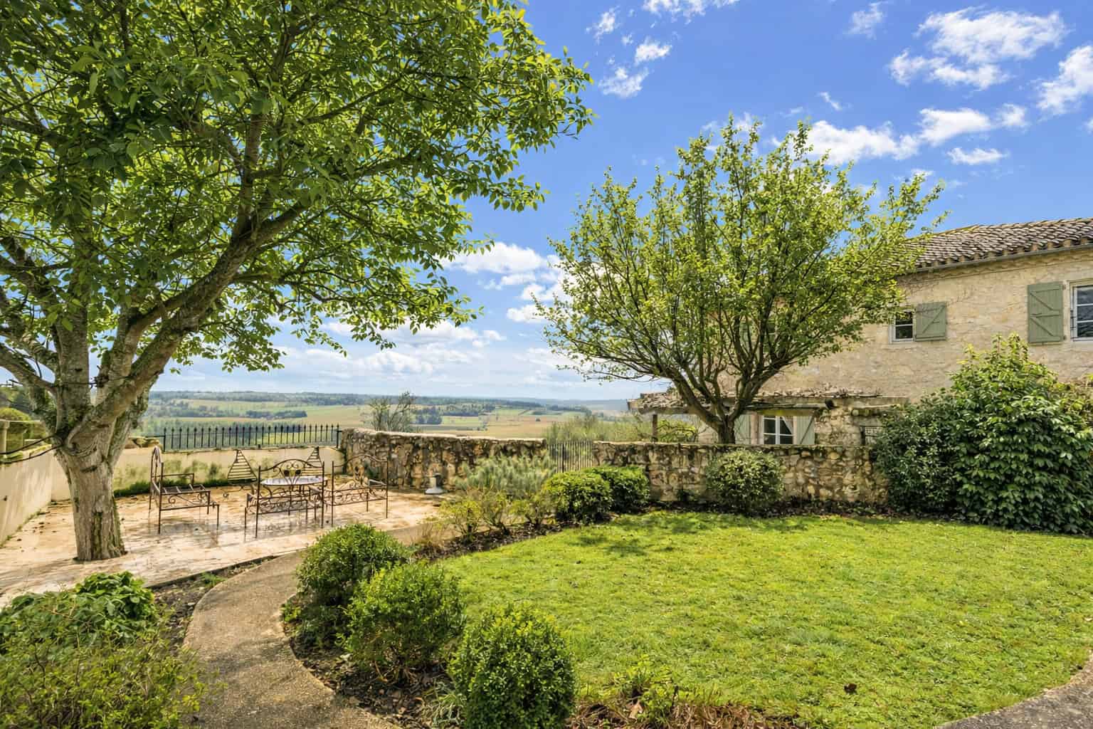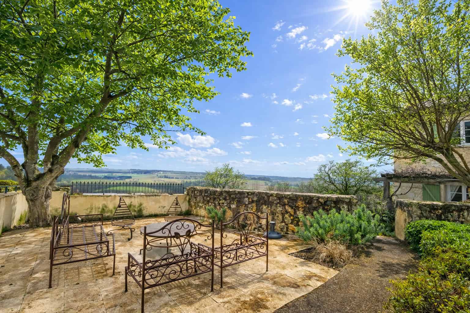 Outside, the home is surrounded by a beautifully established private garden with ample space for a pool, alongside various outbuildings including a large garage with summer kitchen and workshop, log store and covered porch. The setting is completed by a wisteria-clad pergola and gazebo, with additional land close by.