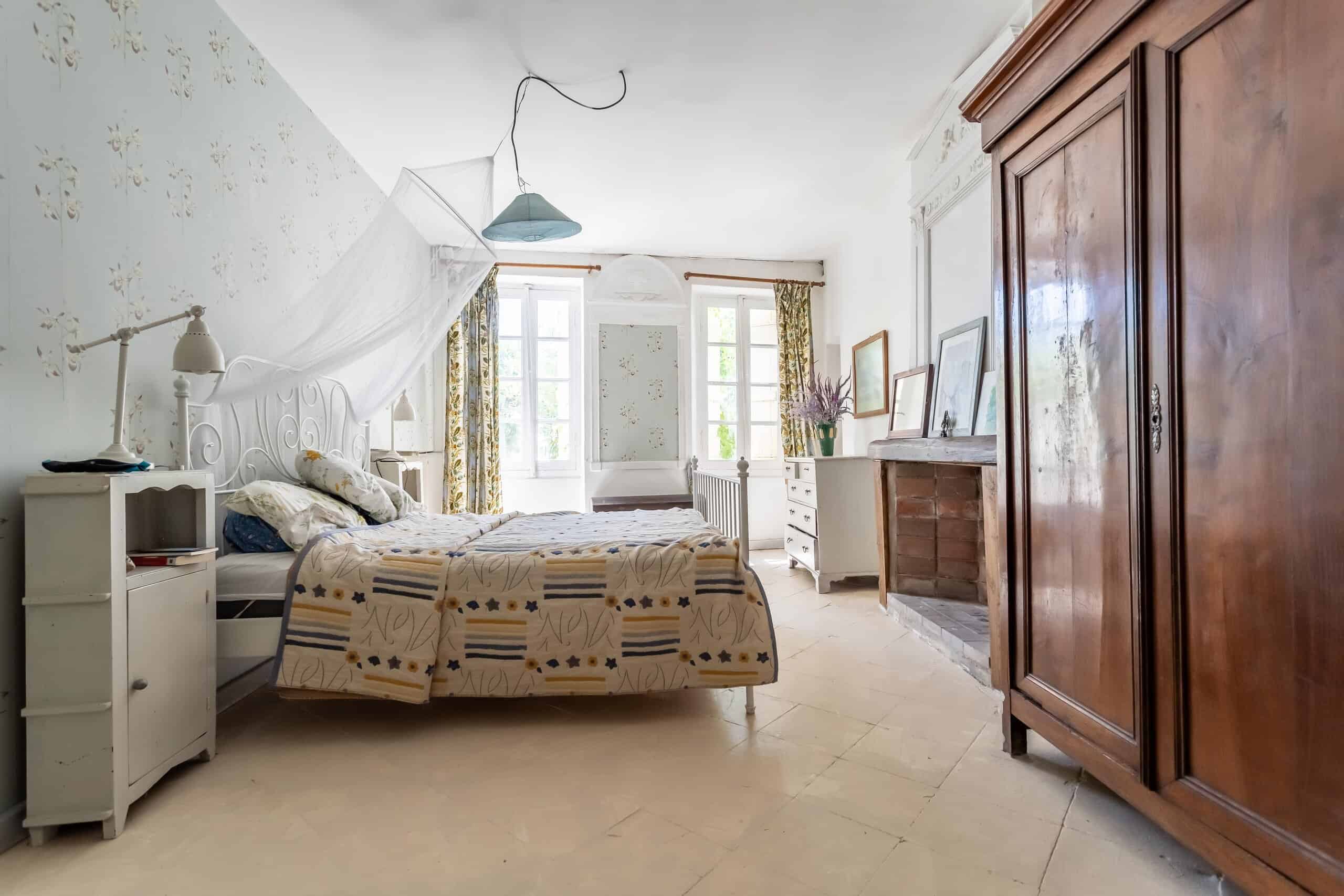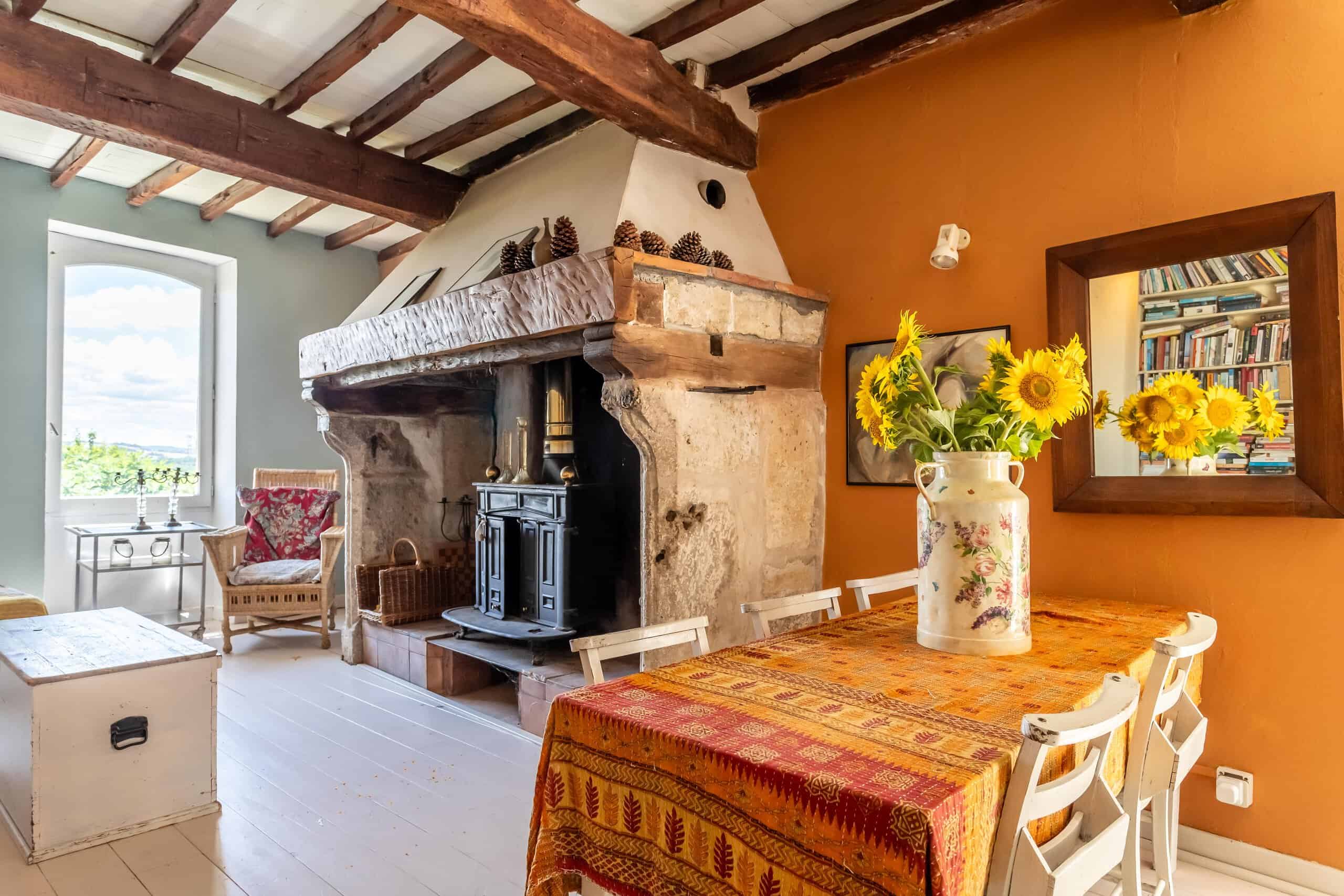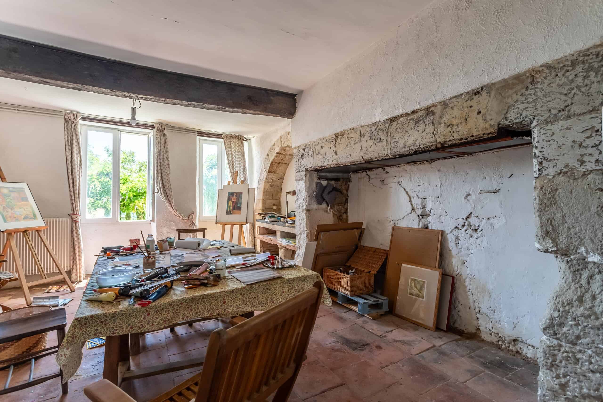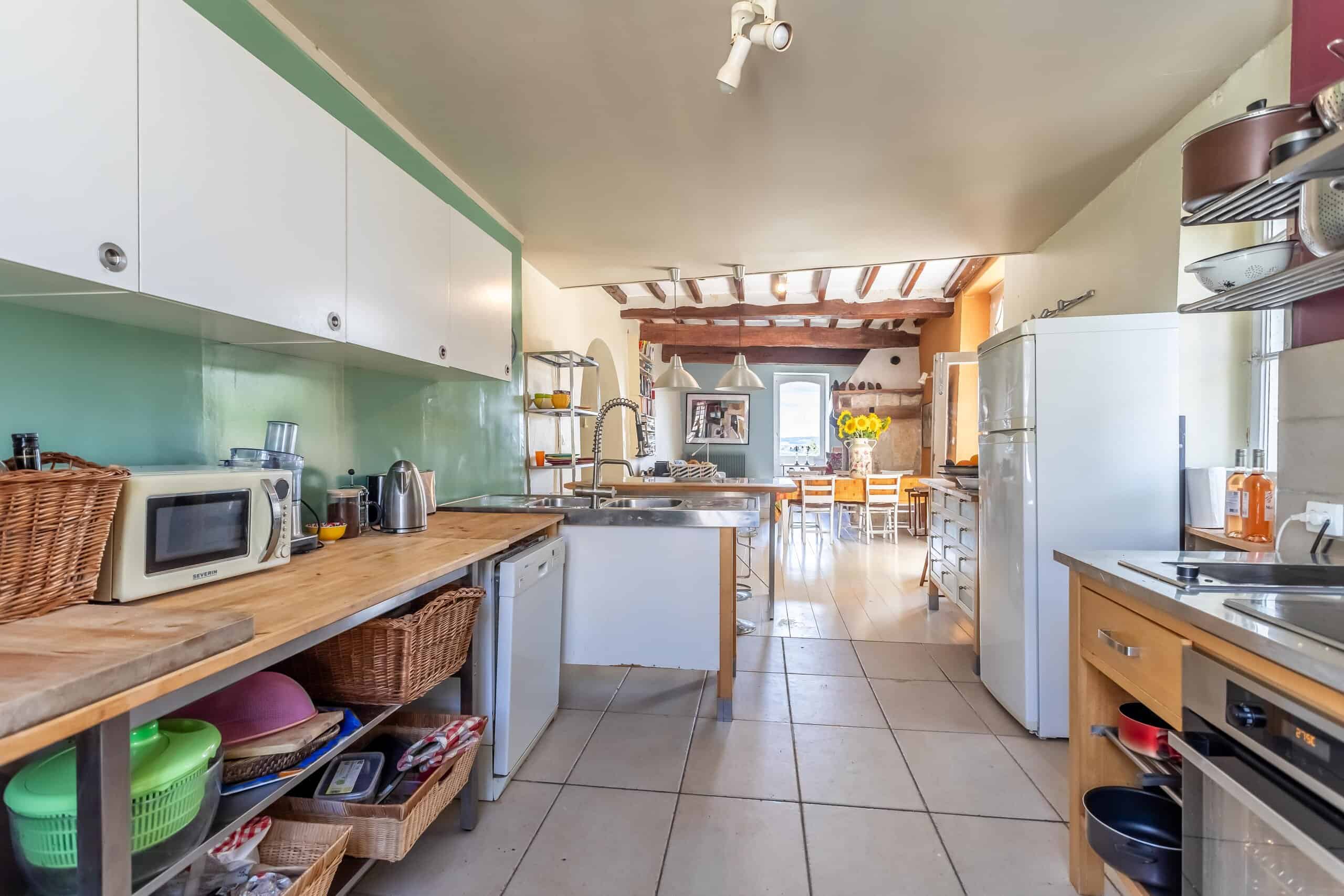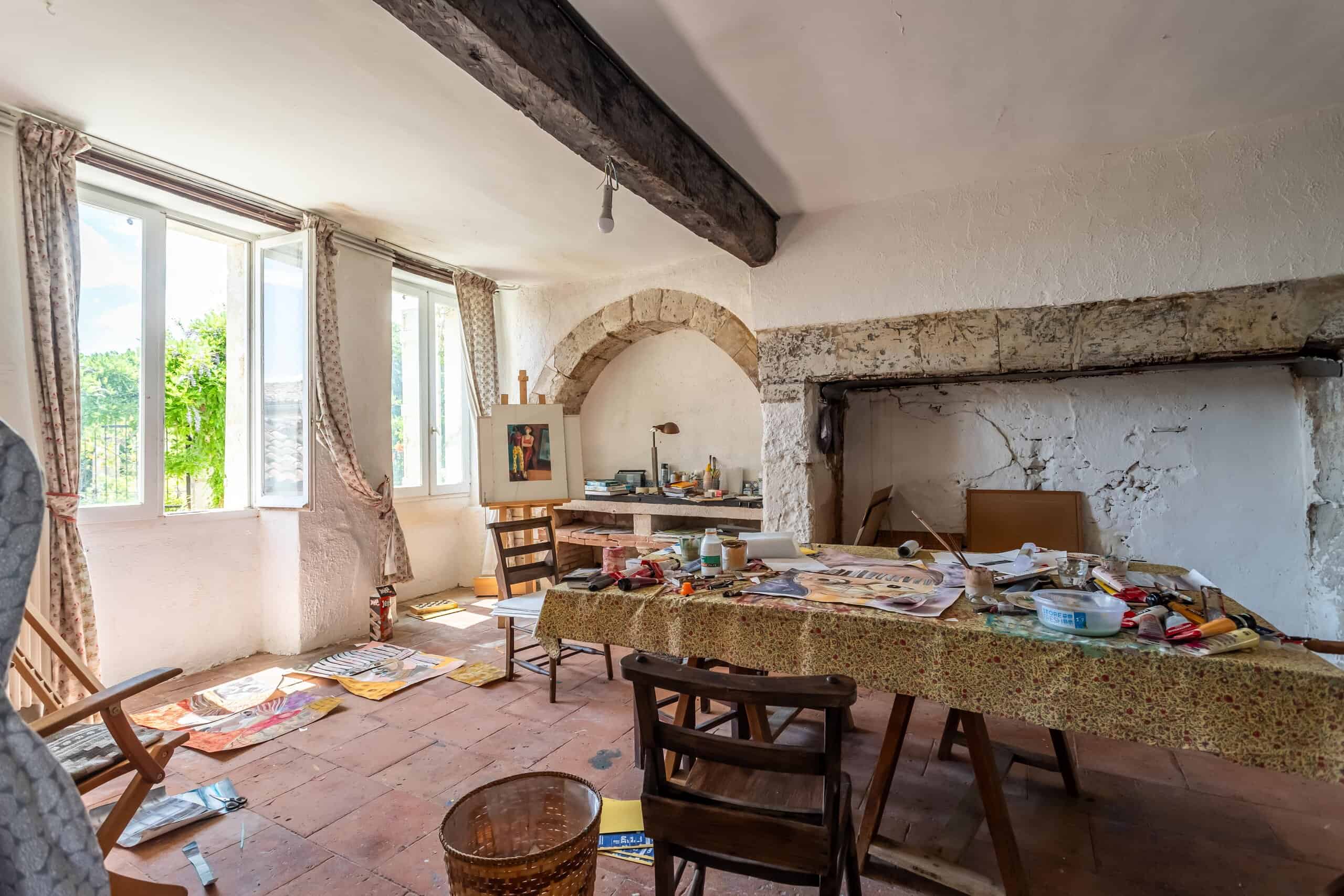Accessed via a gated entranceway with off road parking, shaded by huge lime tree, with steps leading up to a large raised terrace to enjoy the far reaching views over the surrounding countryside. Open plan living room with vast stone fireplace, stylish industrial kitchen with wooden flooring under foot and beamed ceilings overhead, leading into the grand main corridor with the original terracotta floor tiles and heavily beamed ceiling. Access to the master bedroom with en suite bathroom with roll top bath and walk in shower, numerous other bedrooms tastefully decorated and retaining a rustic charm. An ancient staircase leads down to the ground floor and a further four bedrooms, one currently used as an artist’s studio, with a family bathroom and store room.