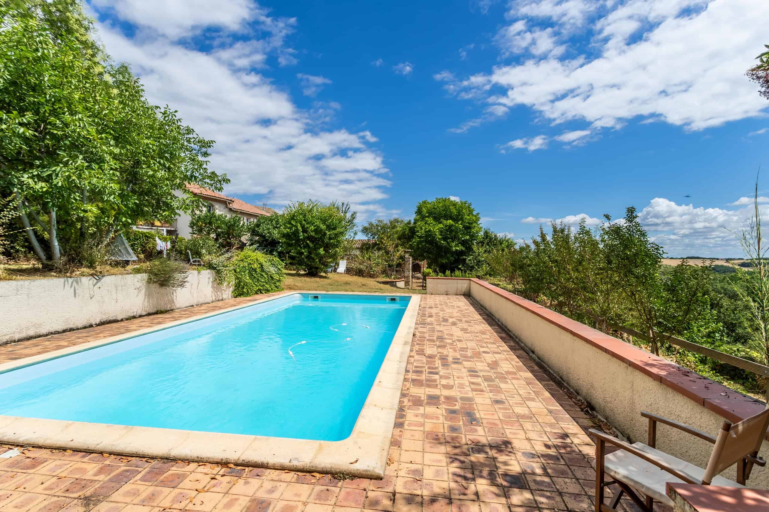 House, garden, pool.