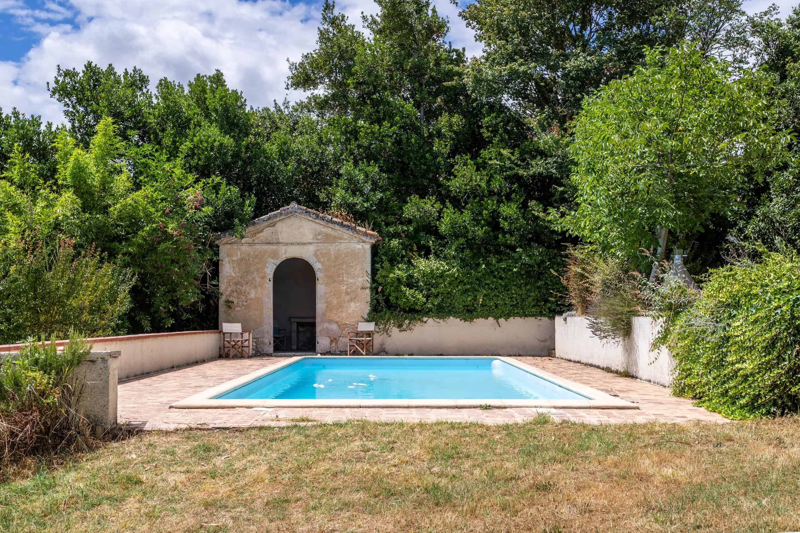 The magic really starts outside however with access to the walled garden over a very quiet lane (with no vehicle access), charming wrought iron gates lead to a covered terrace for alfresco dining, with the prettiest pigeon tower in town! Laid out to lawn with established trees creating the most magical private garden, with a 10 by 5m swimming pool and the best pool house / temple I’ve ever had the pleasure of marketing, it could be straight out of the pages of the world of interiors magazine!