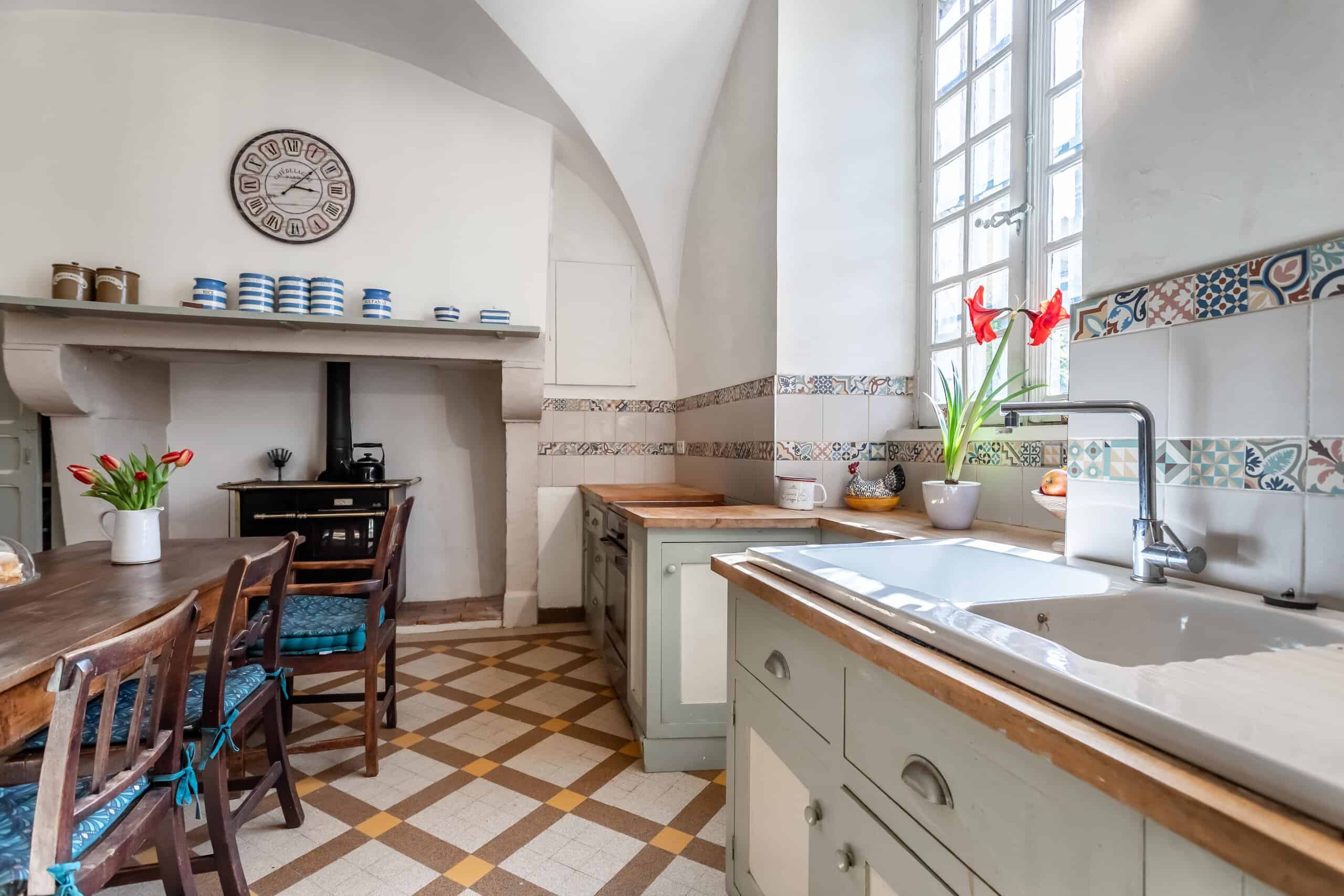Offering huge potential as a large family home with separate guest accommodation or huge income potential as an air B&B or chambres d’hôtes, the principle house with numerous period features – vaulted ceilings, stone staircase, panelled doors, several original fireplaces, beamed ceilings etc, modern fitted kitchen with integral appliances, original 18th century built in cupboard and log burning stove/cooker.